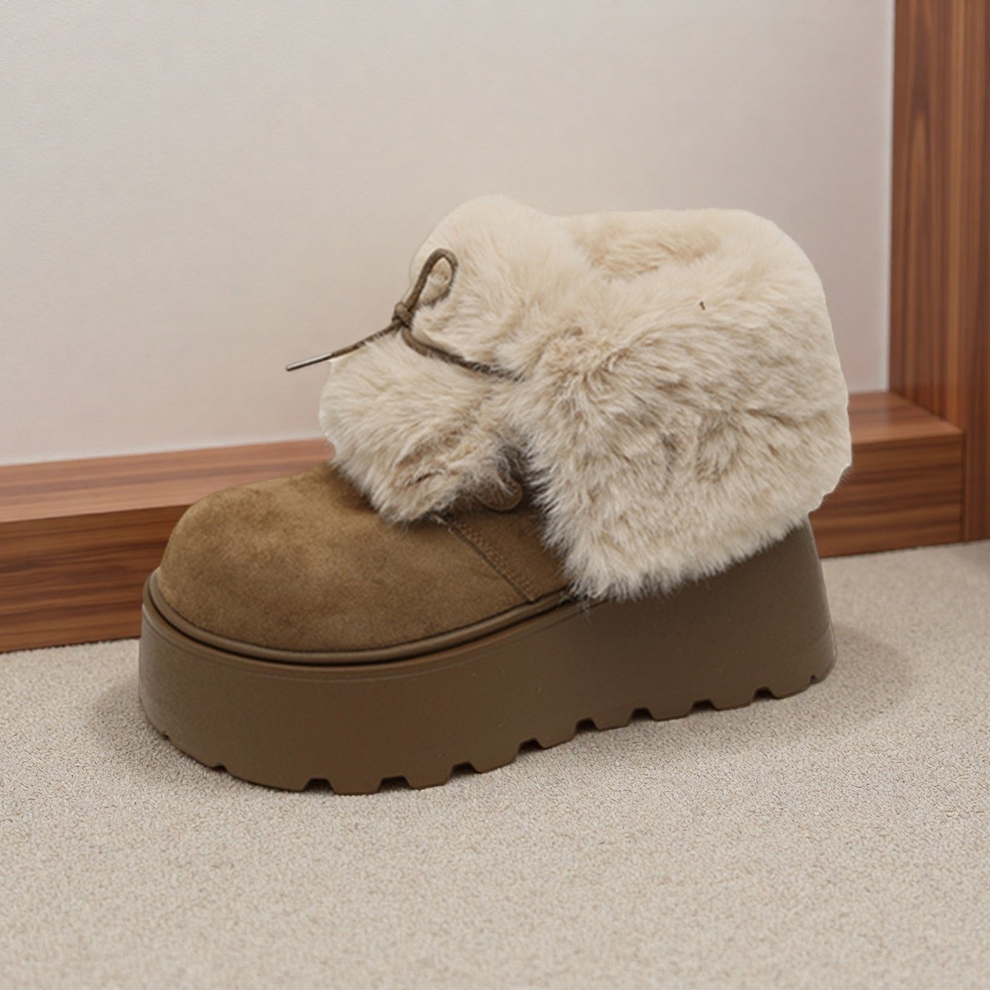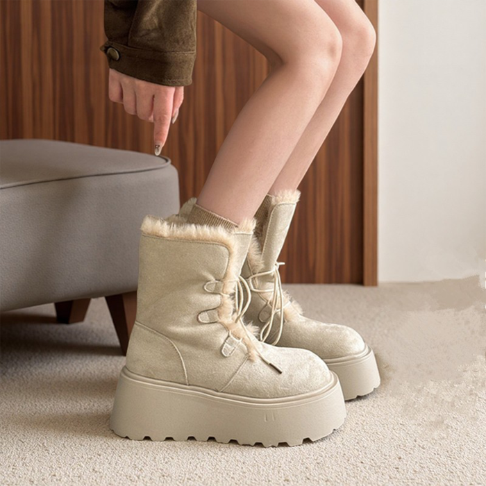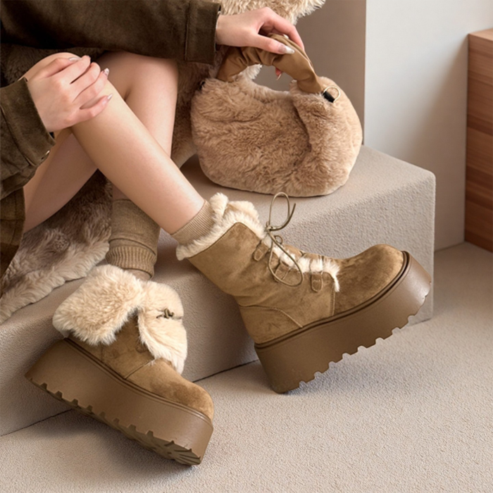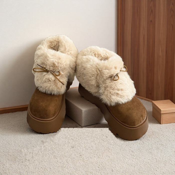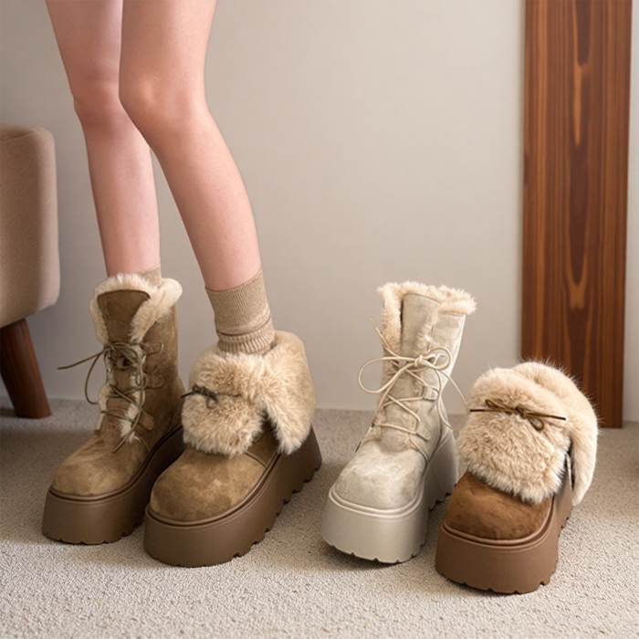 厚底增高大頭勃肯鞋雪地靴女2026新款冬季加絨保暖毛毛短靴大棉鞋