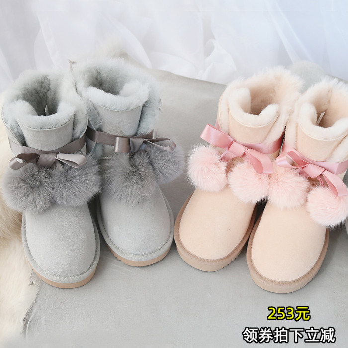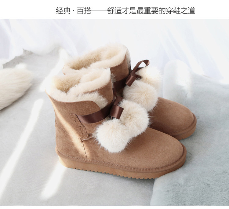手工羊皮毛一體雪地靴女冬2025新款中筒短靴加絨加厚防滑雪地棉鞋