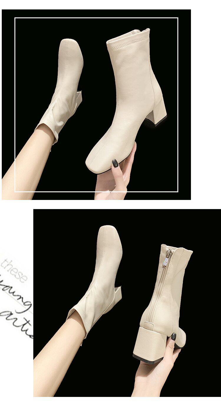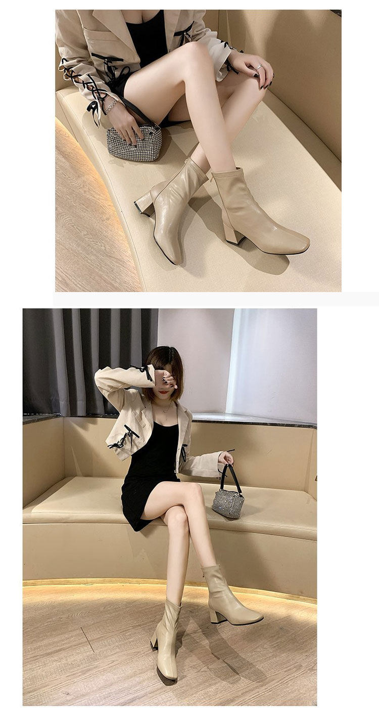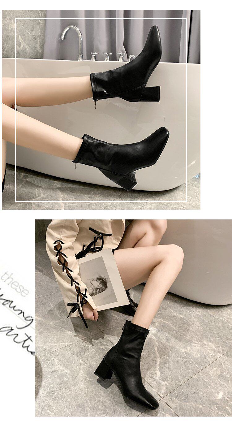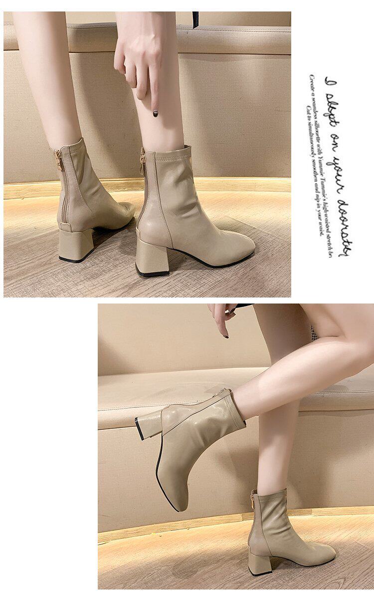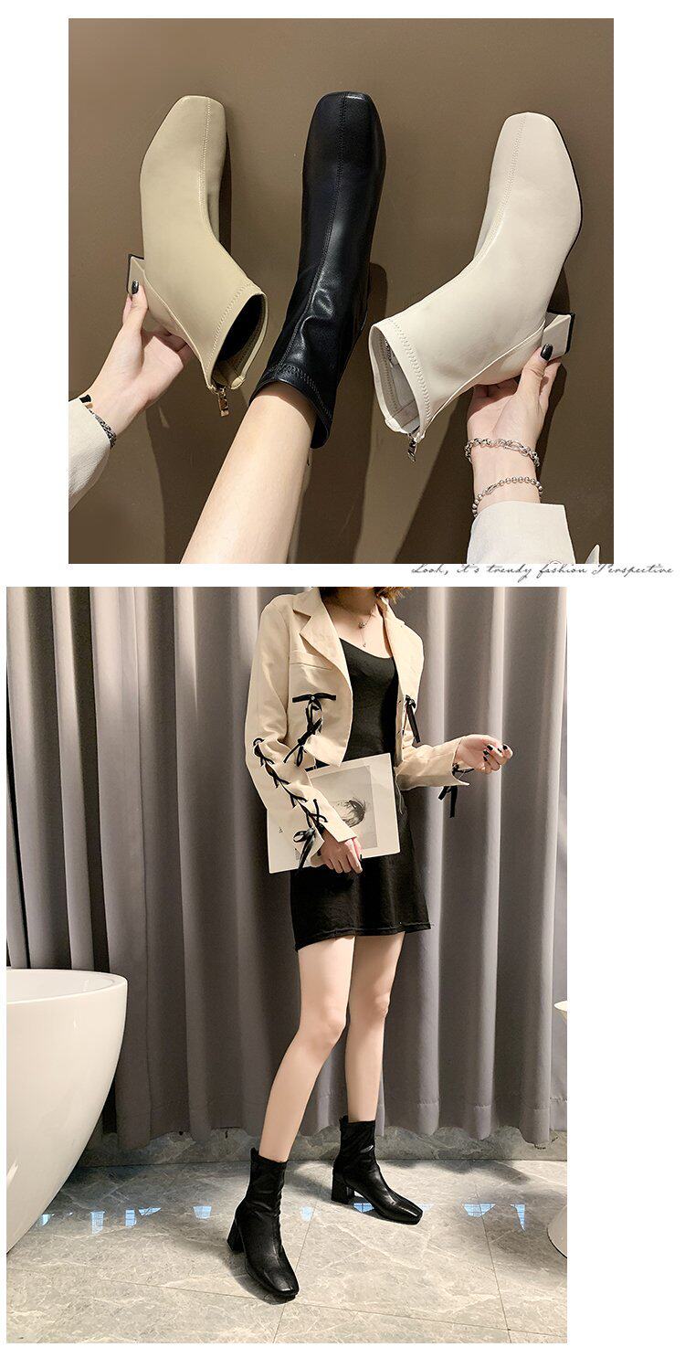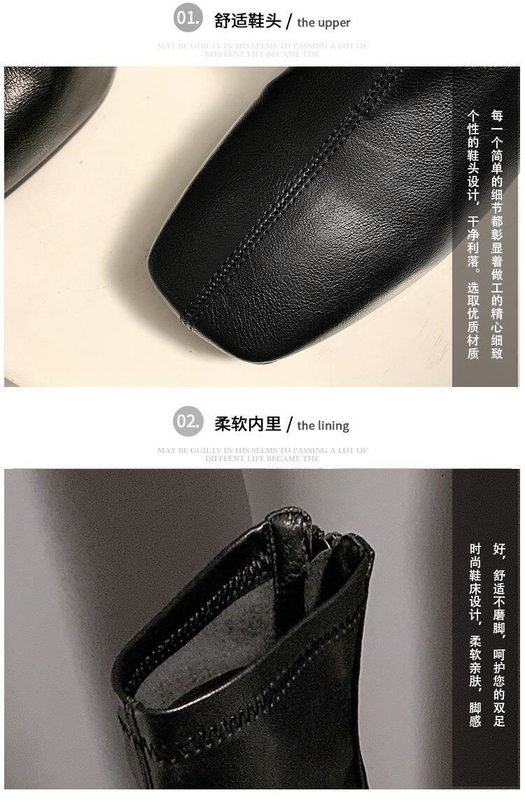 英倫法式小短靴女2026新款春秋單靴粗跟方頭顯瘦百搭馬丁靴及裸靴