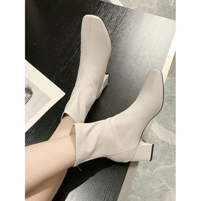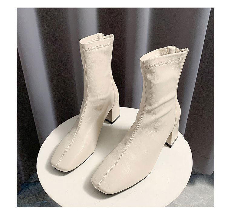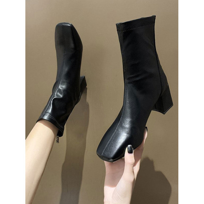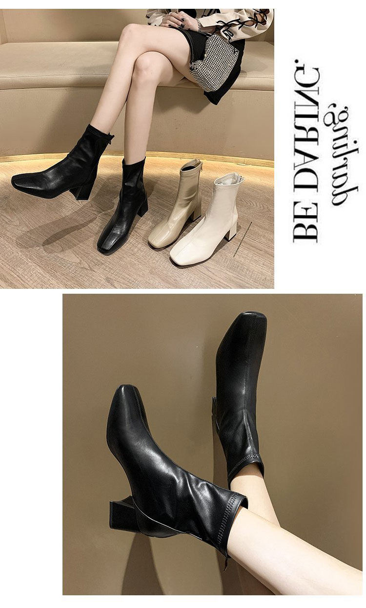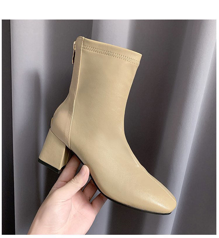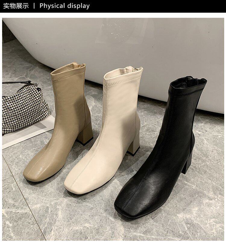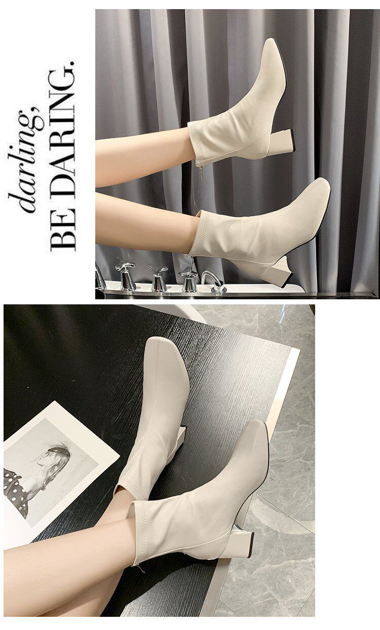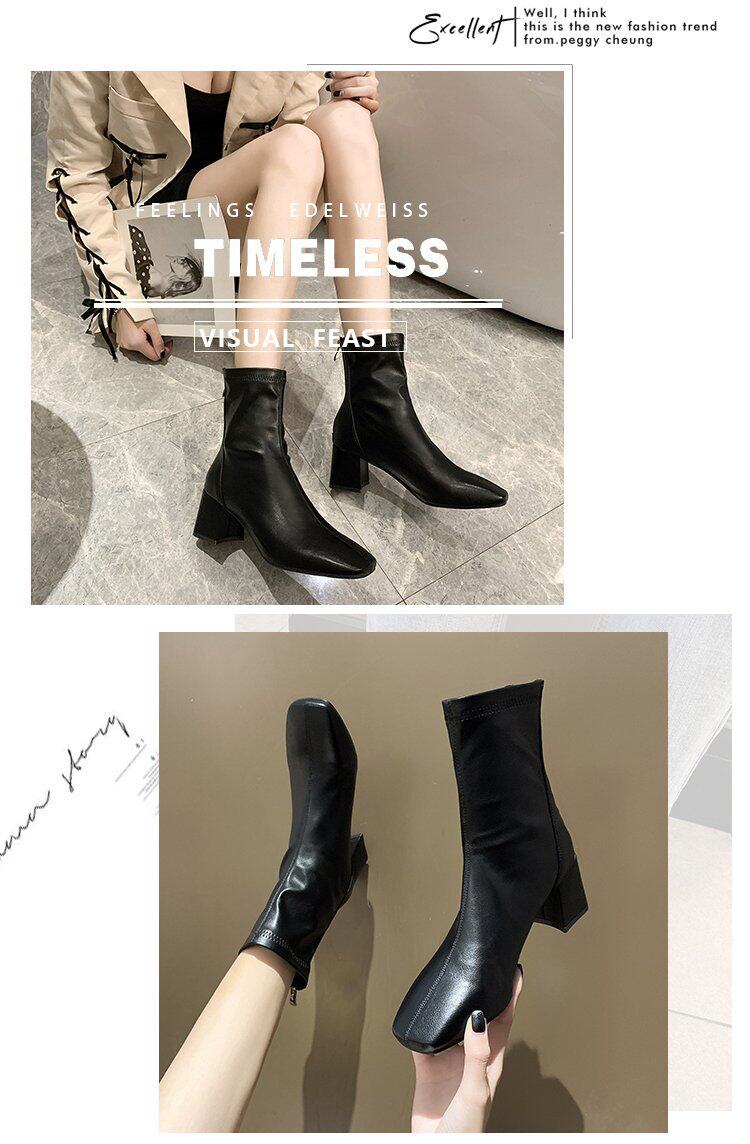 英倫法式小短靴女2026新款春秋單靴粗跟方頭顯瘦百搭馬丁靴及裸靴