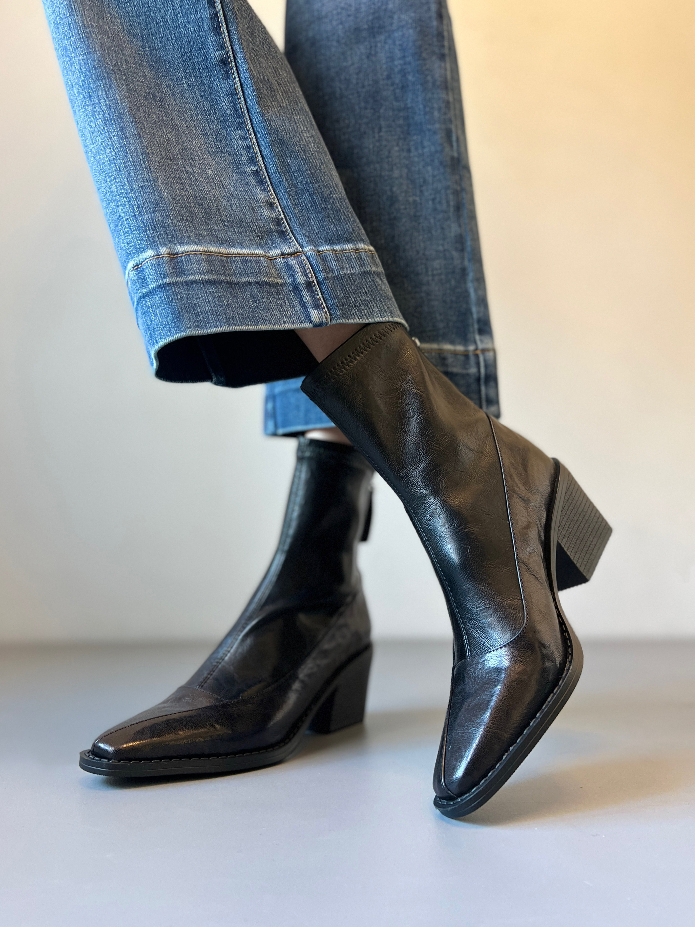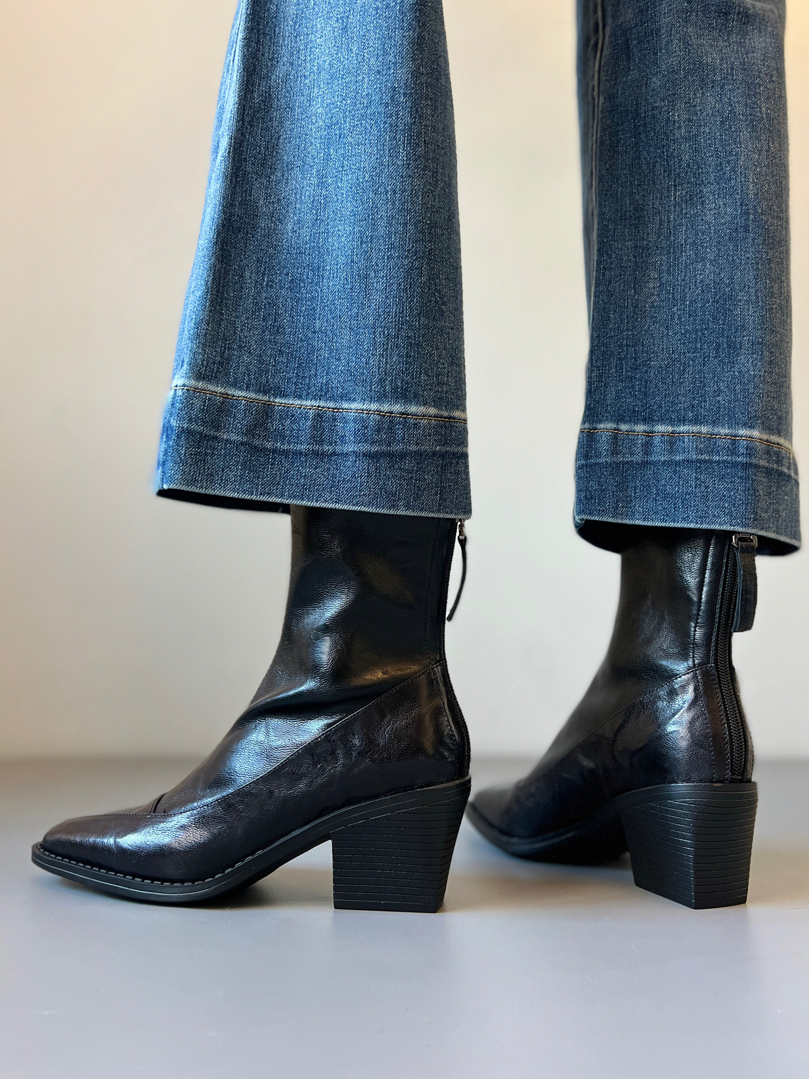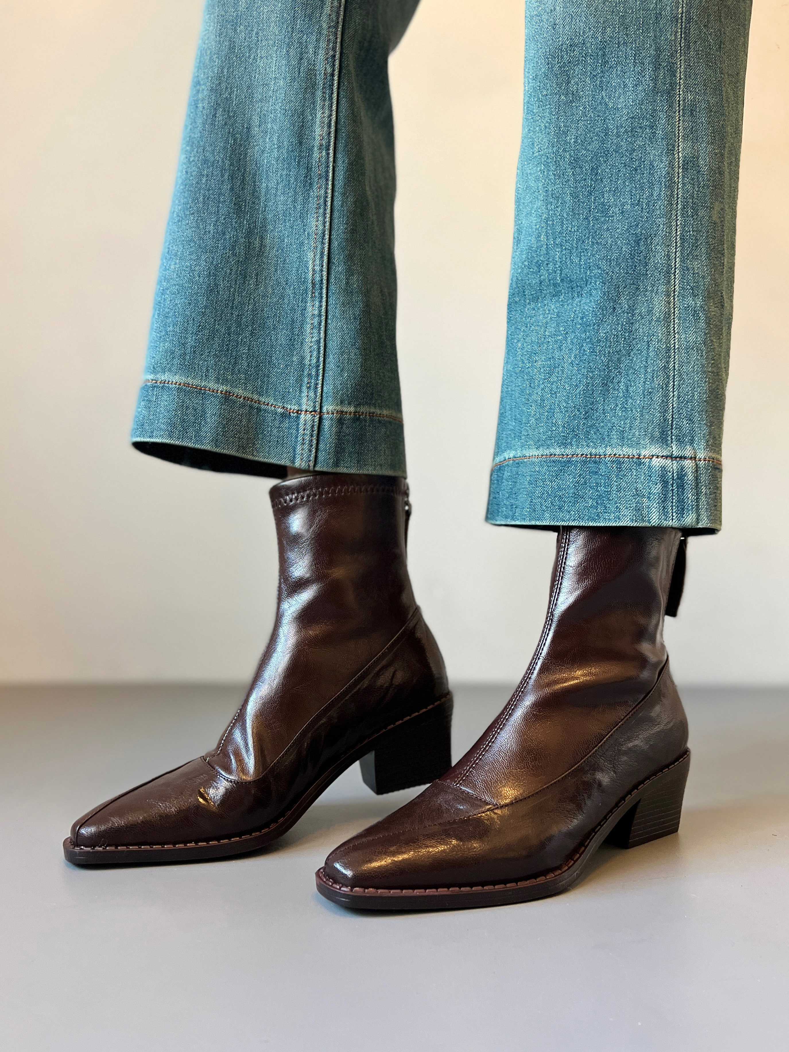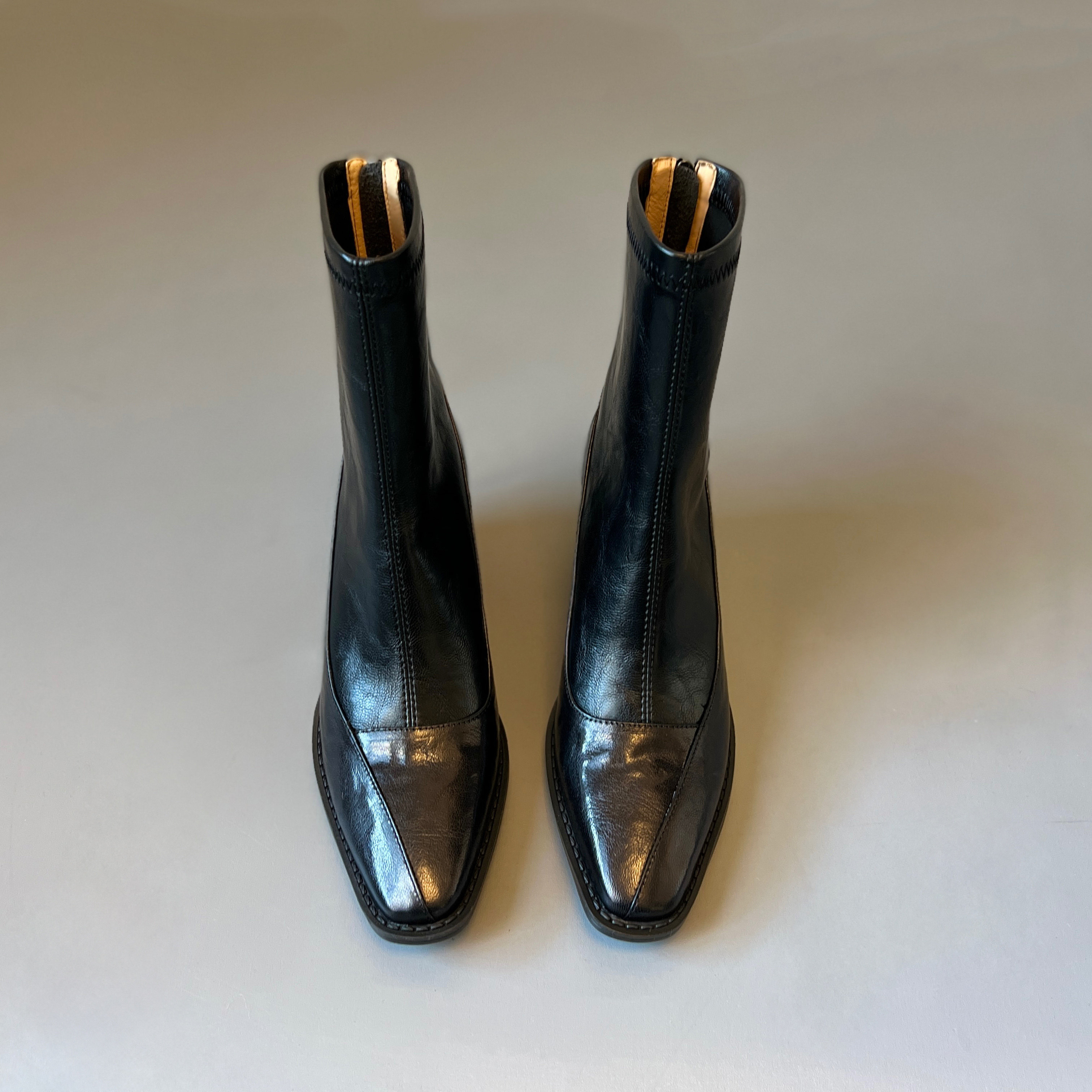 真皮~復古方頭粗跟短靴女2025新款黑色切爾西瘦瘦靴百搭馬丁靴女