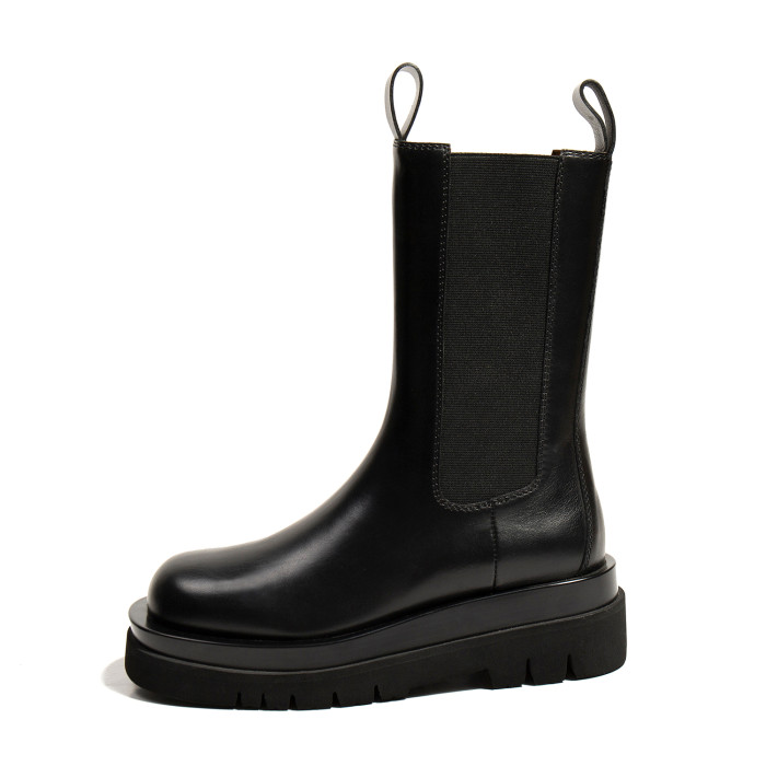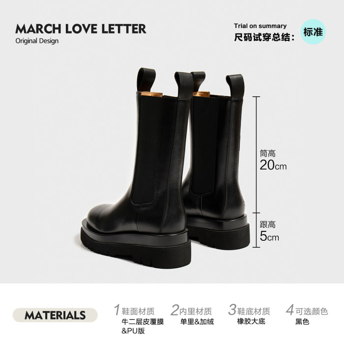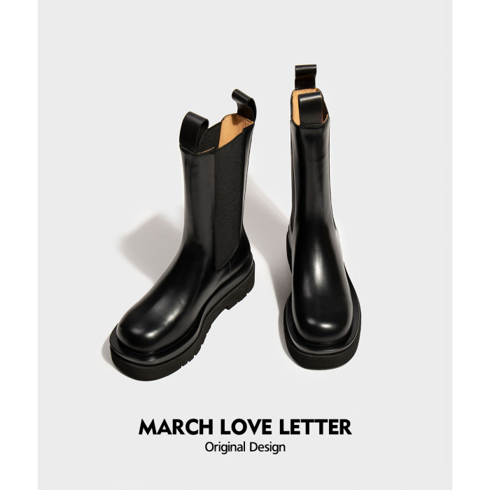 三月情書2026秋冬騎士靴真皮切爾西靴女英倫風中筒厚底菸筒短靴