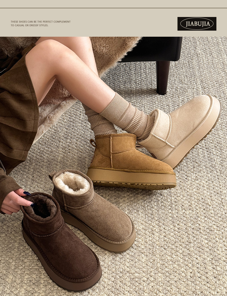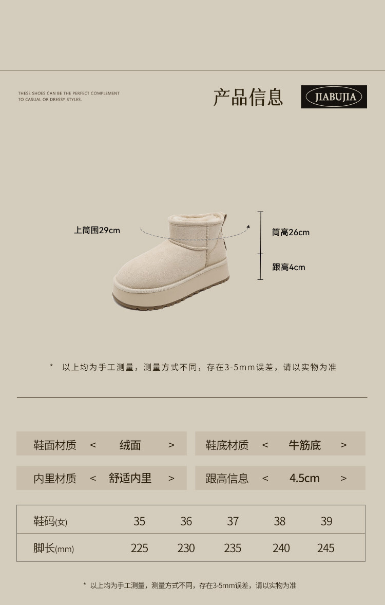 賈不假雪地靴女款2026新款春季時尚洋氣百搭爆款厚底加絨保暖棉鞋