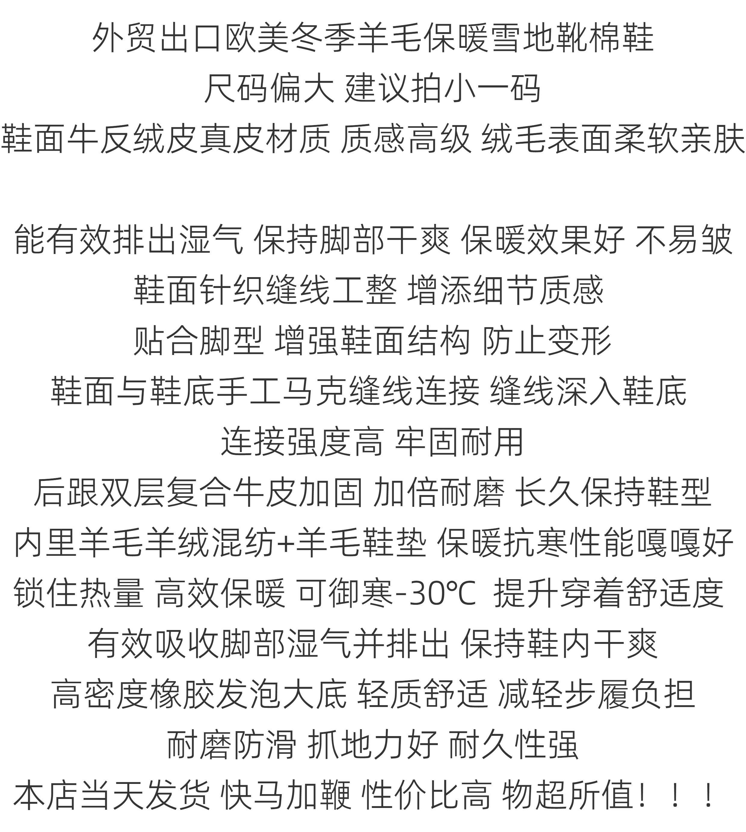 出口歐美女款冬季抗寒牛反絨真皮羊毛保暖雪地靴輕便防滑復古潮靴