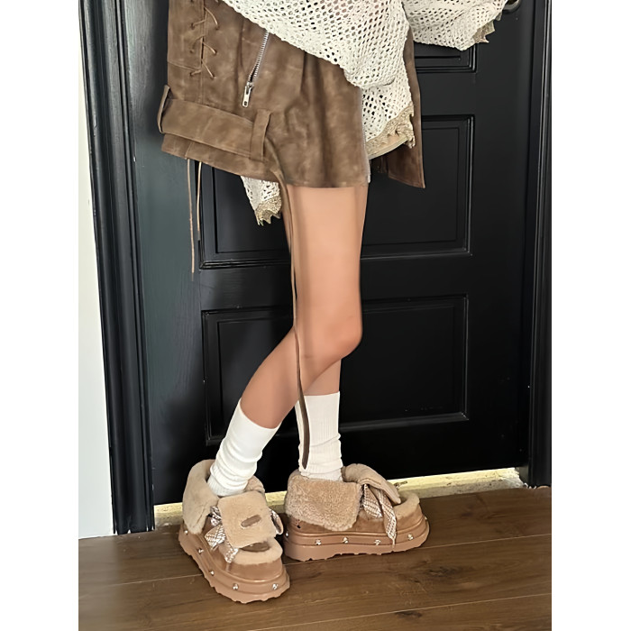 加厚繙毛兩穿加絨保暖雪地靴2026早春新款防滑皮毛一體厚底短靴女
