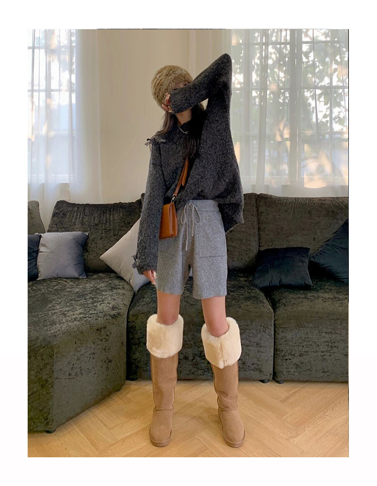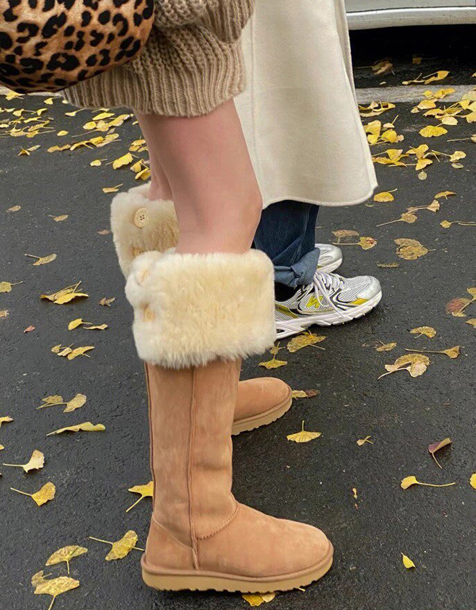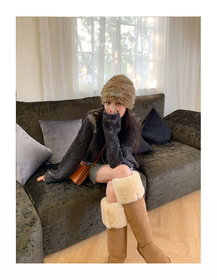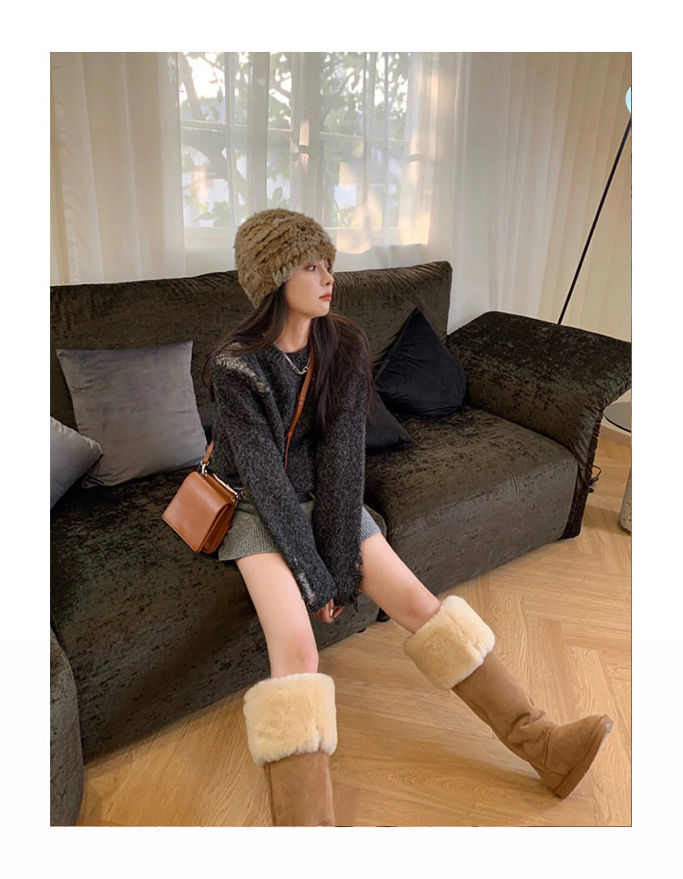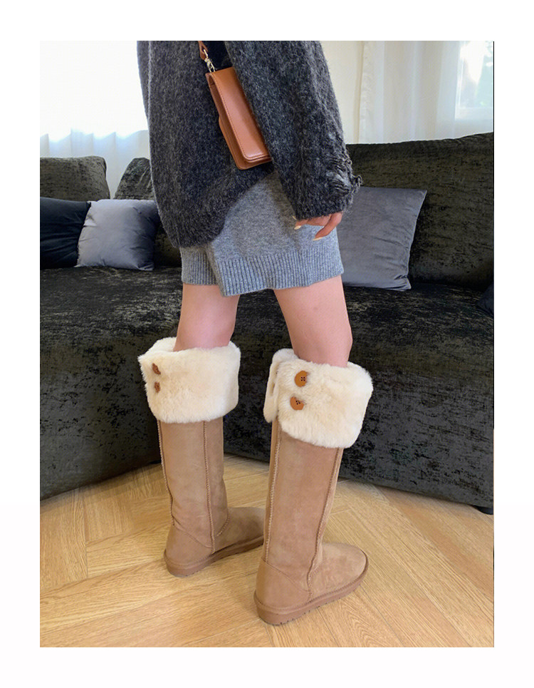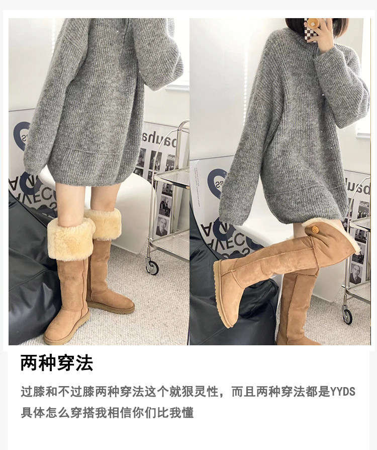 2024年周冬雨同款羊皮毛一體雪地靴女加厚高筒棉靴兩穿過膝長筒靴