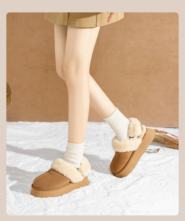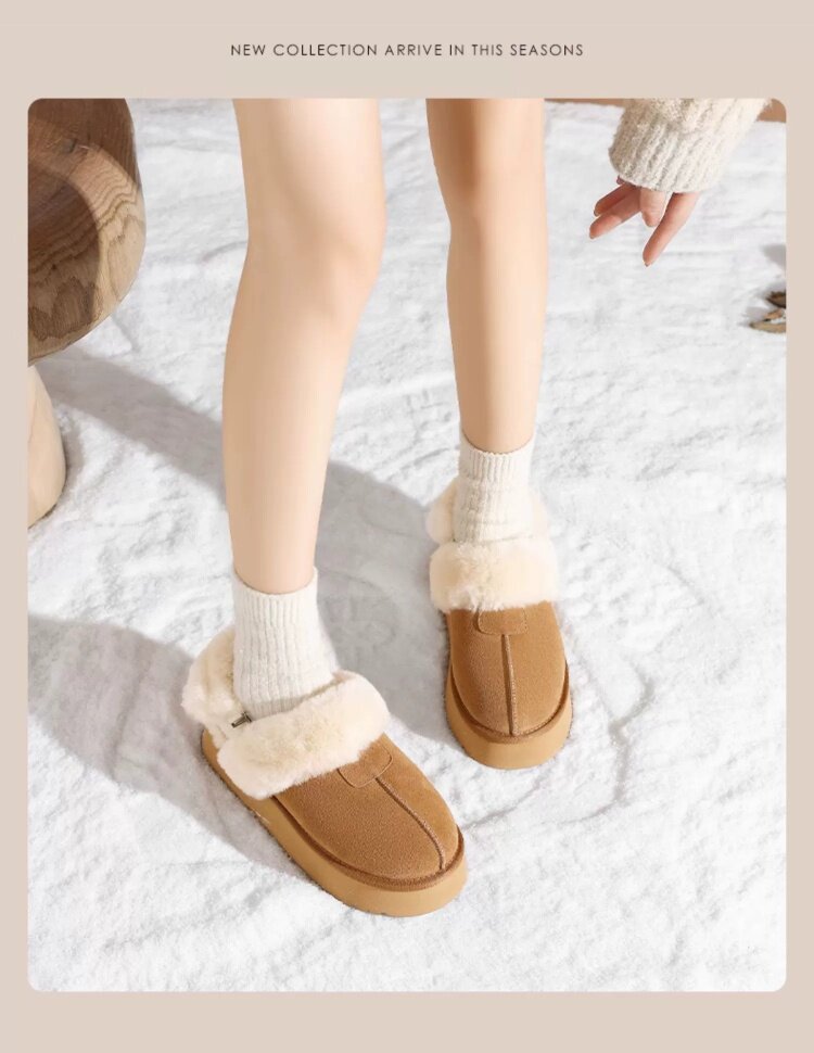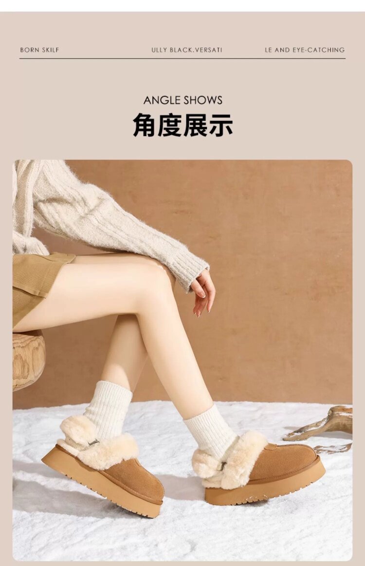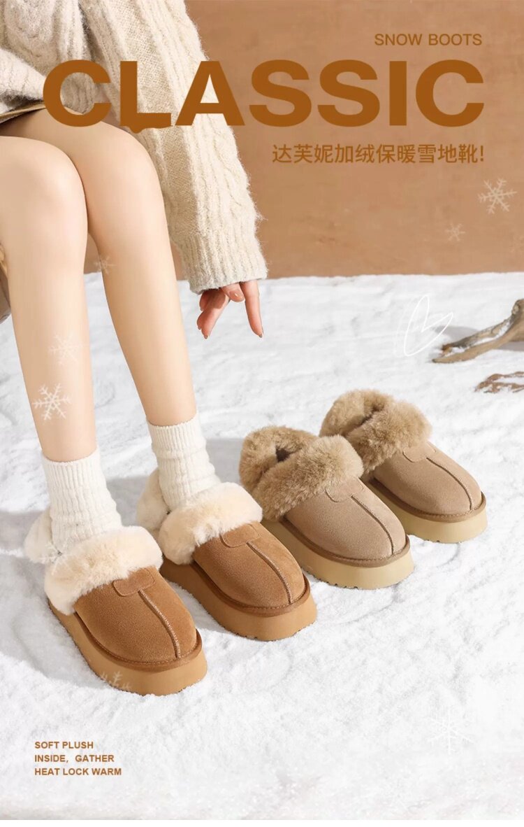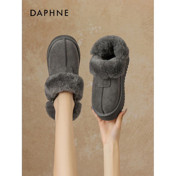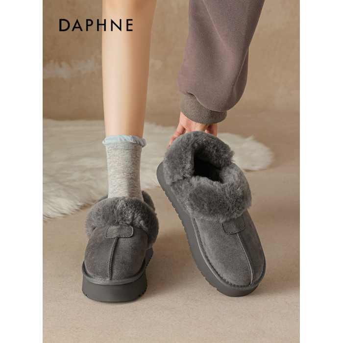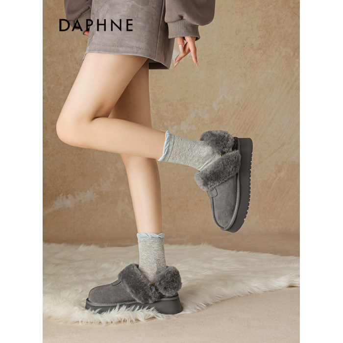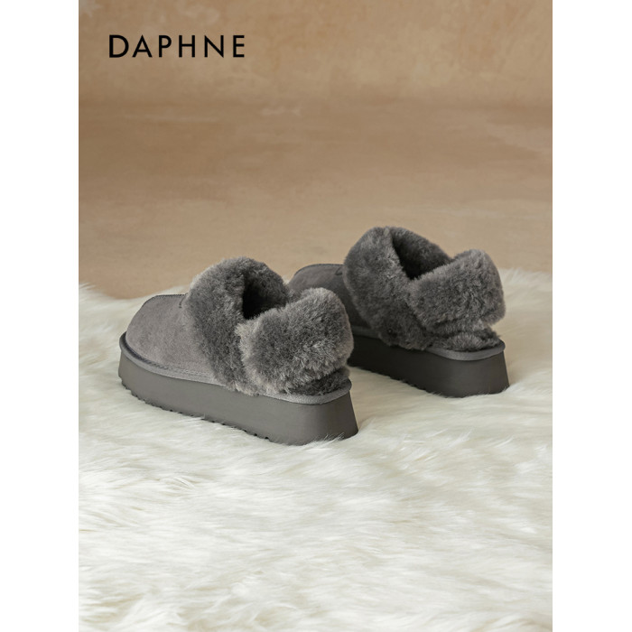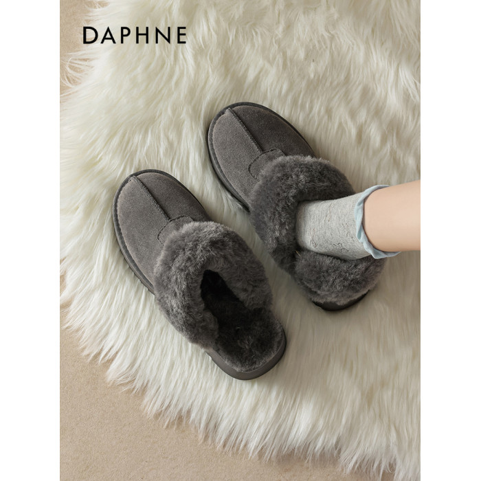 達芙妮灰色雪地靴女半拖秋冬季加絨毛絨棉靴毛毛拖鞋外穿厚底棉鞋