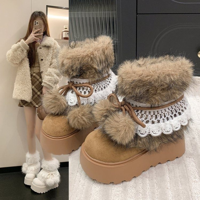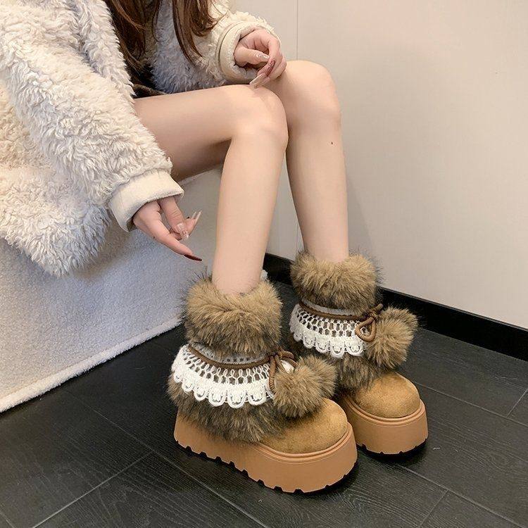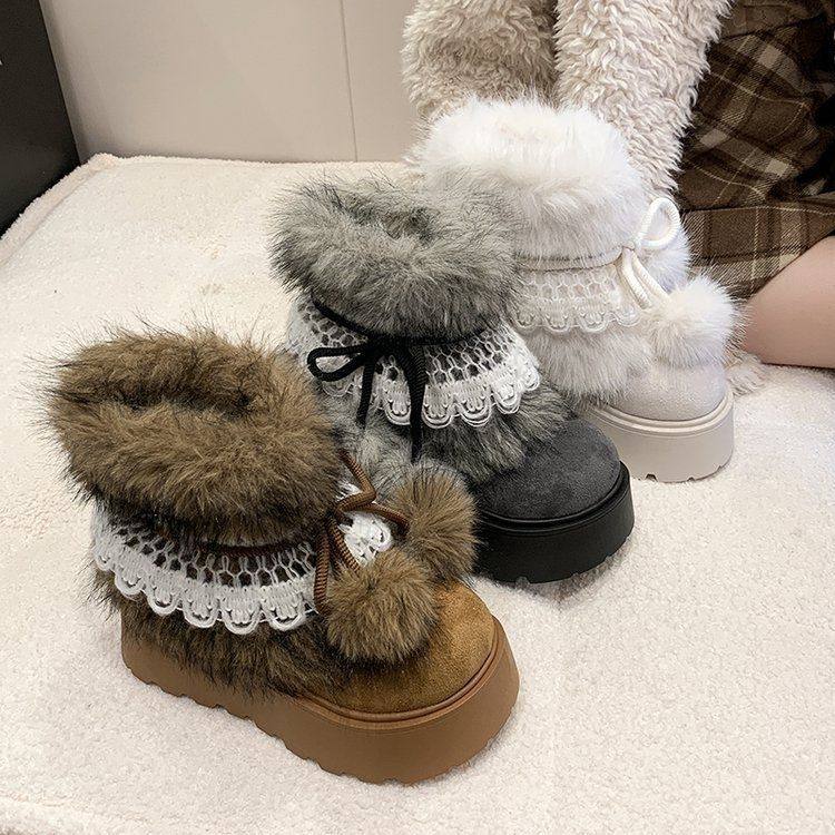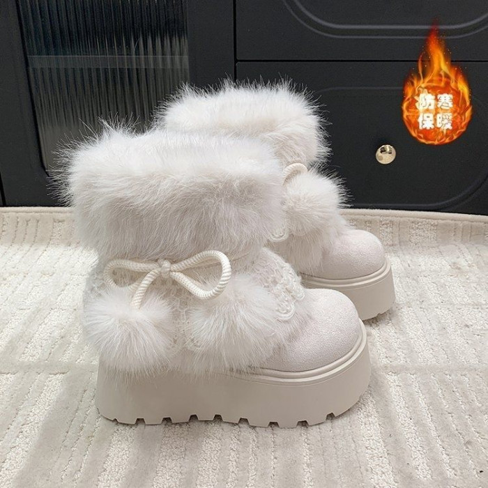 新款冬靴 增高靴女冬季加絨 2026 加厚東北多巴胺厚底毛球毛毛靴