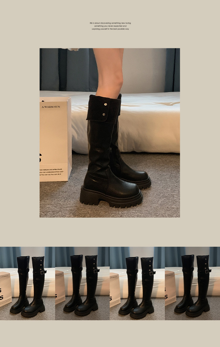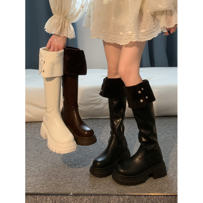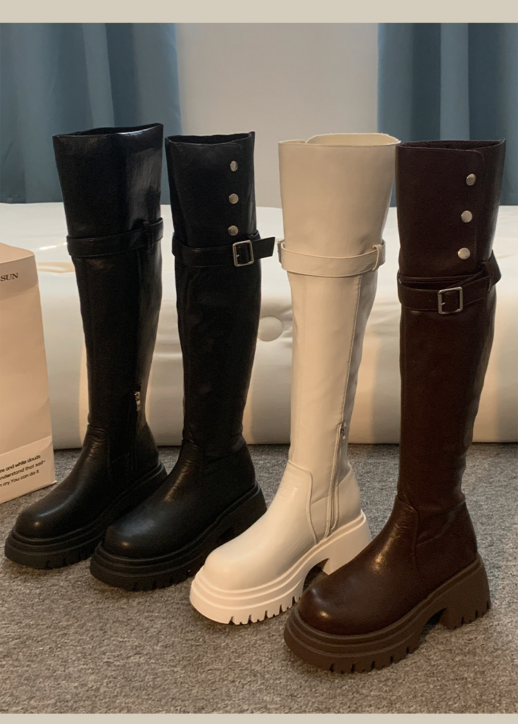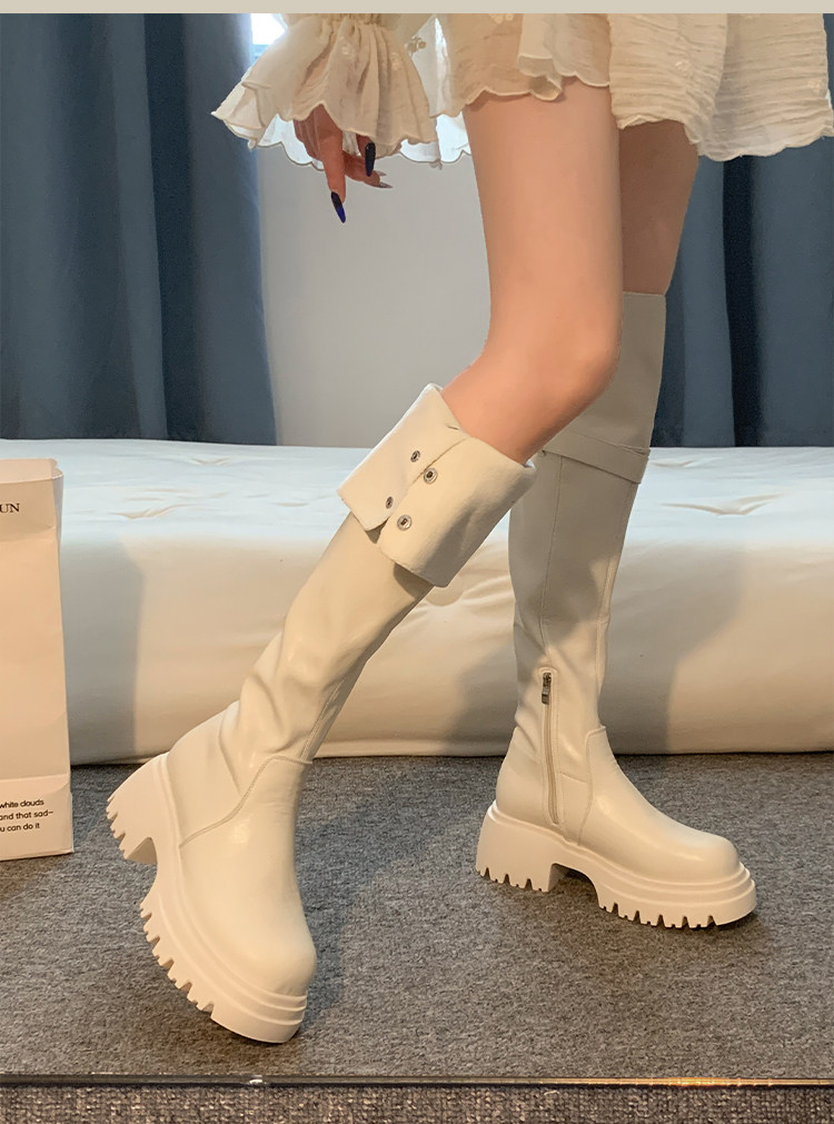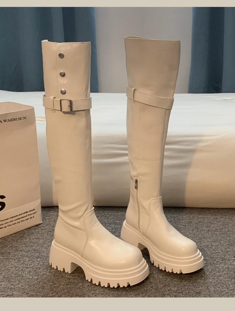 過膝長筒靴女款2026新款超火靴子春季加絨黑色高筒靴白色絕美鞋子