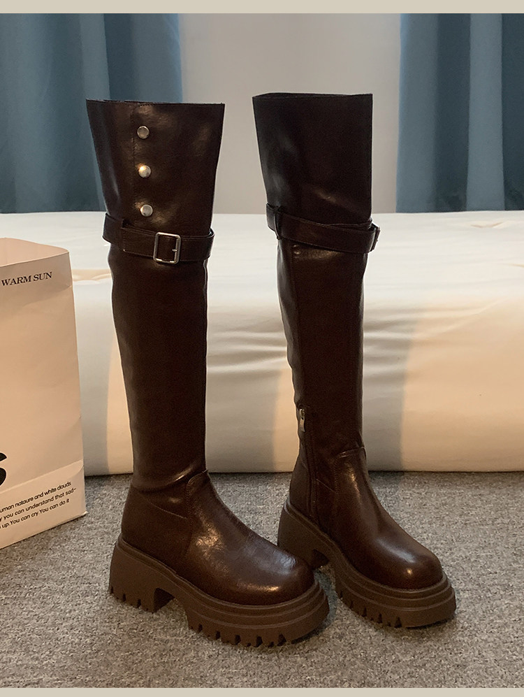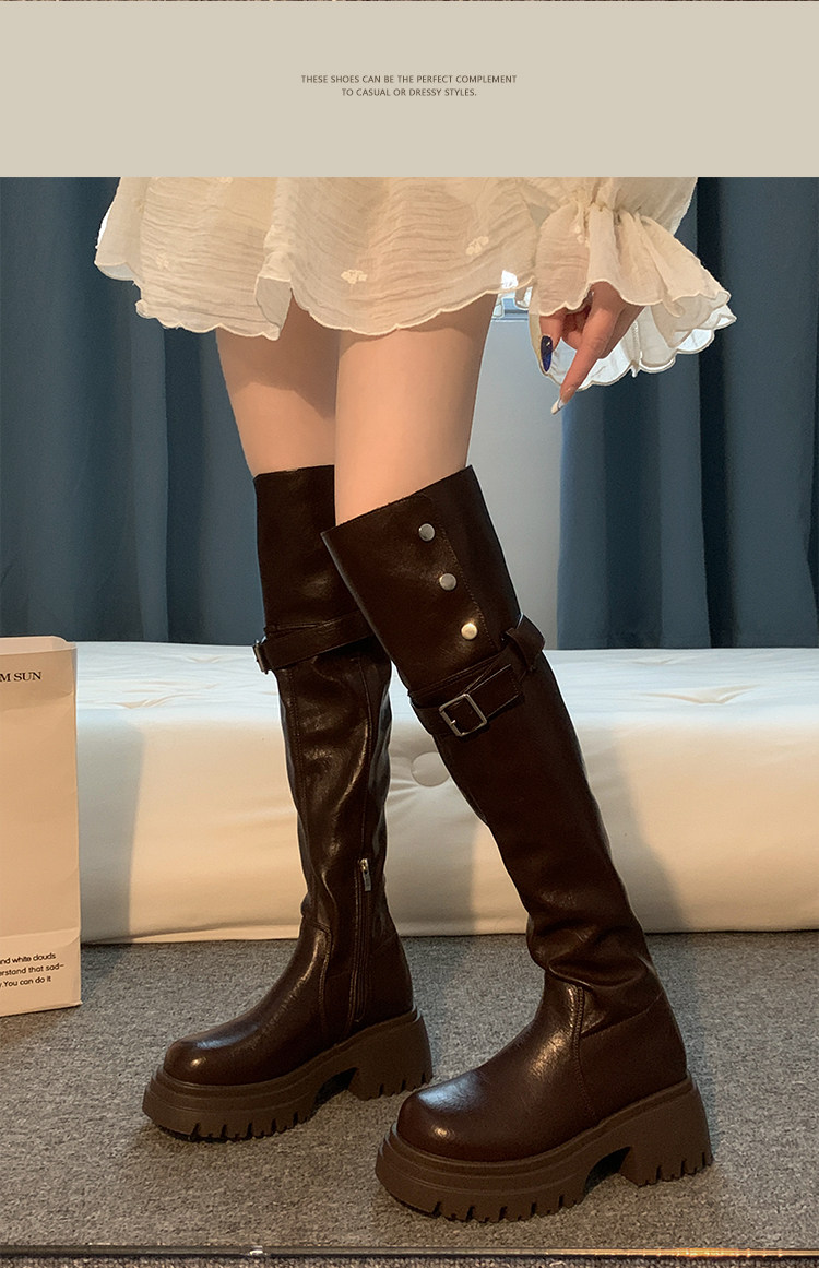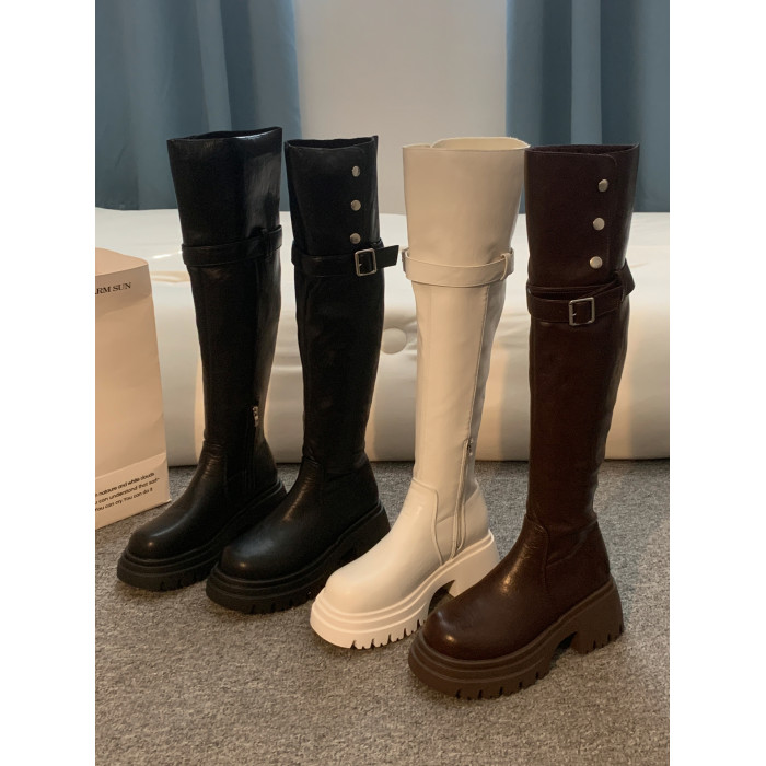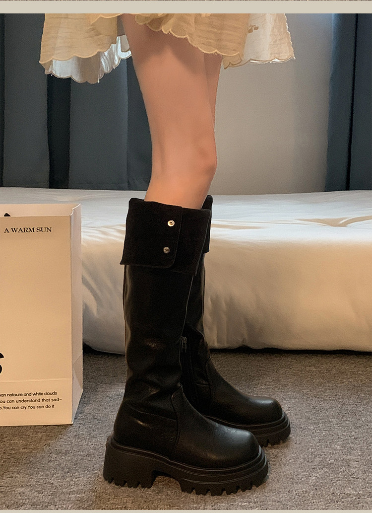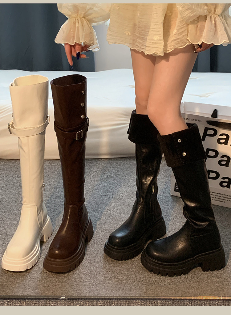 過膝長筒靴女款2026新款超火靴子春季加絨黑色高筒靴白色絕美鞋子