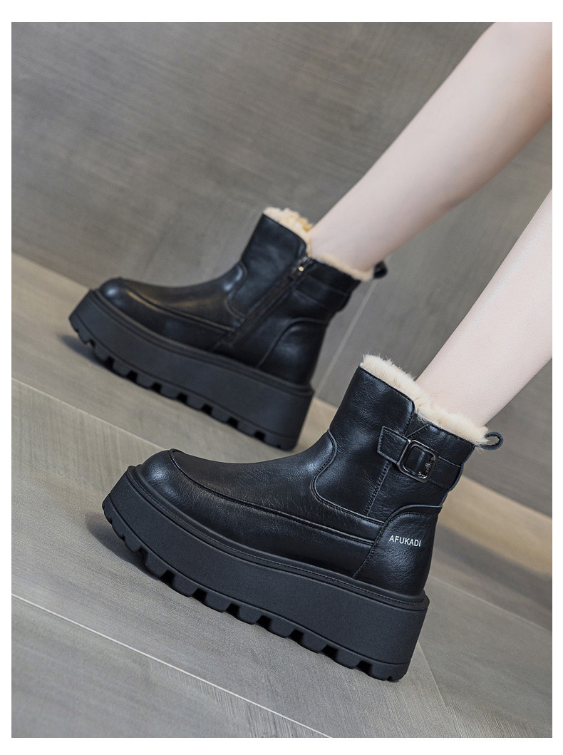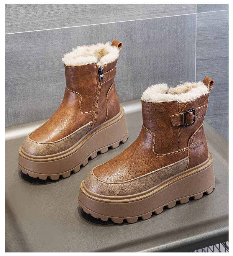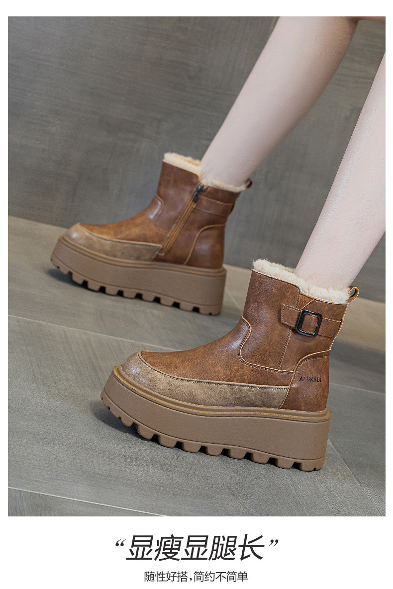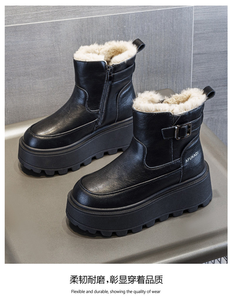 冬季加絨真皮雪地靴女2025新款防水防滑增高厚底加厚東北保暖棉鞋