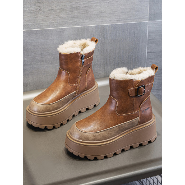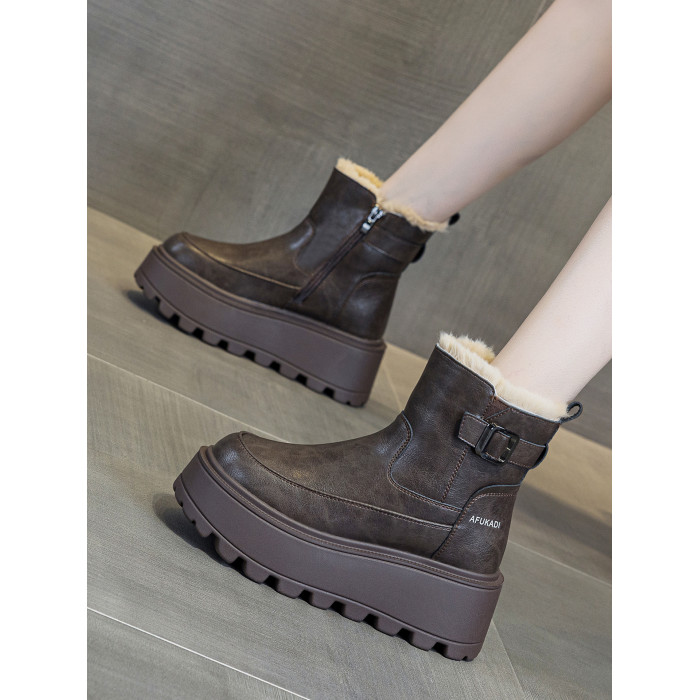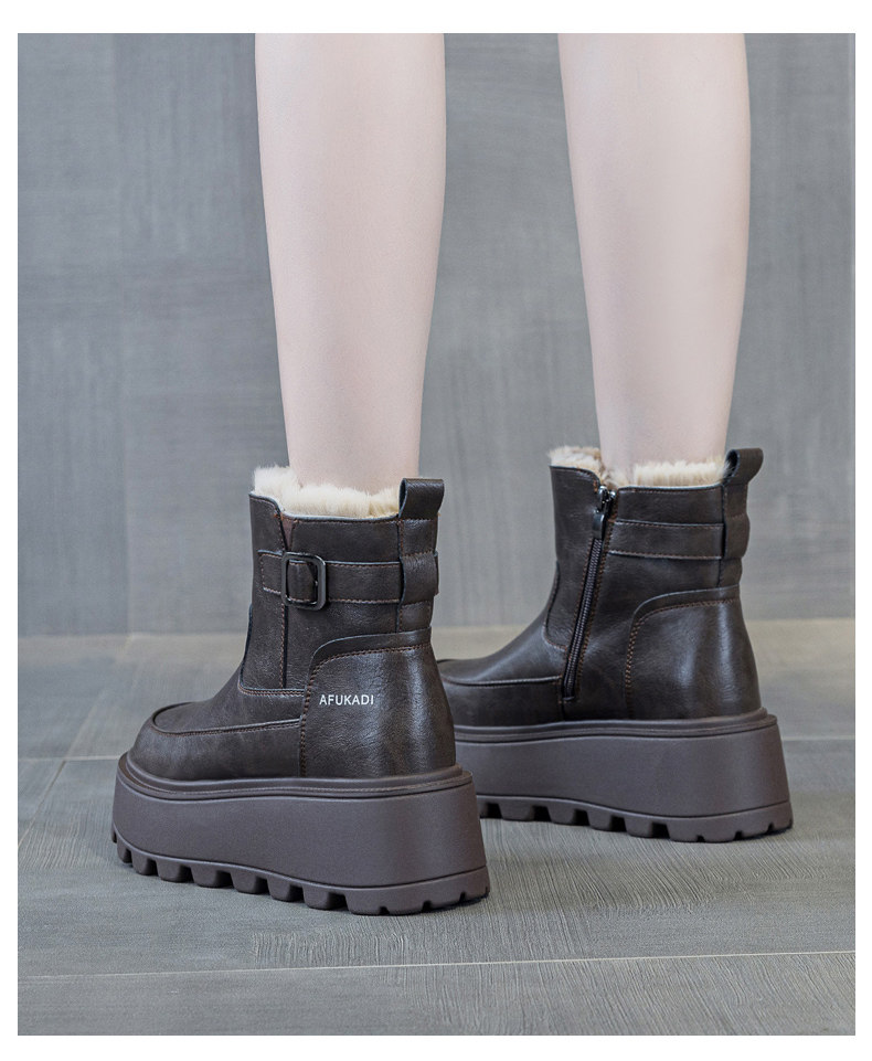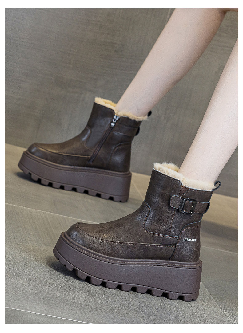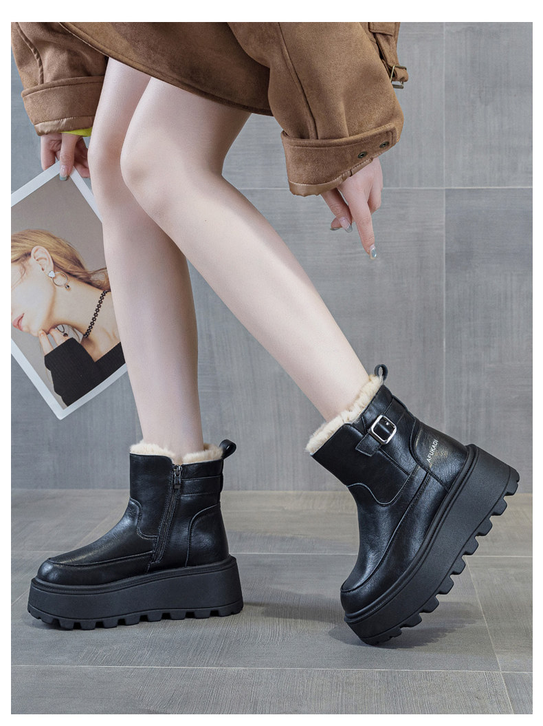 冬季加絨真皮雪地靴女2025新款防水防滑增高厚底加厚東北保暖棉鞋