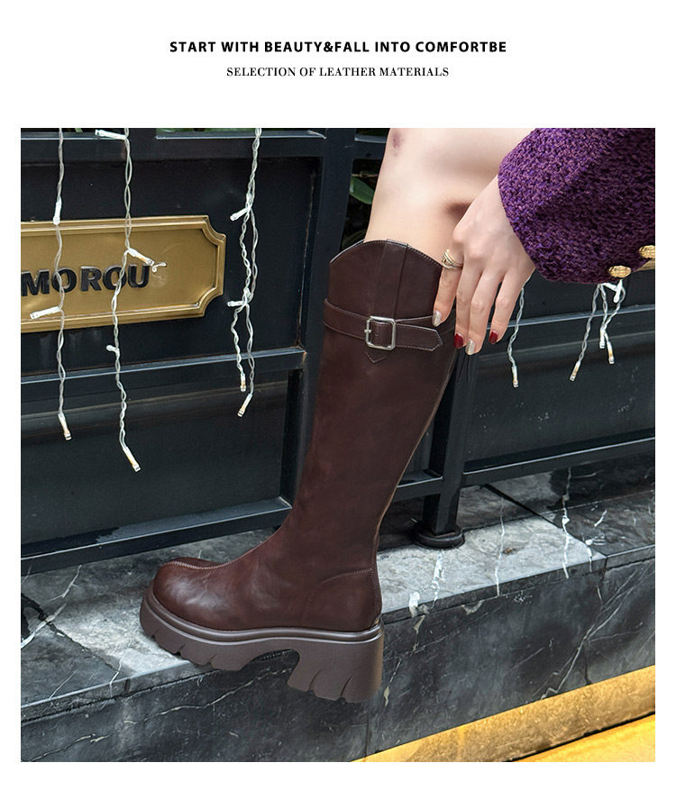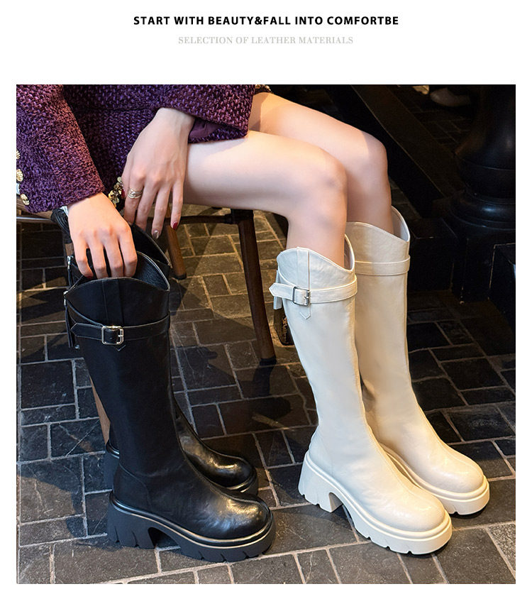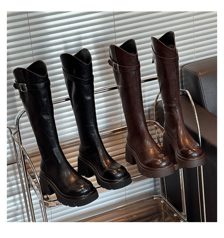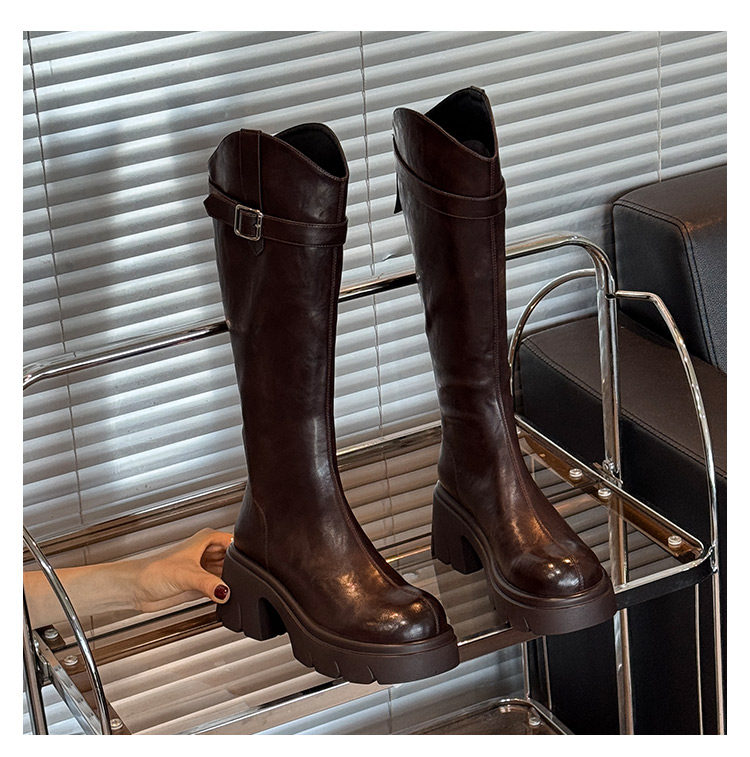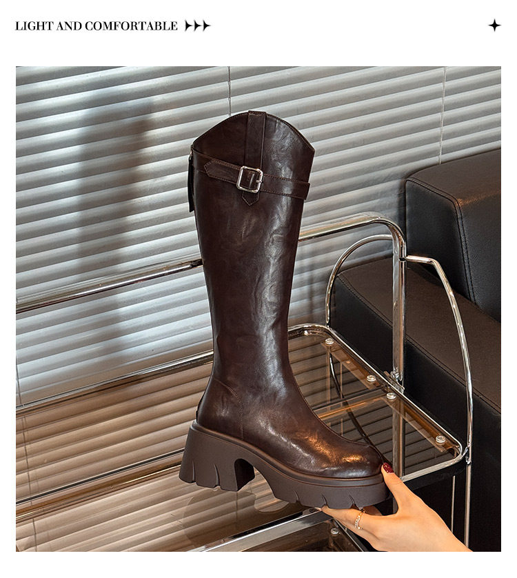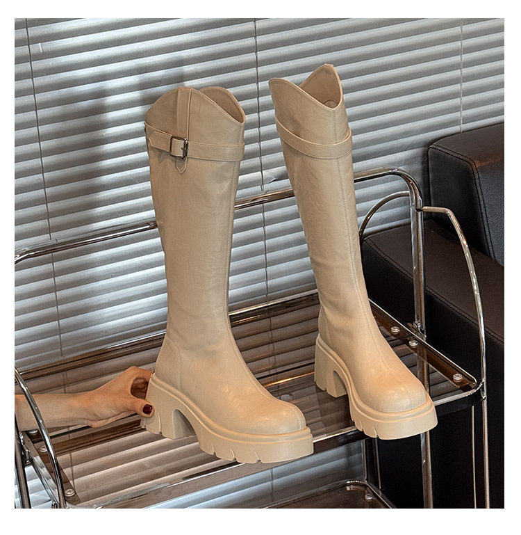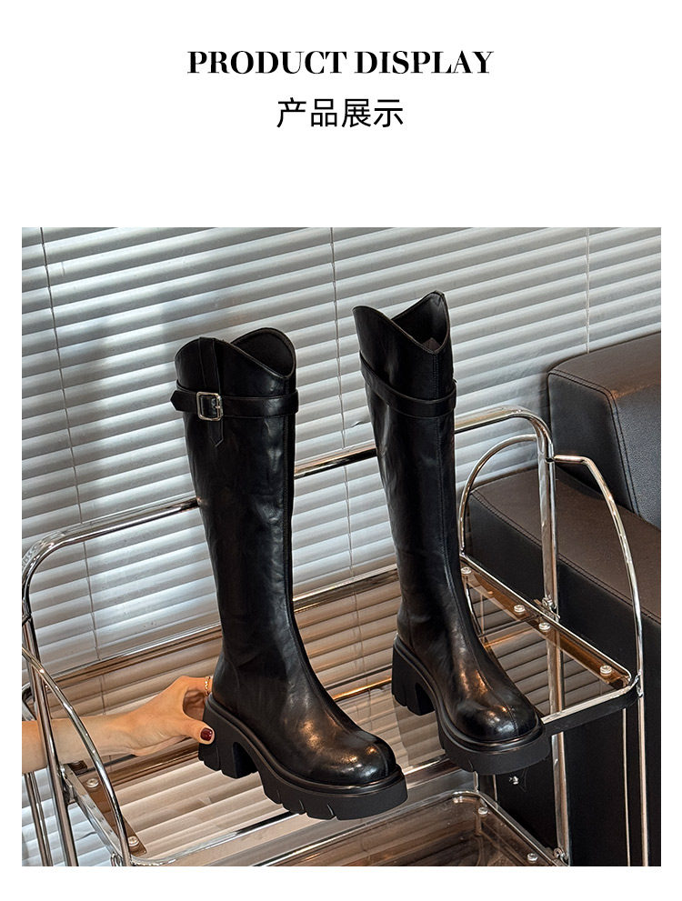 鞋夫人秋季新款v口長筒靴不過膝厚底增高時裝靴不掉筒騎士靴