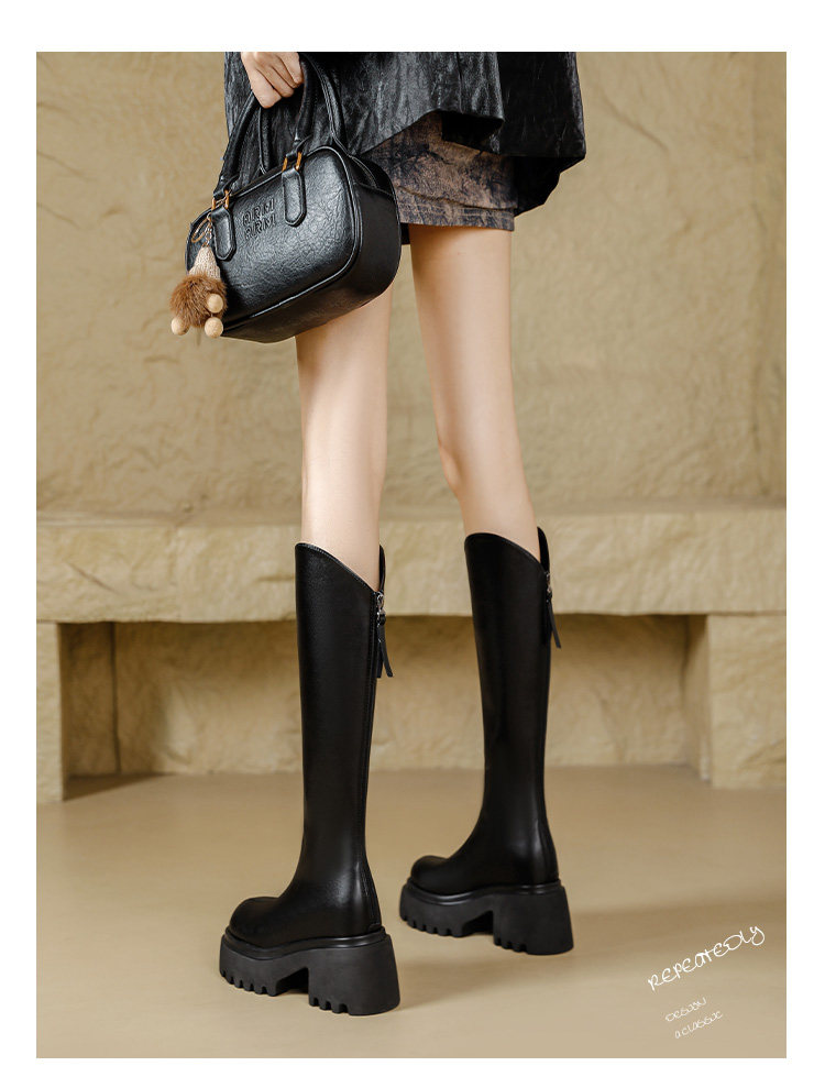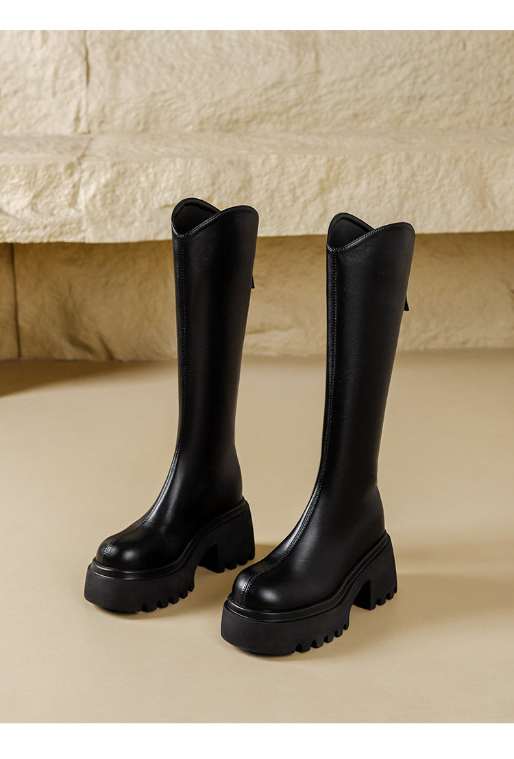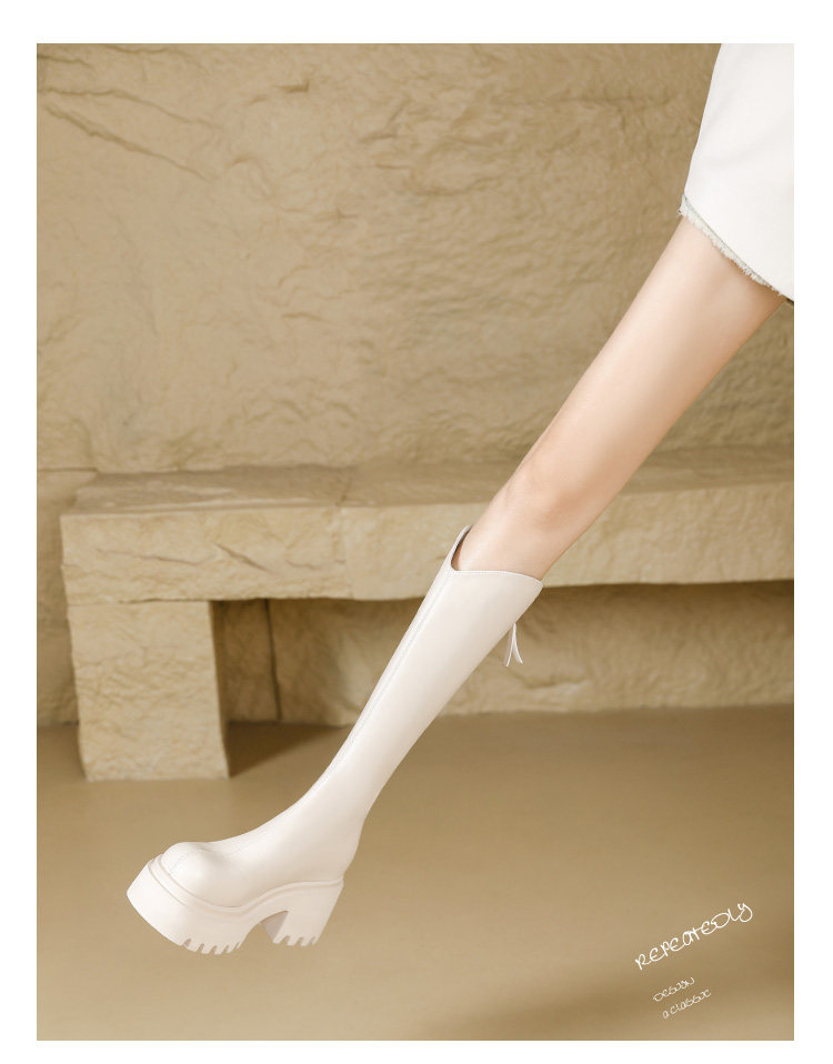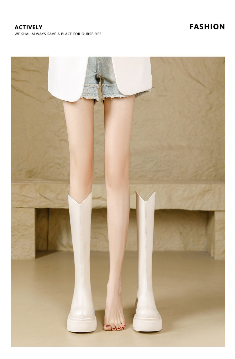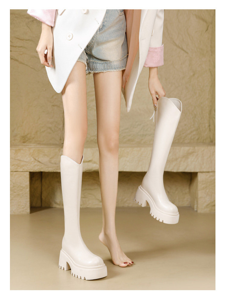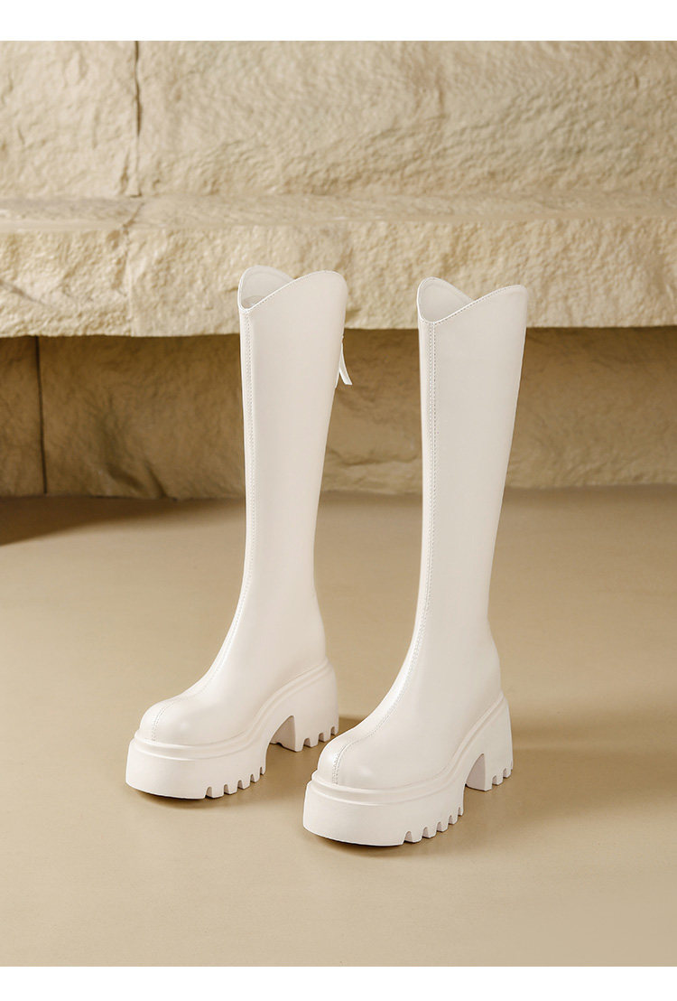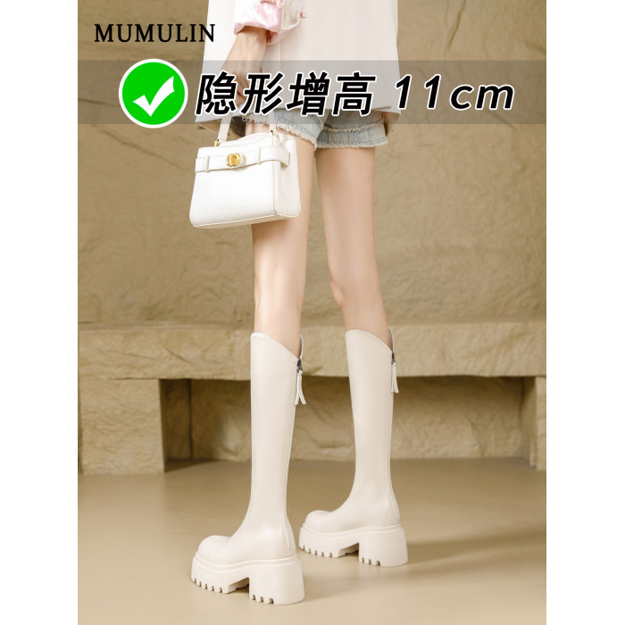 白色靴子長筒靴女冬內增高10cm松糕厚底小個子高筒騎士靴高跟真皮