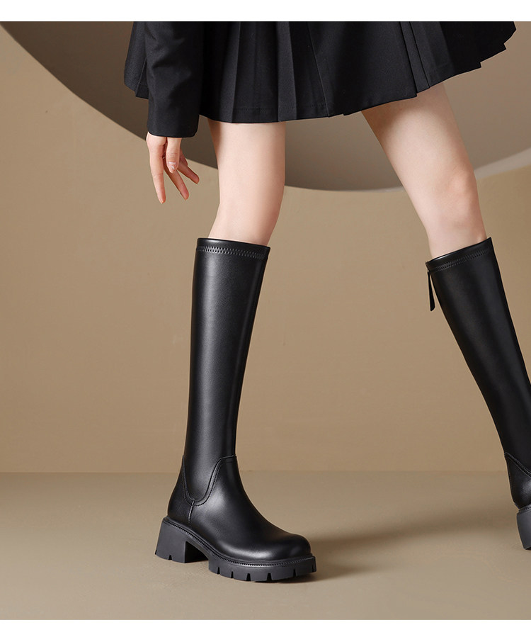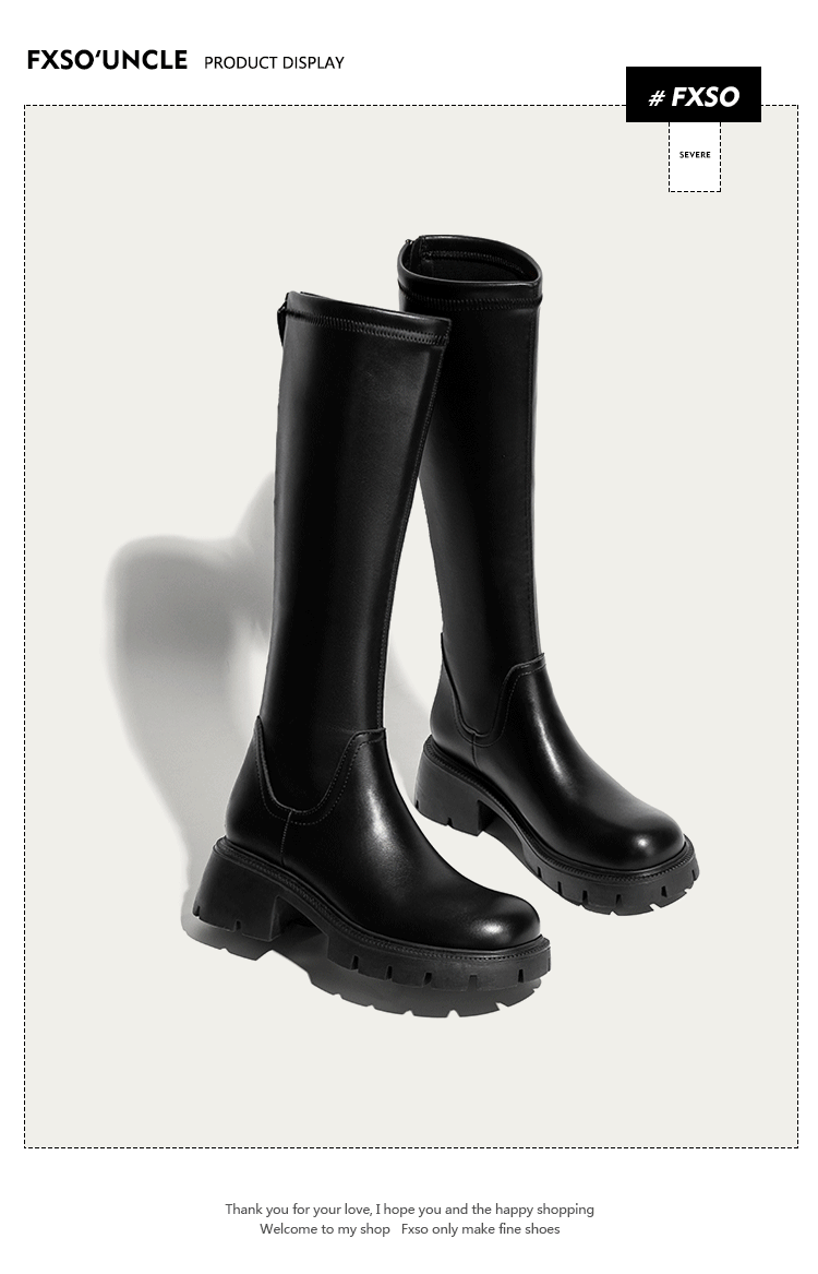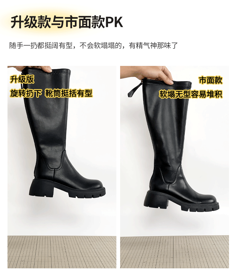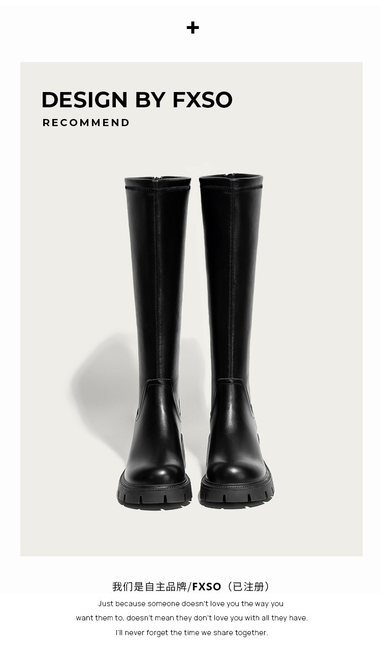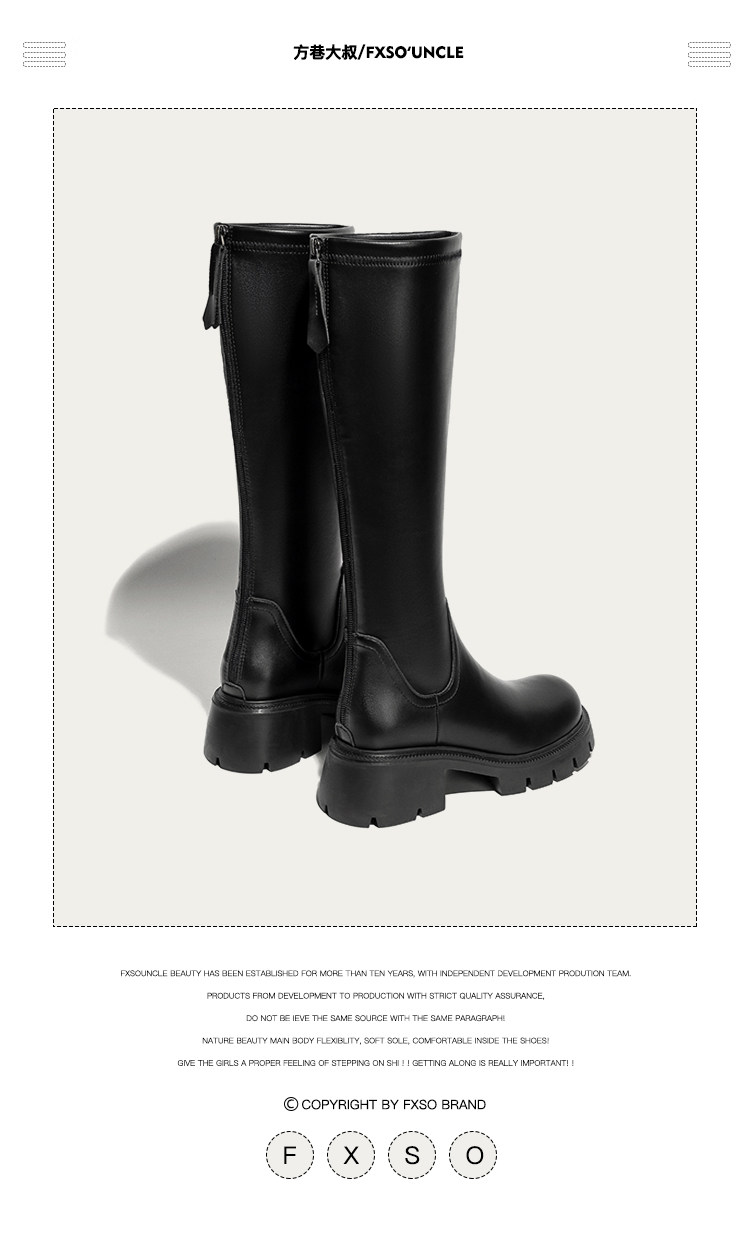 真皮FXSO方巷2026春季新款長筒靴女款黑色增高小個子騎士靴子長靴