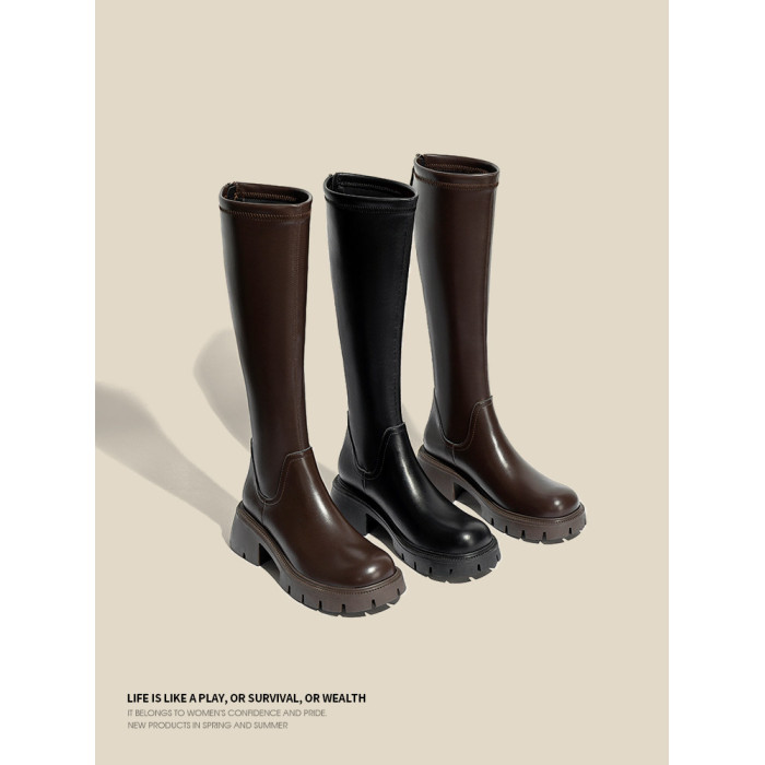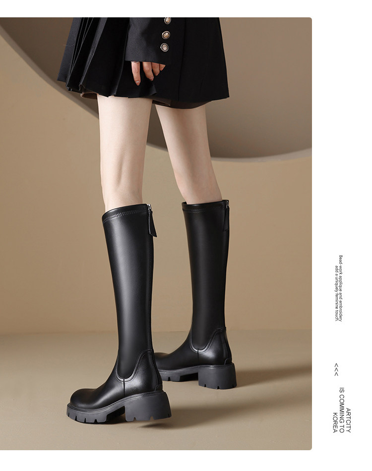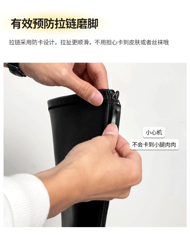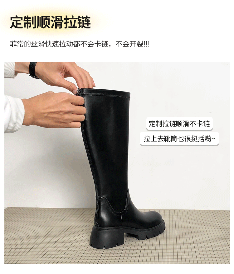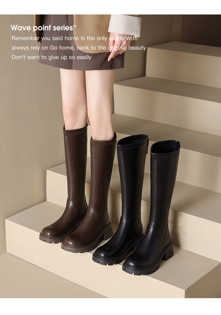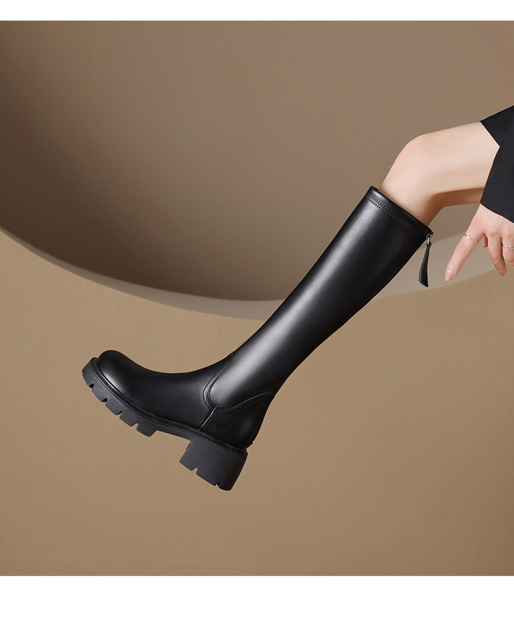 真皮FXSO方巷2026春季新款長筒靴女款黑色增高小個子騎士靴子長靴