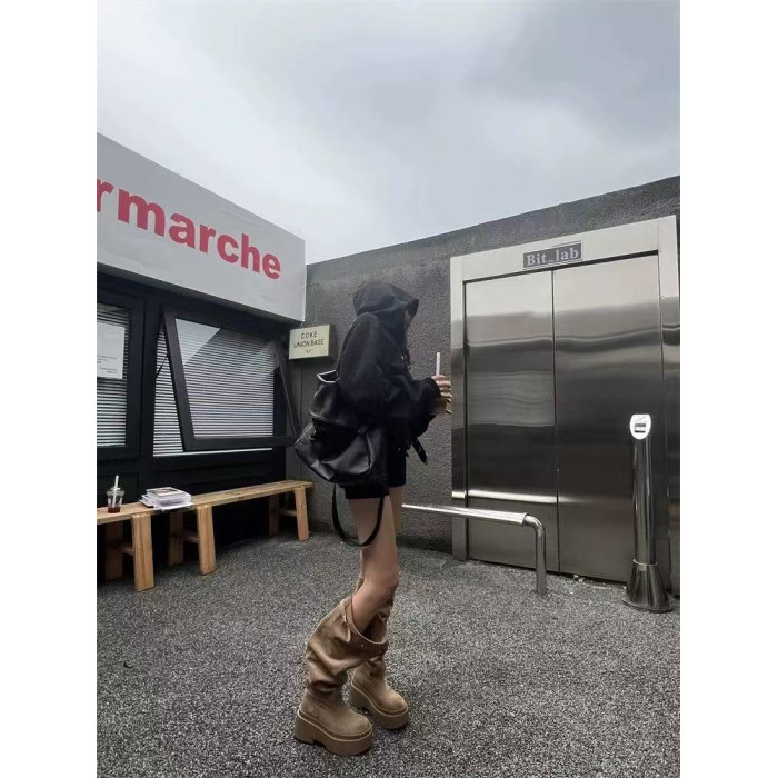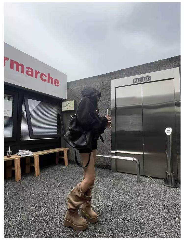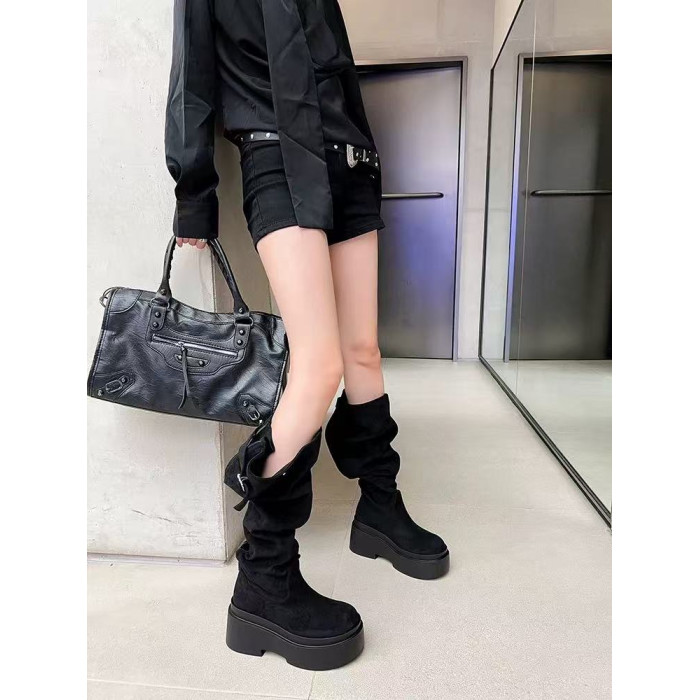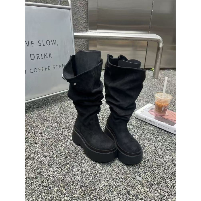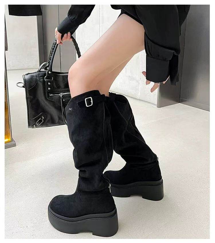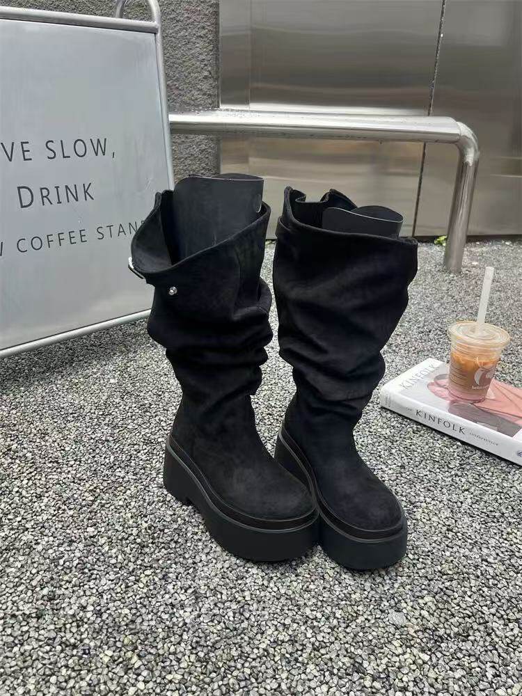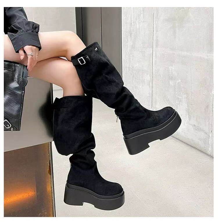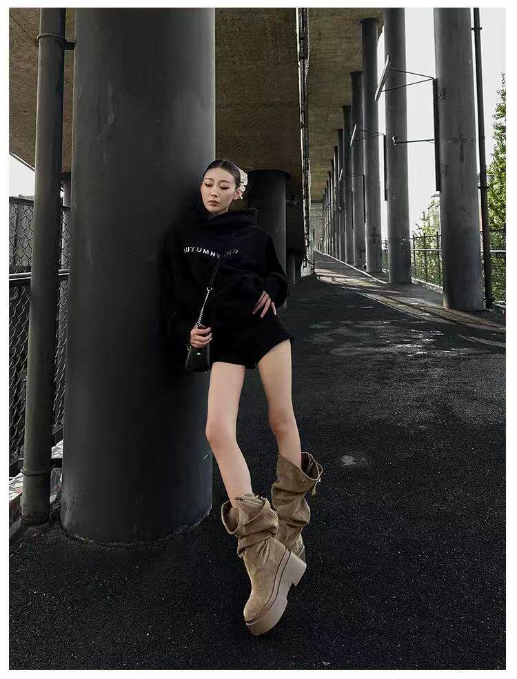 長筒靴女夏季2025新款小個子厚底增高長靴大西北穿搭棕色堆堆靴子