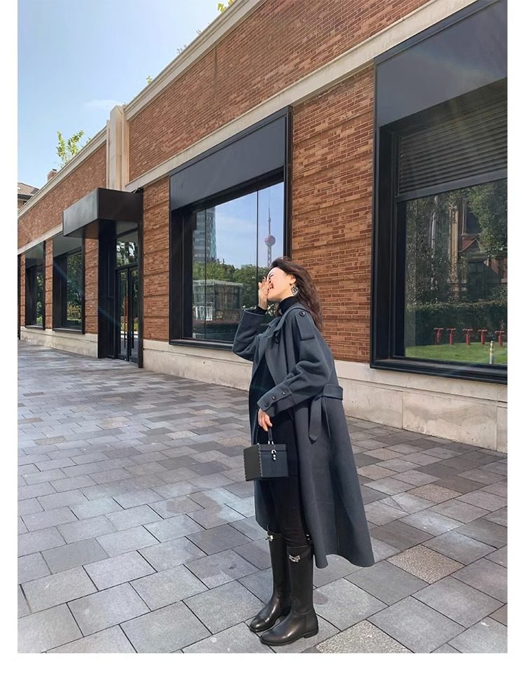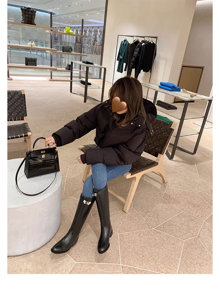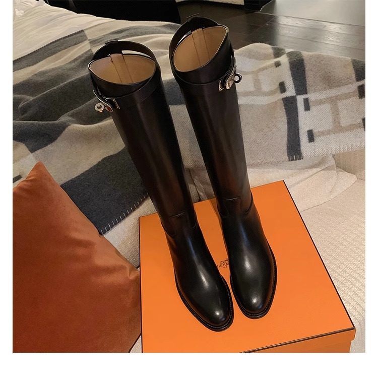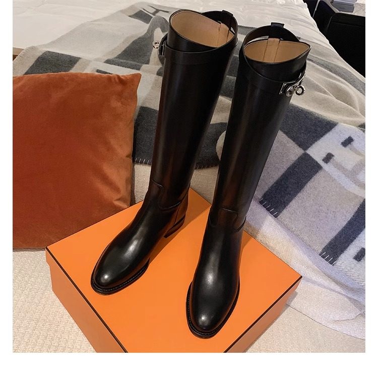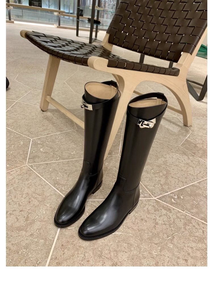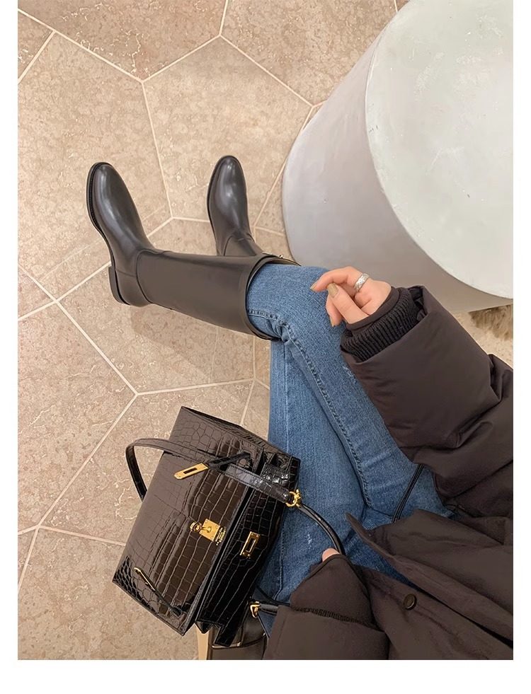2025新款高級感皮帶釦V口騎士靴女冬不過膝長筒靴高筒靴平底長靴