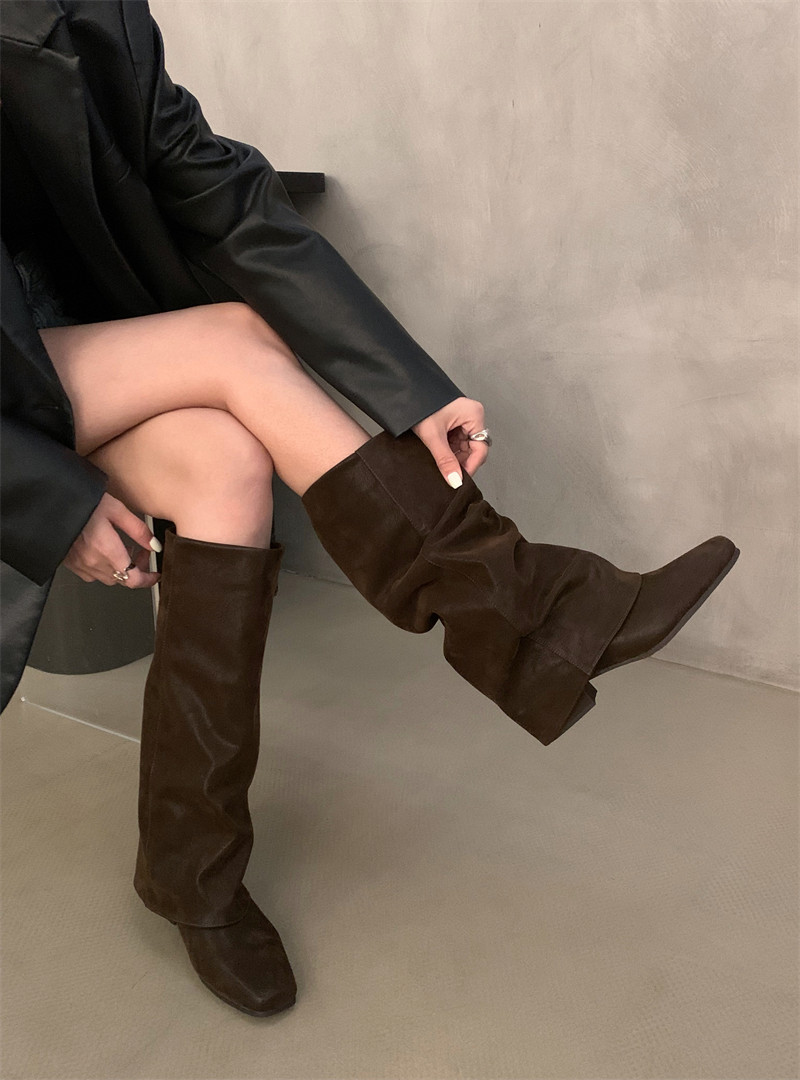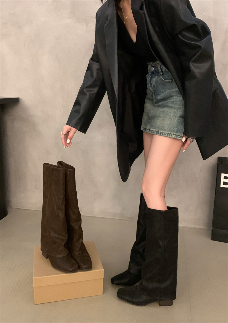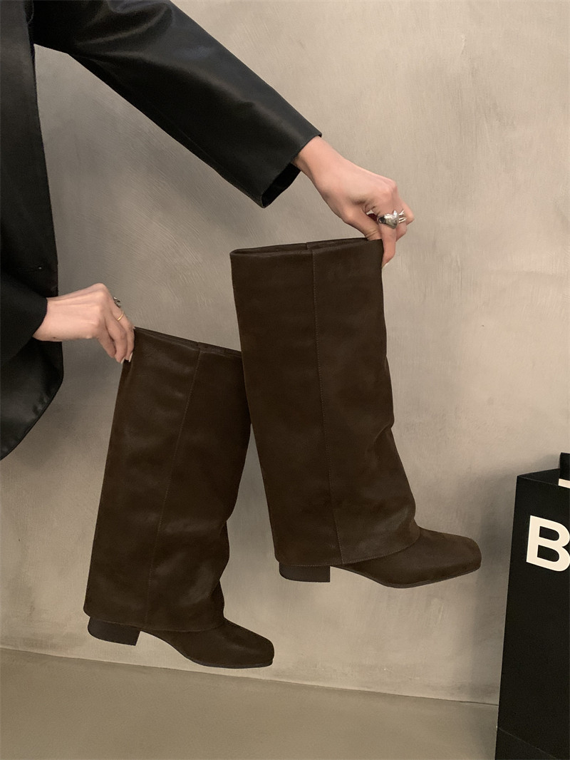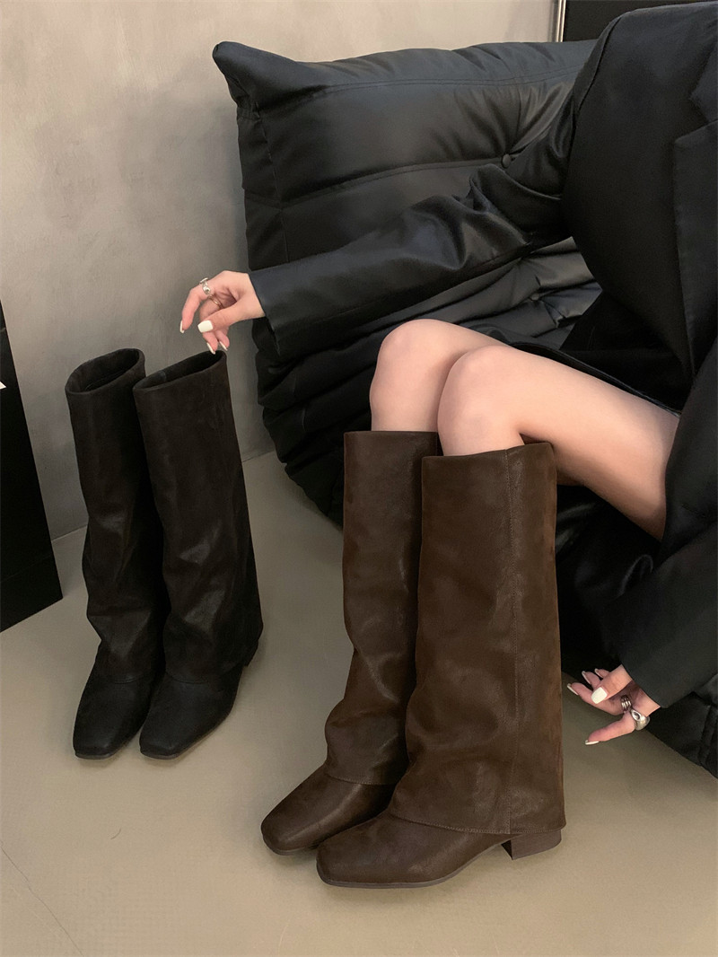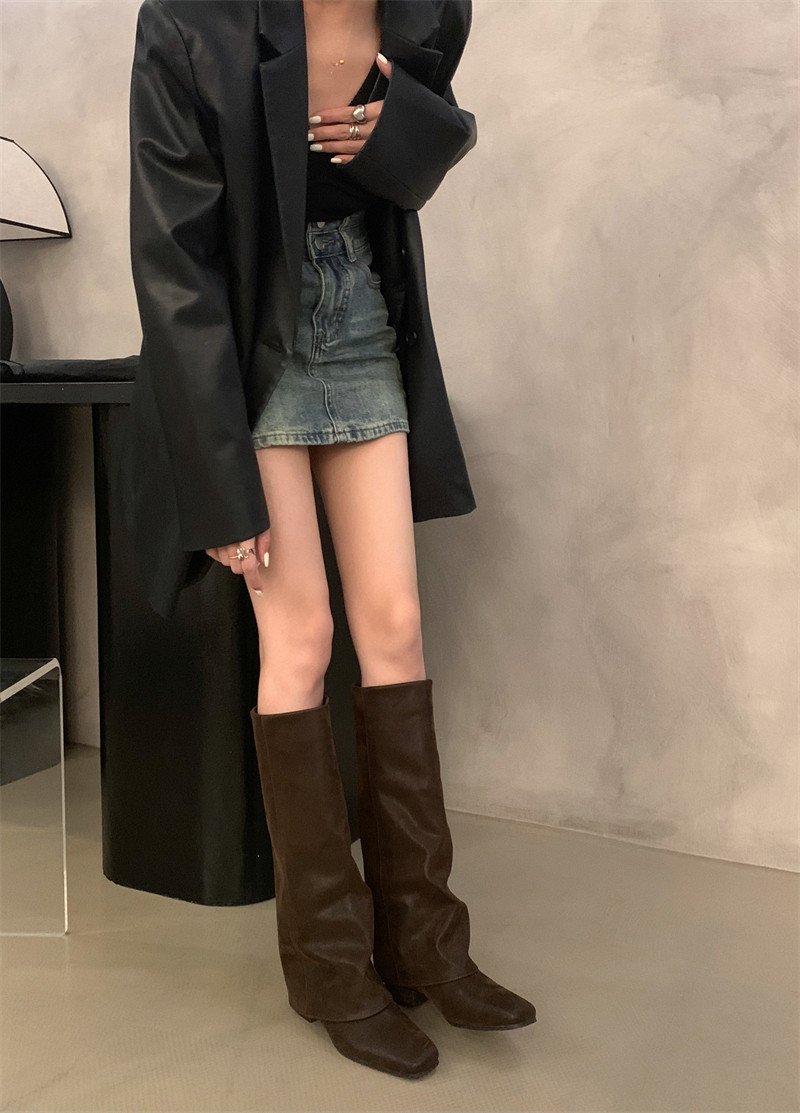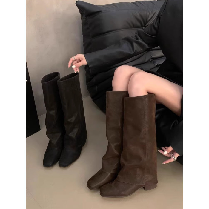 棕色復古粗跟高筒褲琯靴騎士靴早秋新款長靴法式女靴子西部牛仔靴