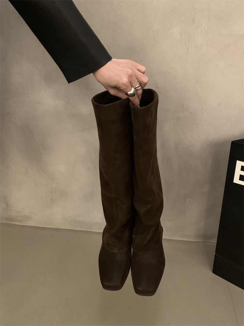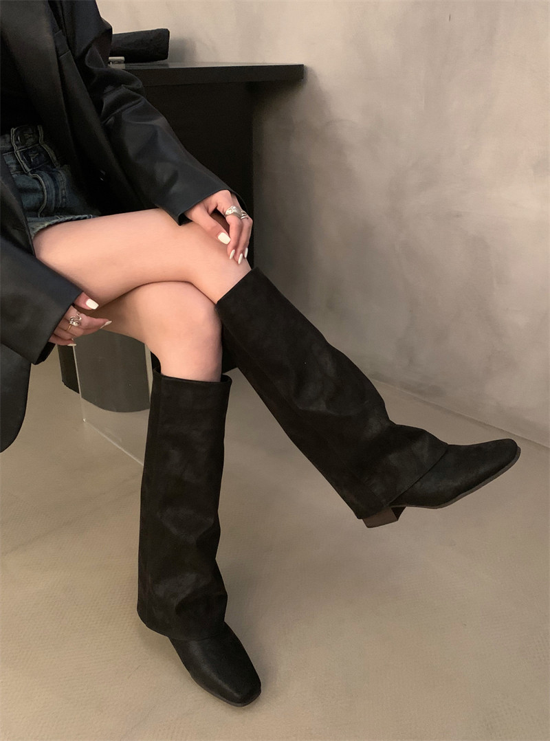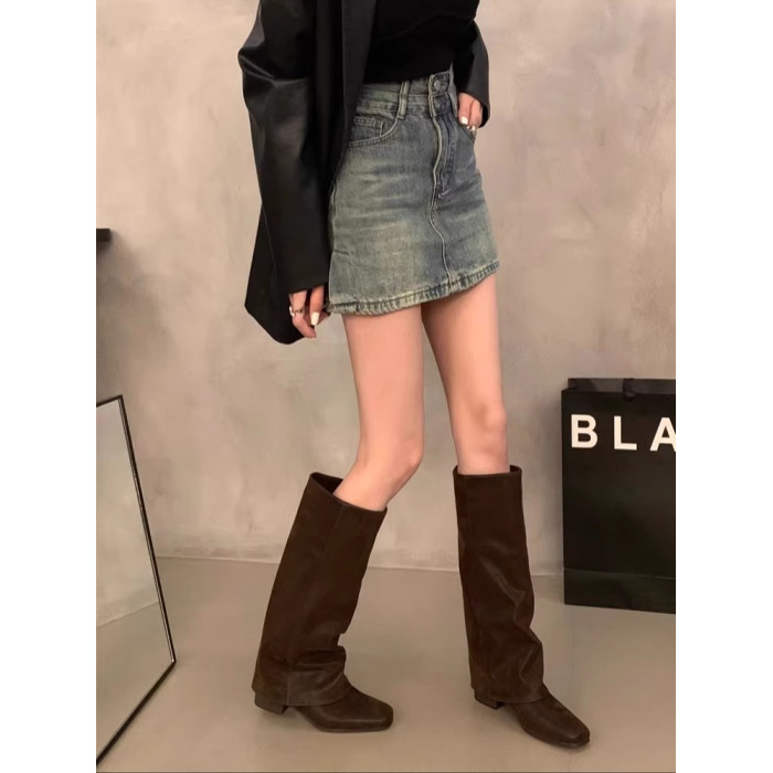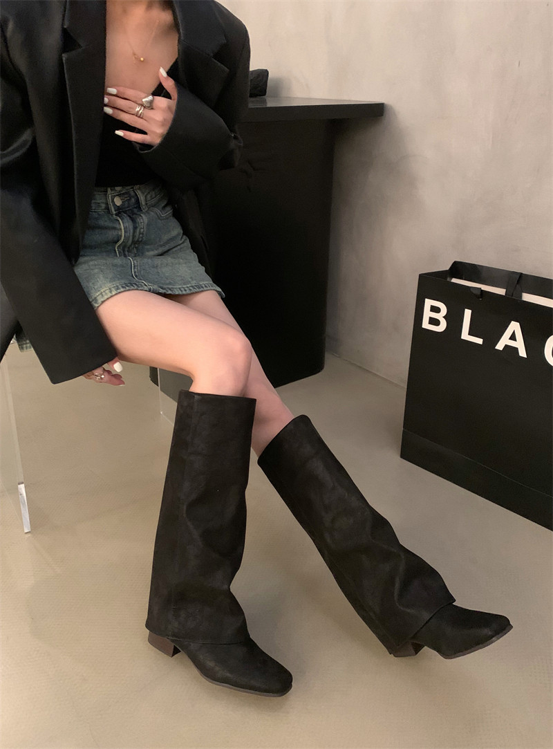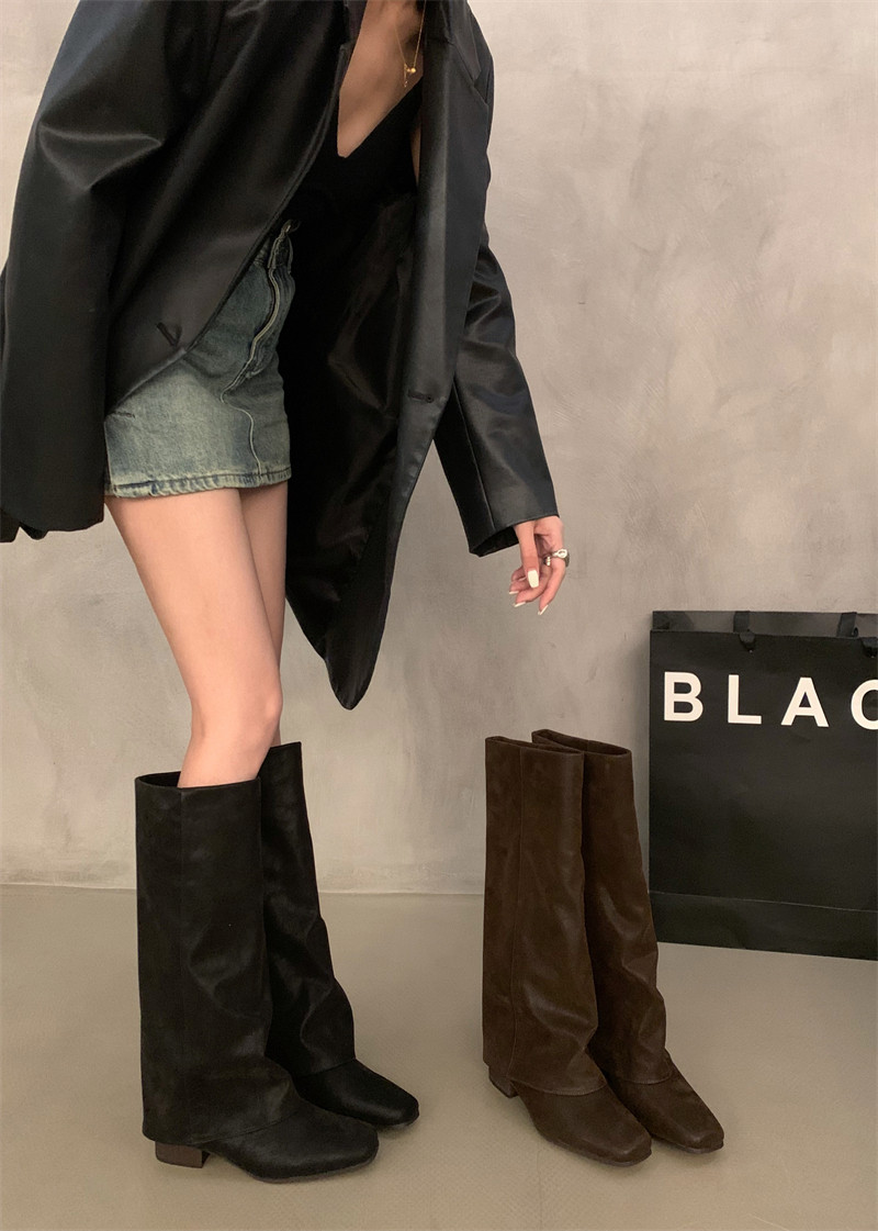 棕色復古粗跟高筒褲琯靴騎士靴早秋新款長靴法式女靴子西部牛仔靴