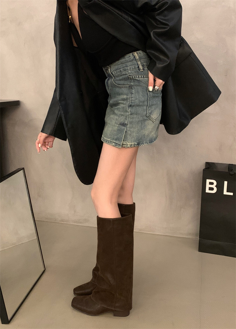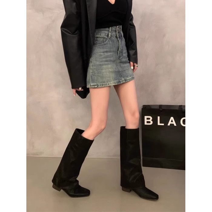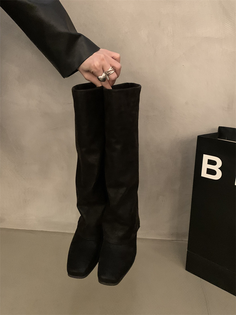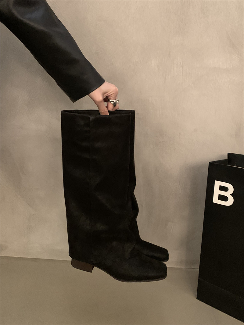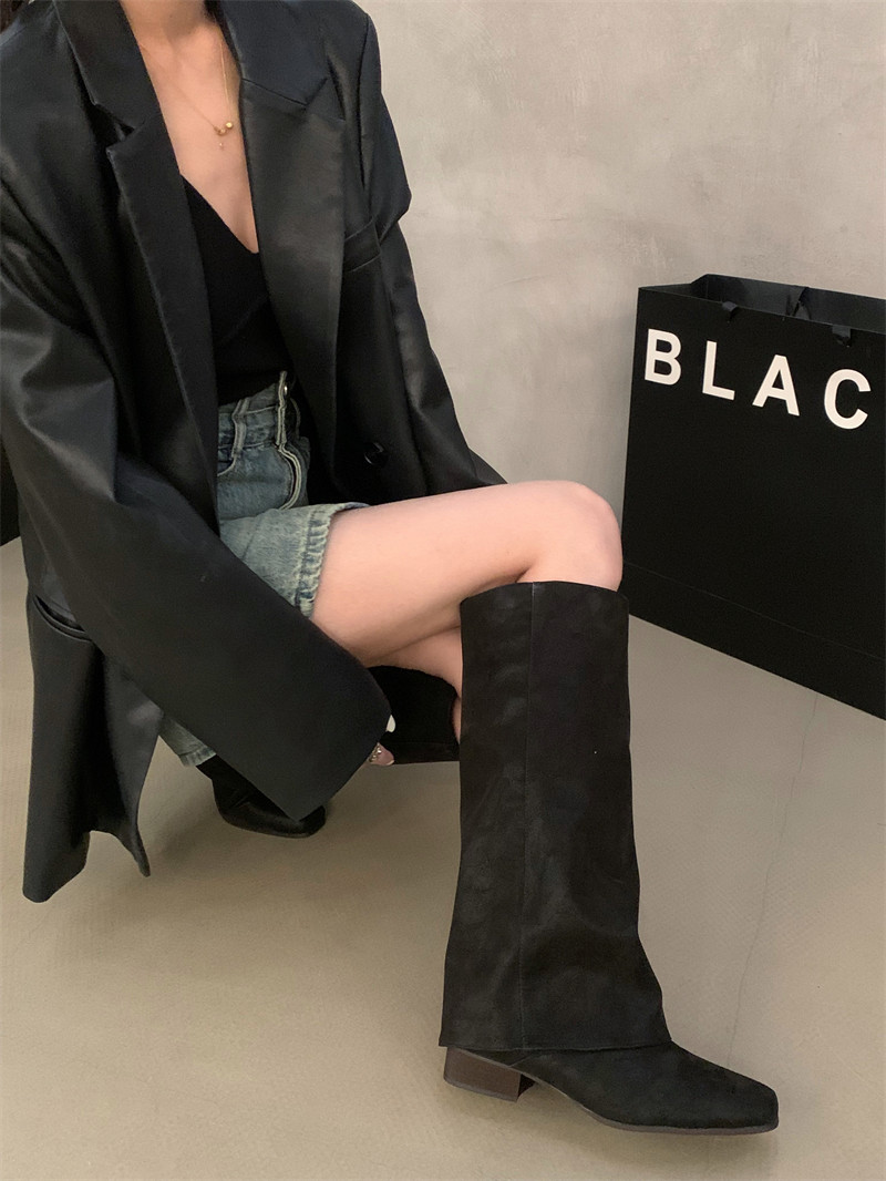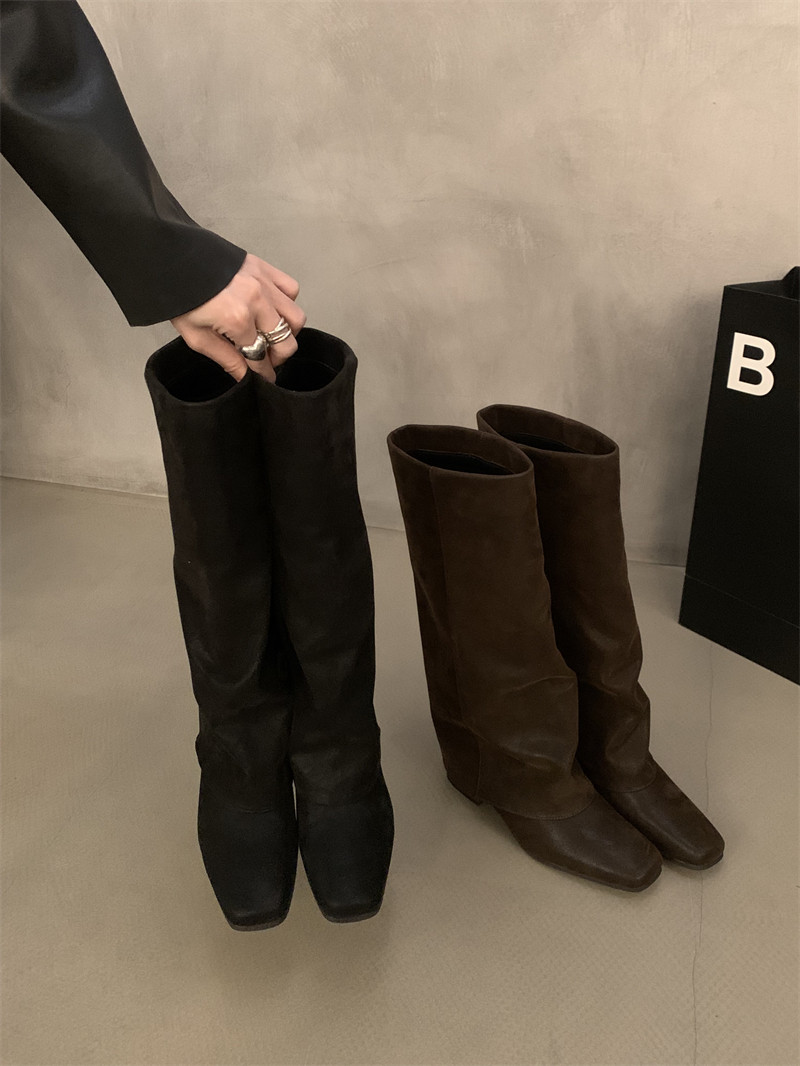 棕色復古粗跟高筒褲琯靴騎士靴早秋新款長靴法式女靴子西部牛仔靴