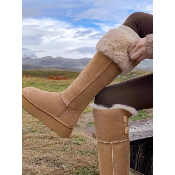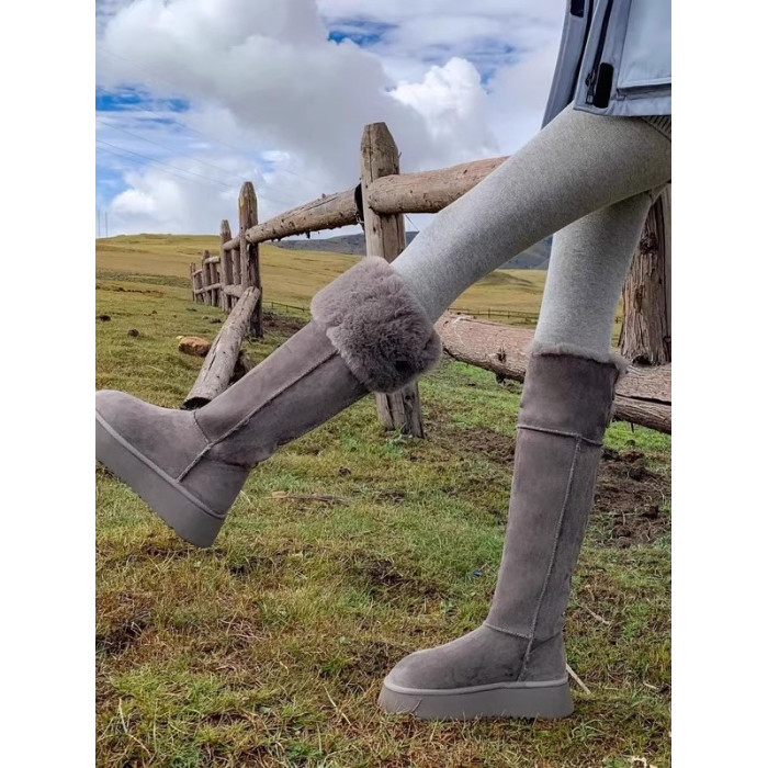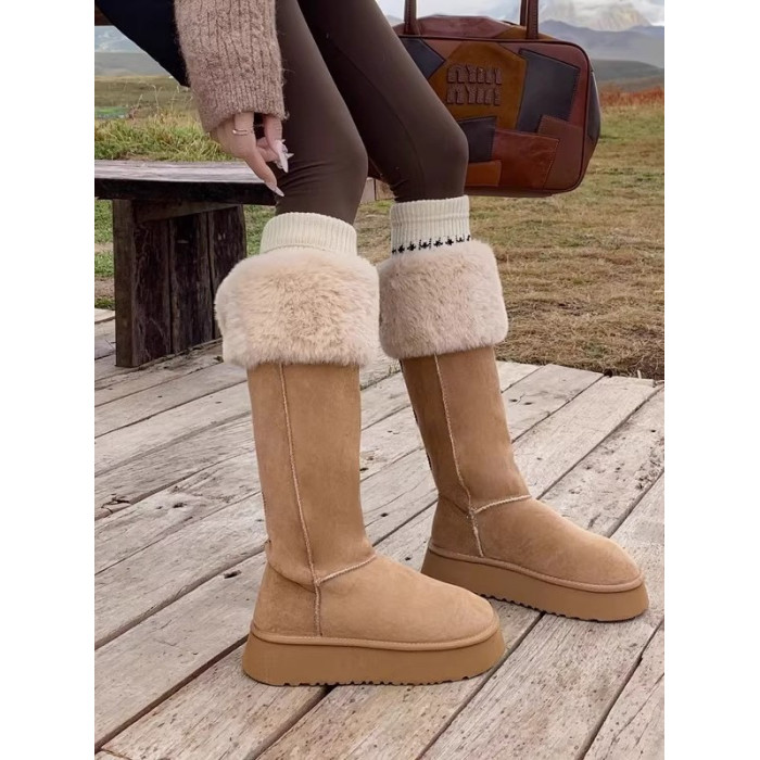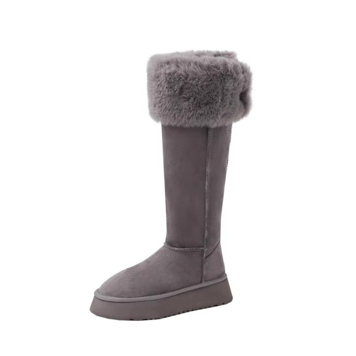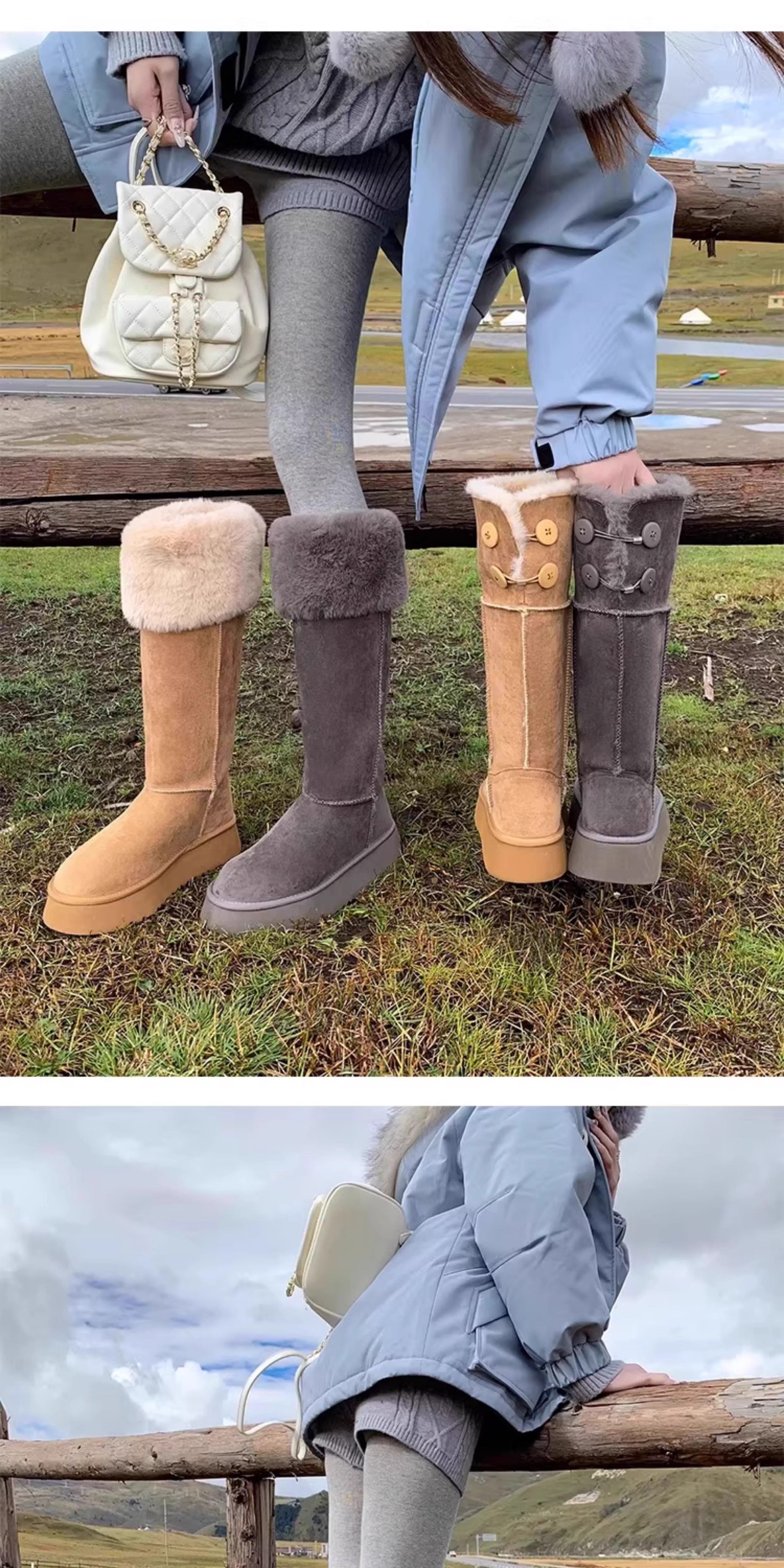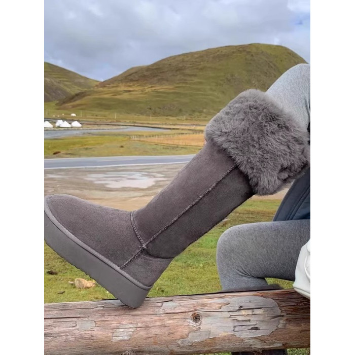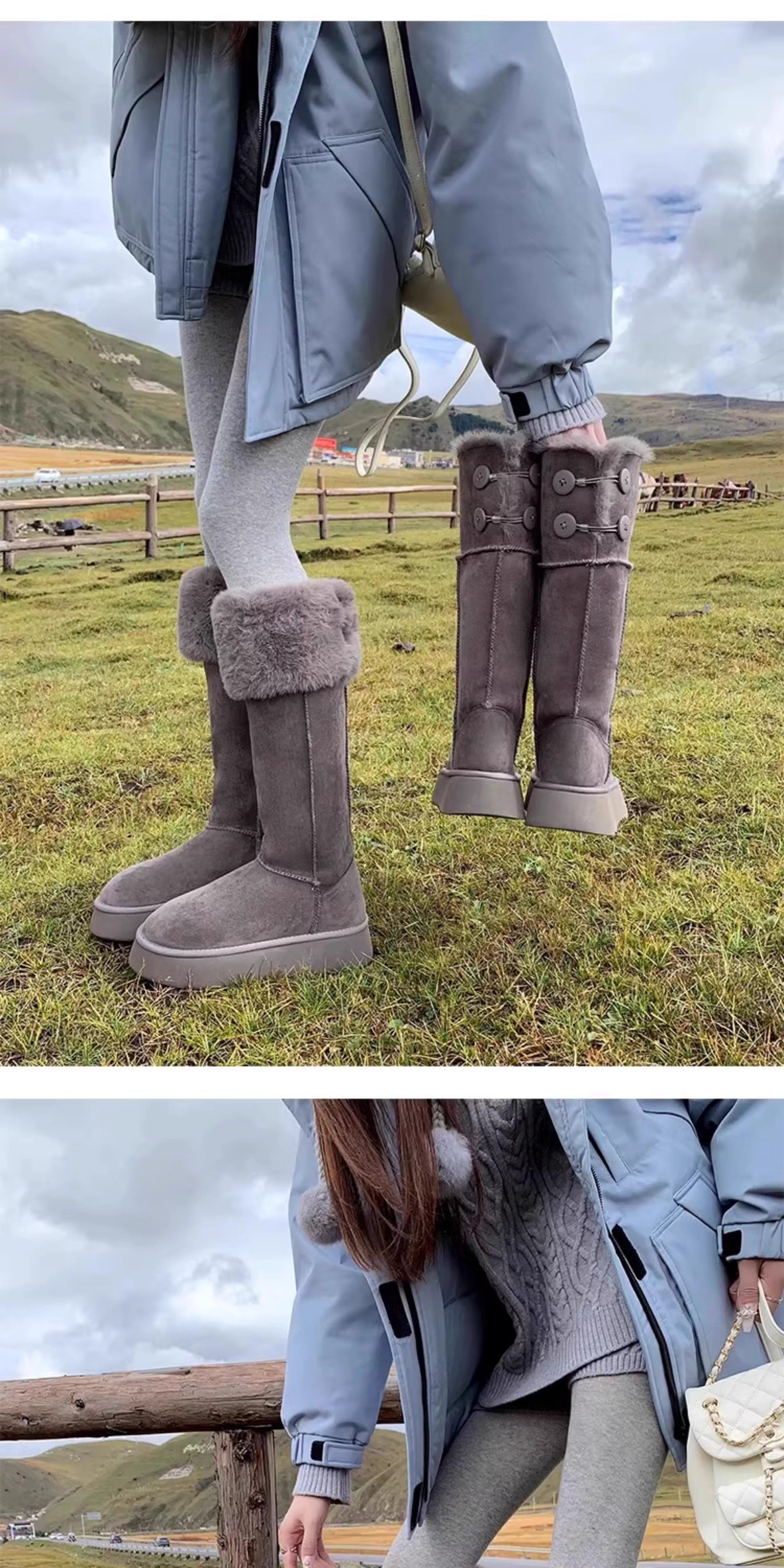 兔毛時尚灰色高筒厚底兩穿雪地靴女2025新款加絨加厚東北保暖棉鞋