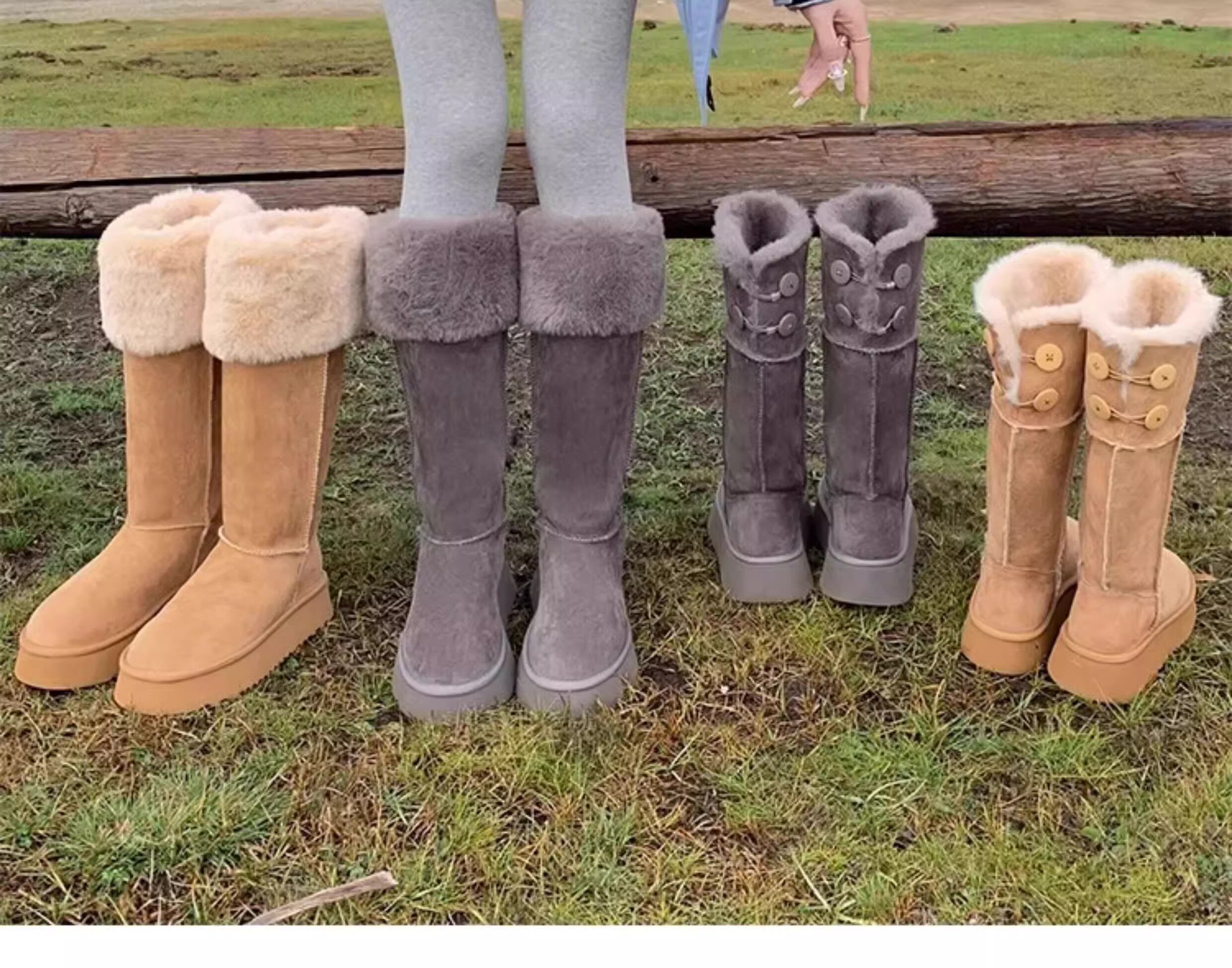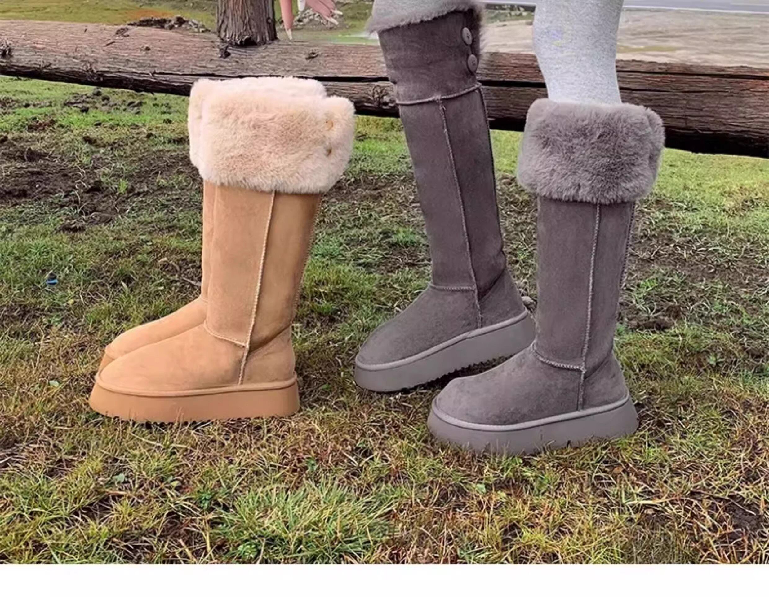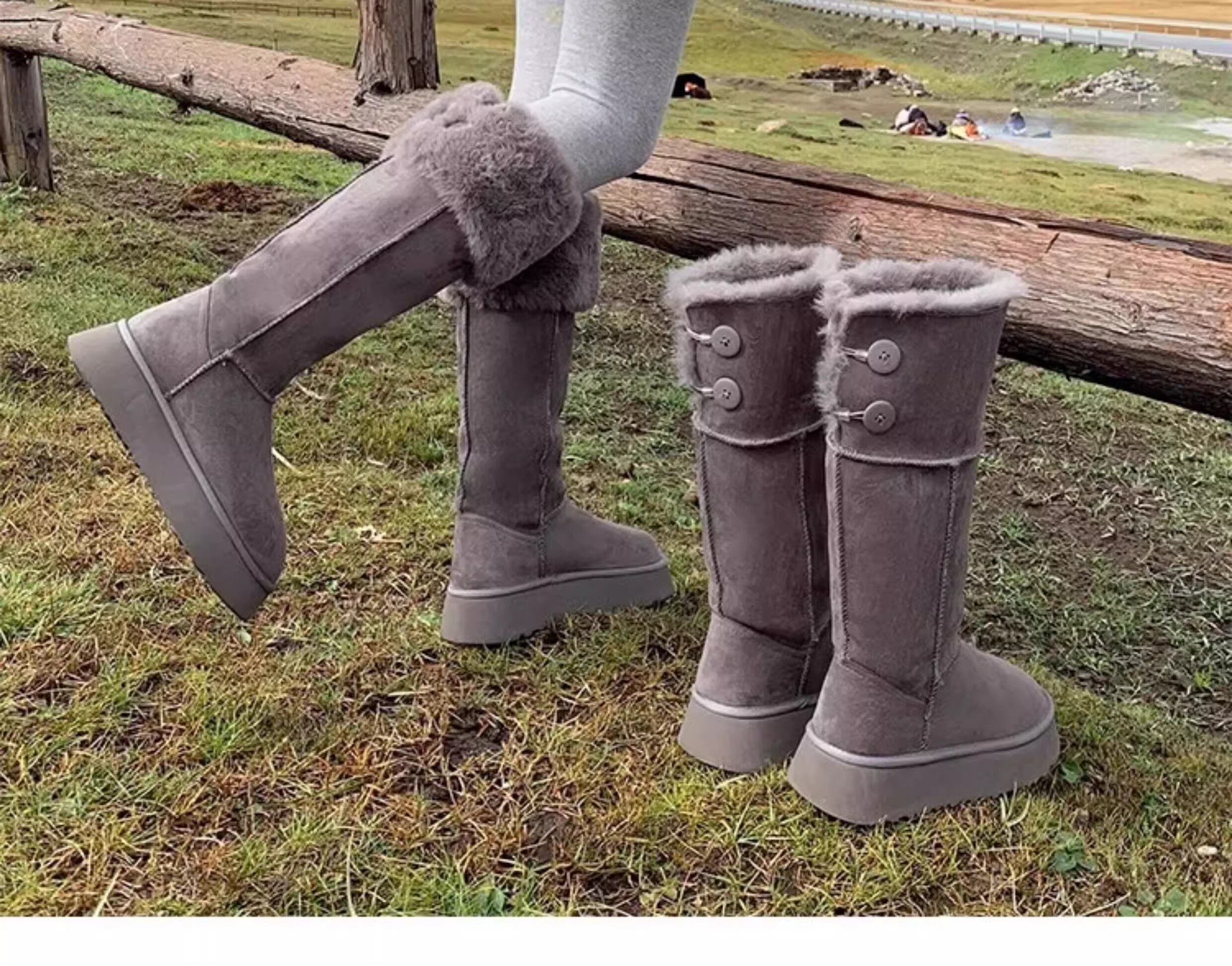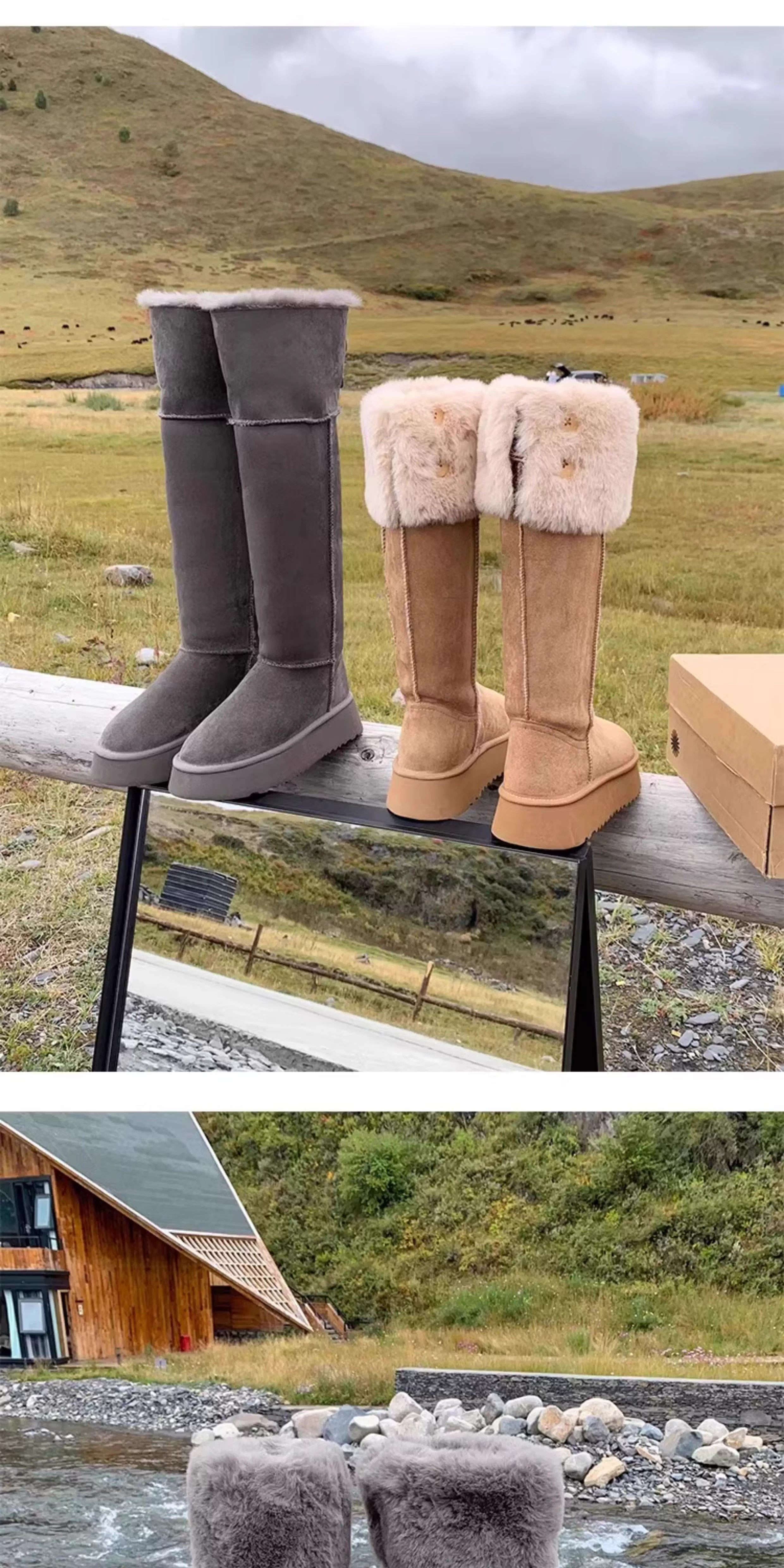 兔毛時尚灰色高筒厚底兩穿雪地靴女2025新款加絨加厚東北保暖棉鞋