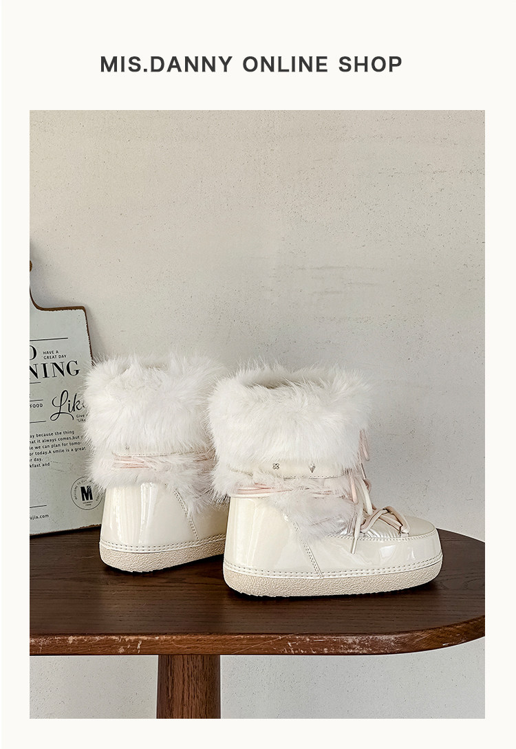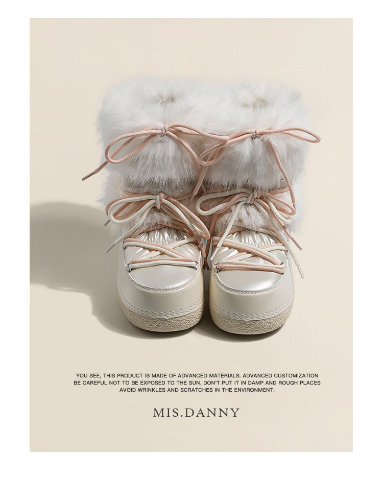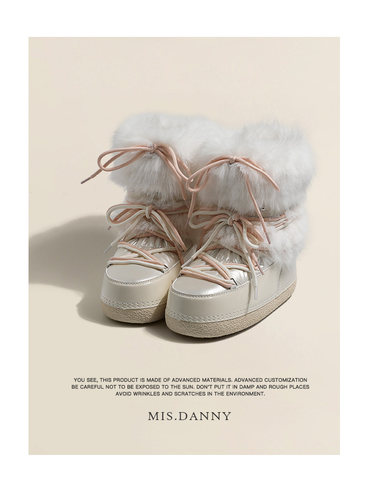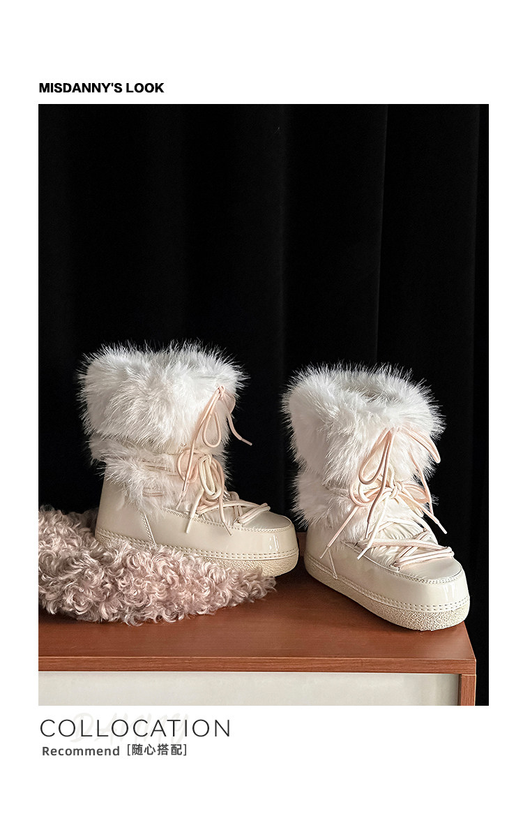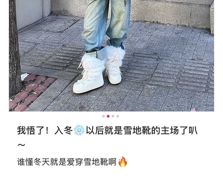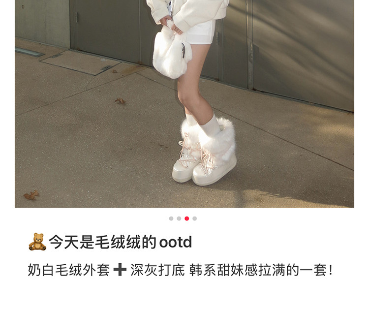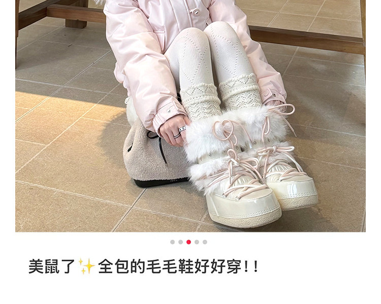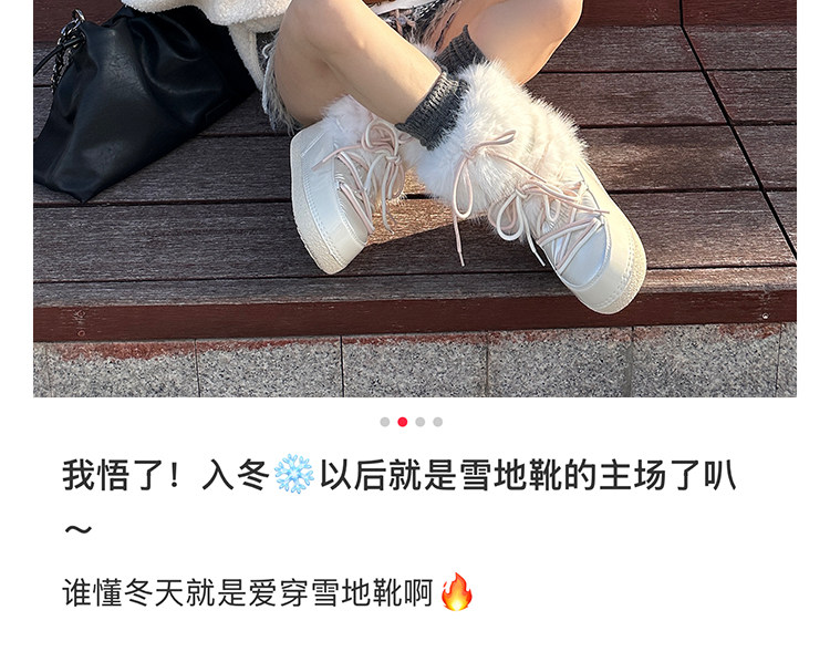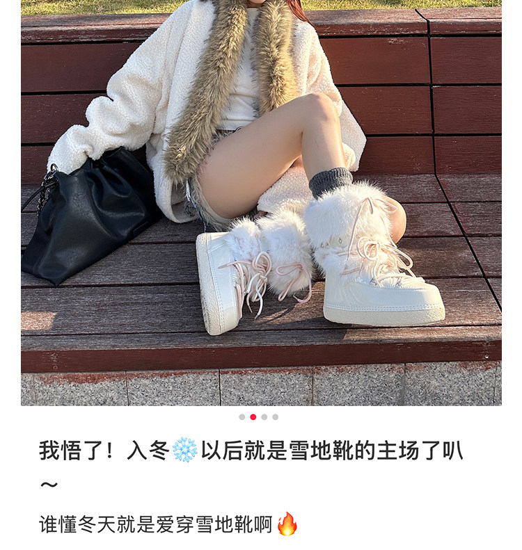 超軟保暖~白色厚底毛毛雪地靴女冬2025新款加絨月亮短靴加厚棉鞋