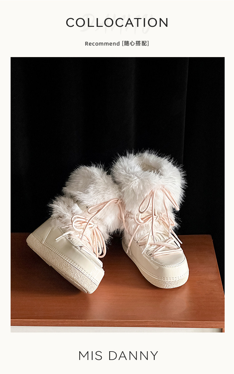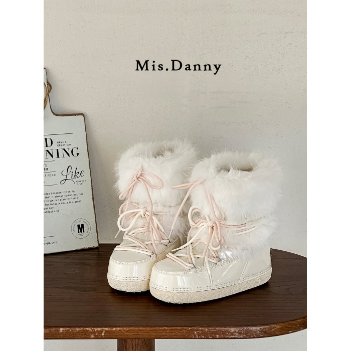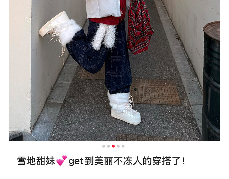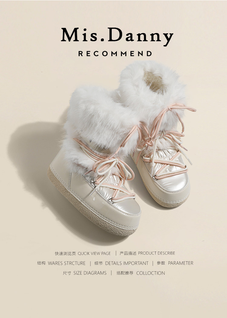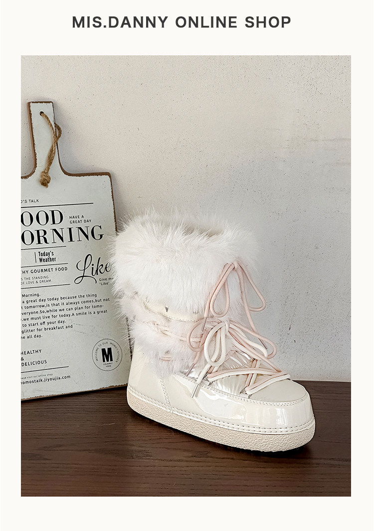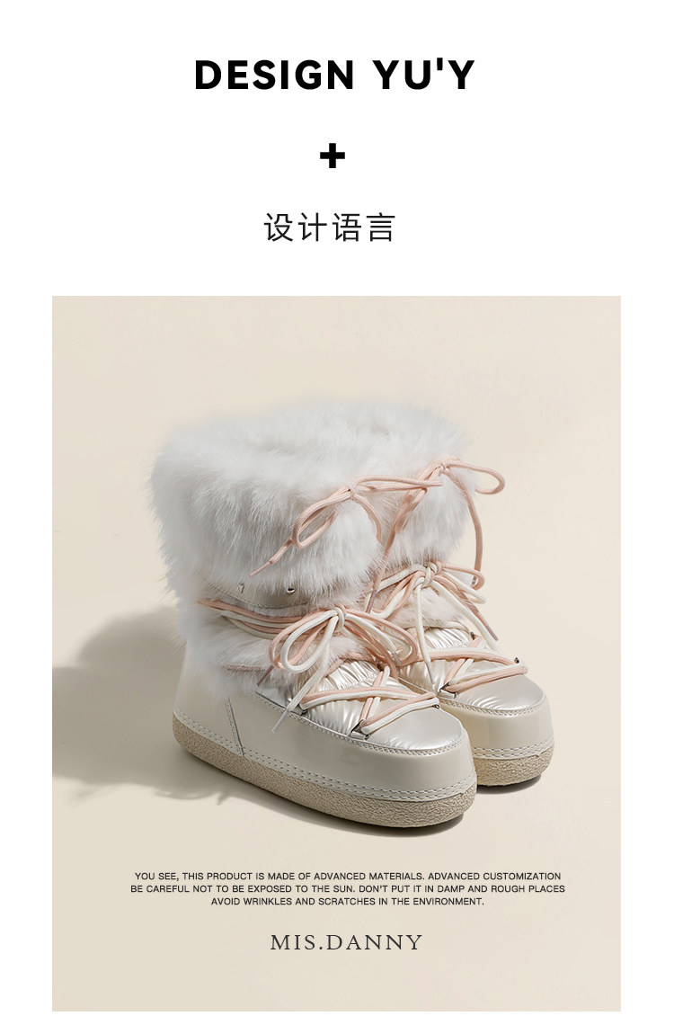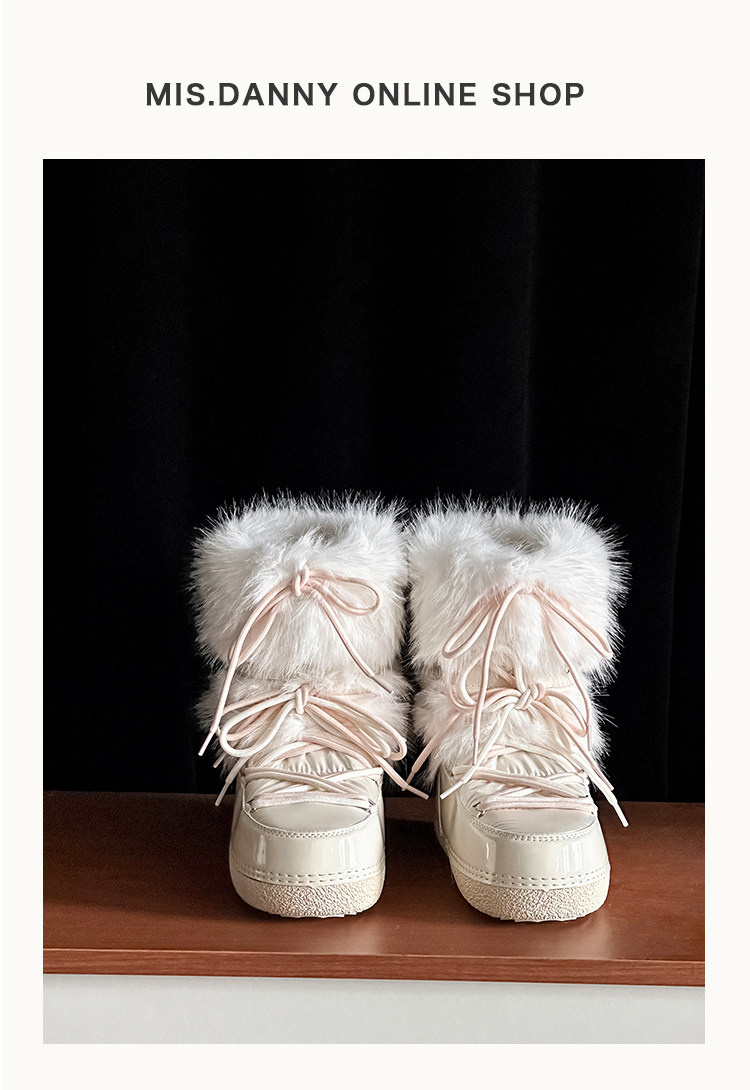 超軟保暖~白色厚底毛毛雪地靴女冬2025新款加絨月亮短靴加厚棉鞋