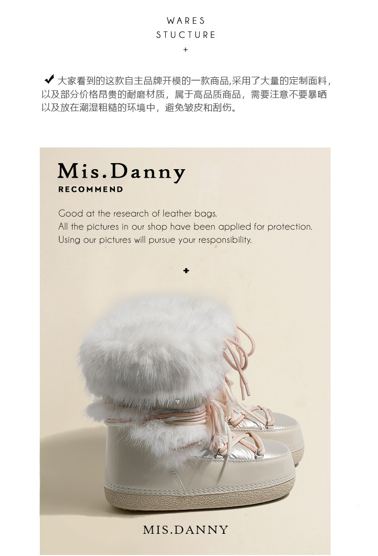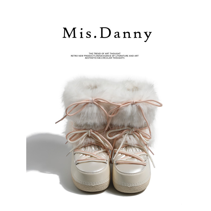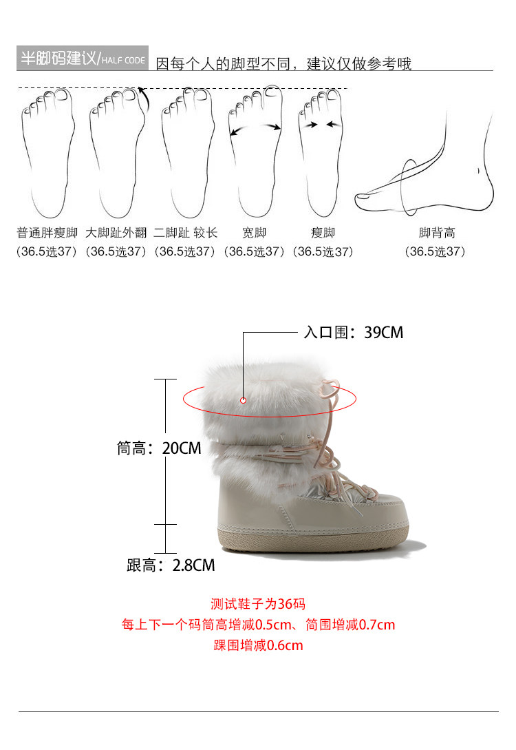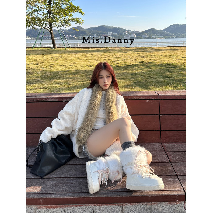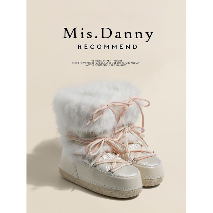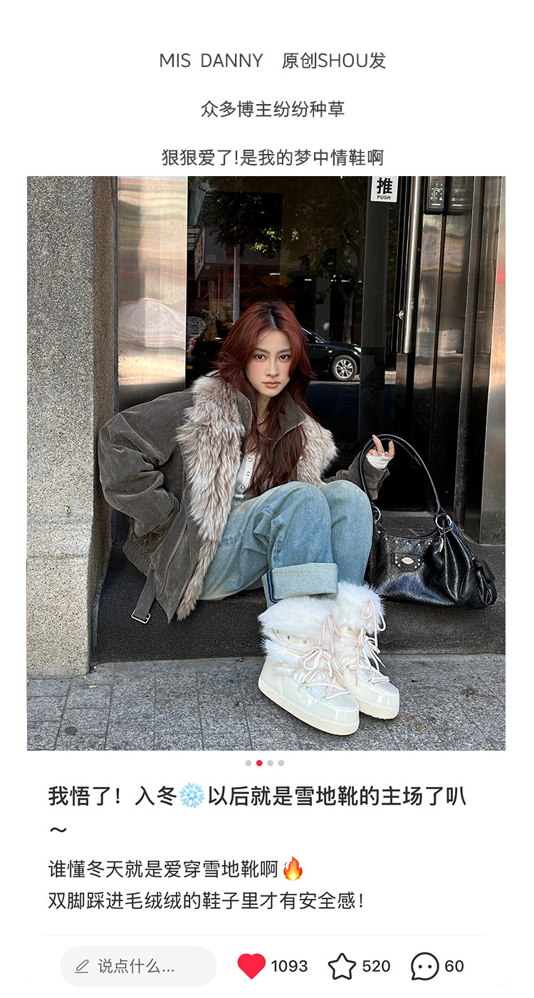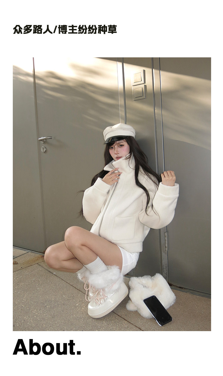 超軟保暖~白色厚底毛毛雪地靴女冬2025新款加絨月亮短靴加厚棉鞋
