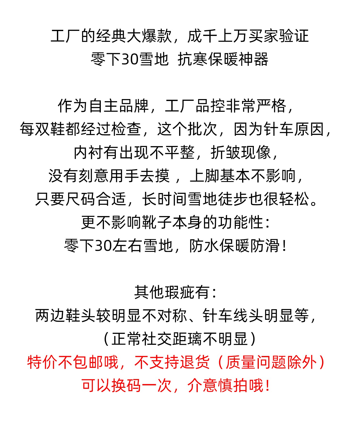 特 no退換 零下30抗寒保暖戶外雪地靴女防水防滑長白山哈爾濱東北