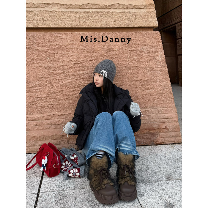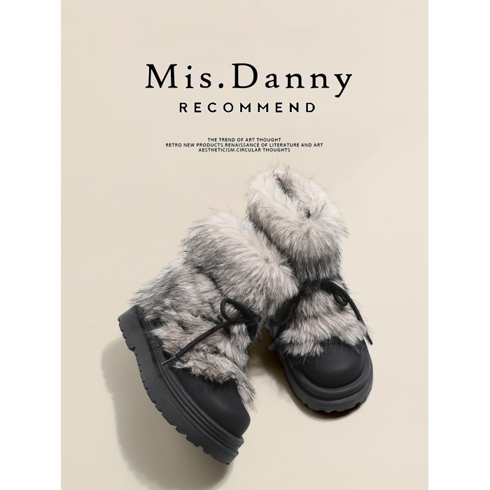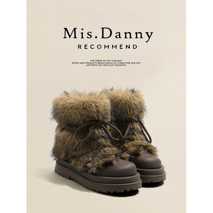 Misdanny與愛私奔防滑毛毛雪地靴女2025冬加厚絨棉鞋大頭厚底短靴