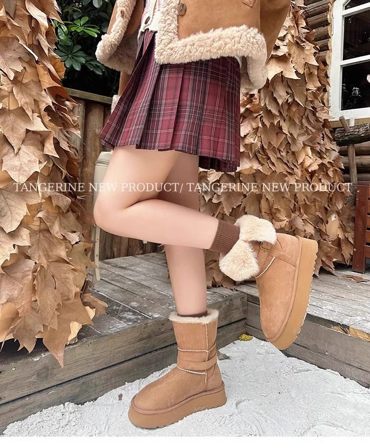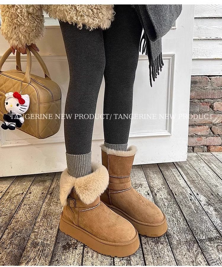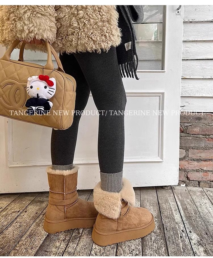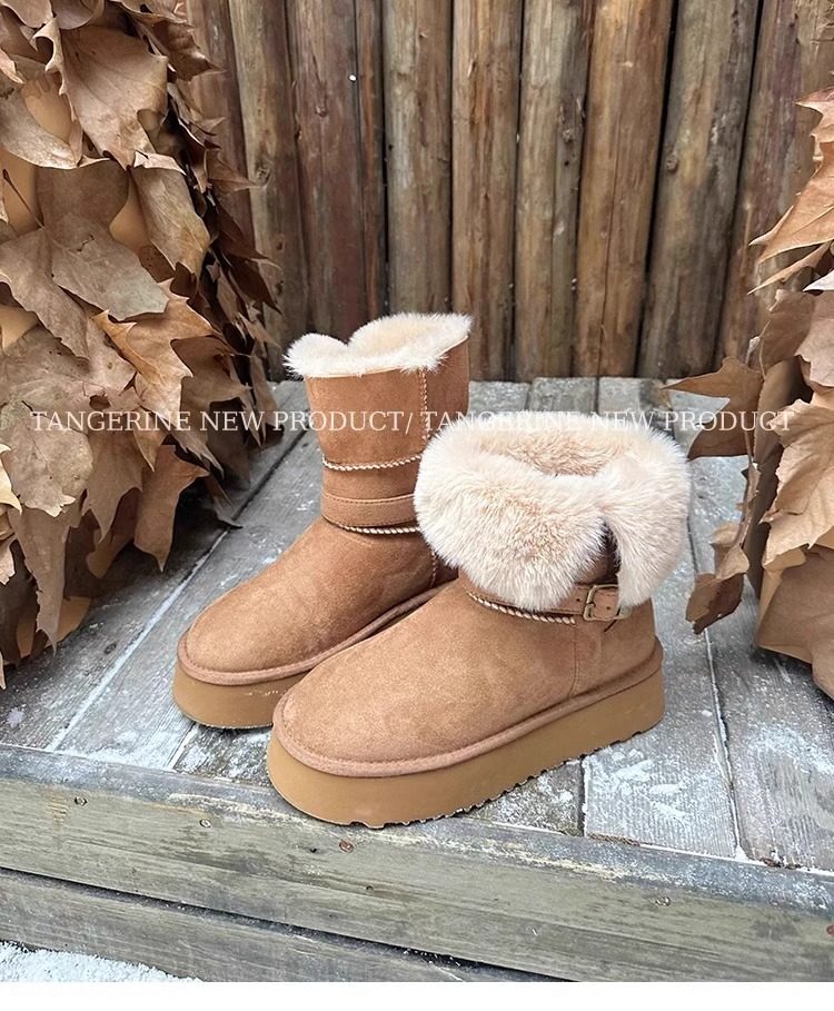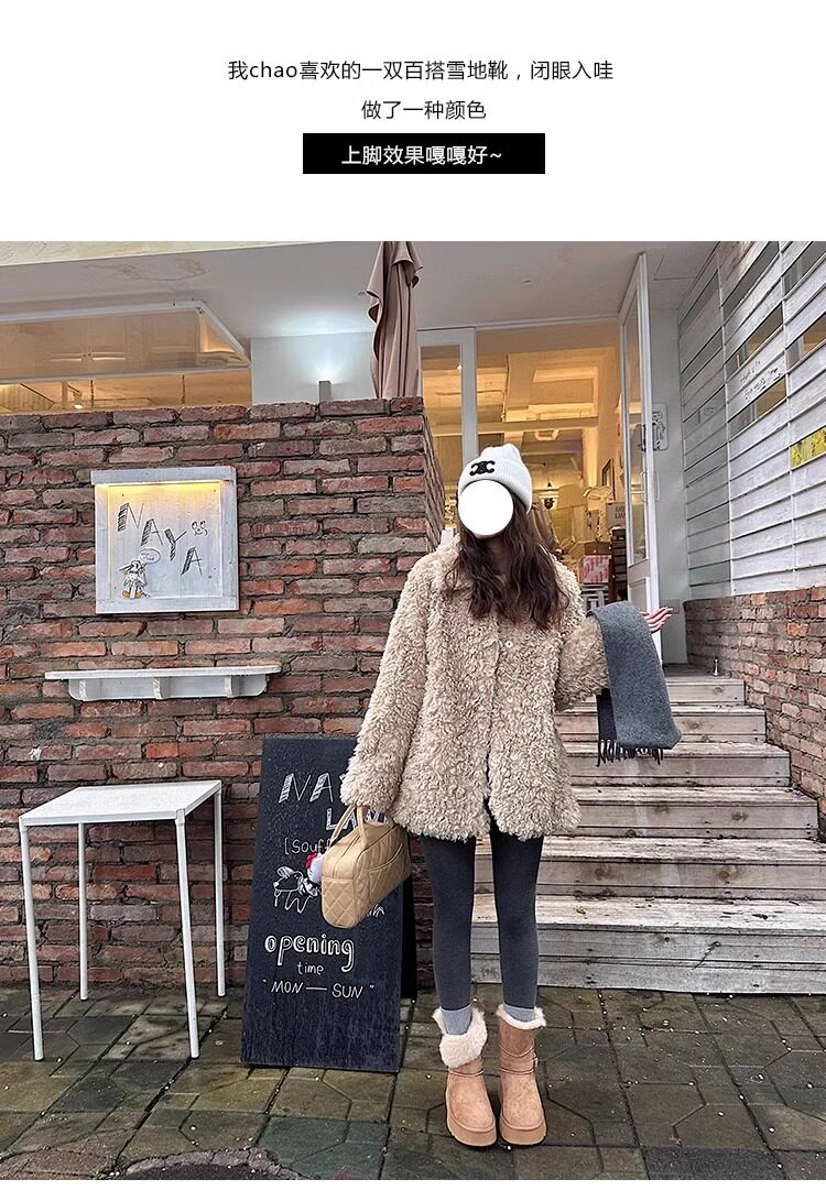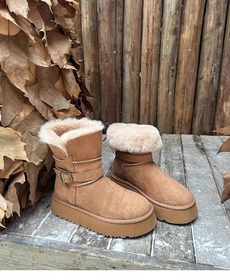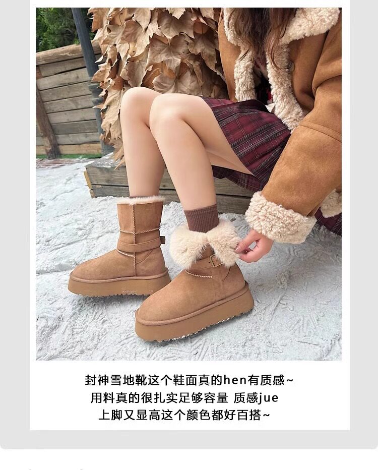 皮毛一體厚底中筒雪地靴女2026新款冬季兩穿加絨加厚東北雪地棉鞋