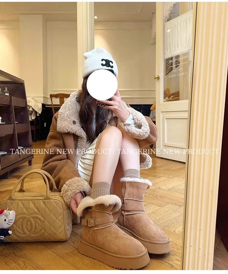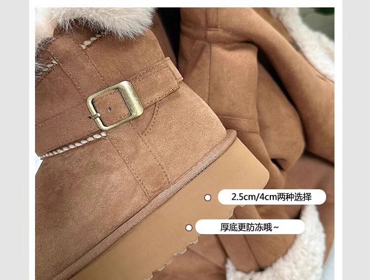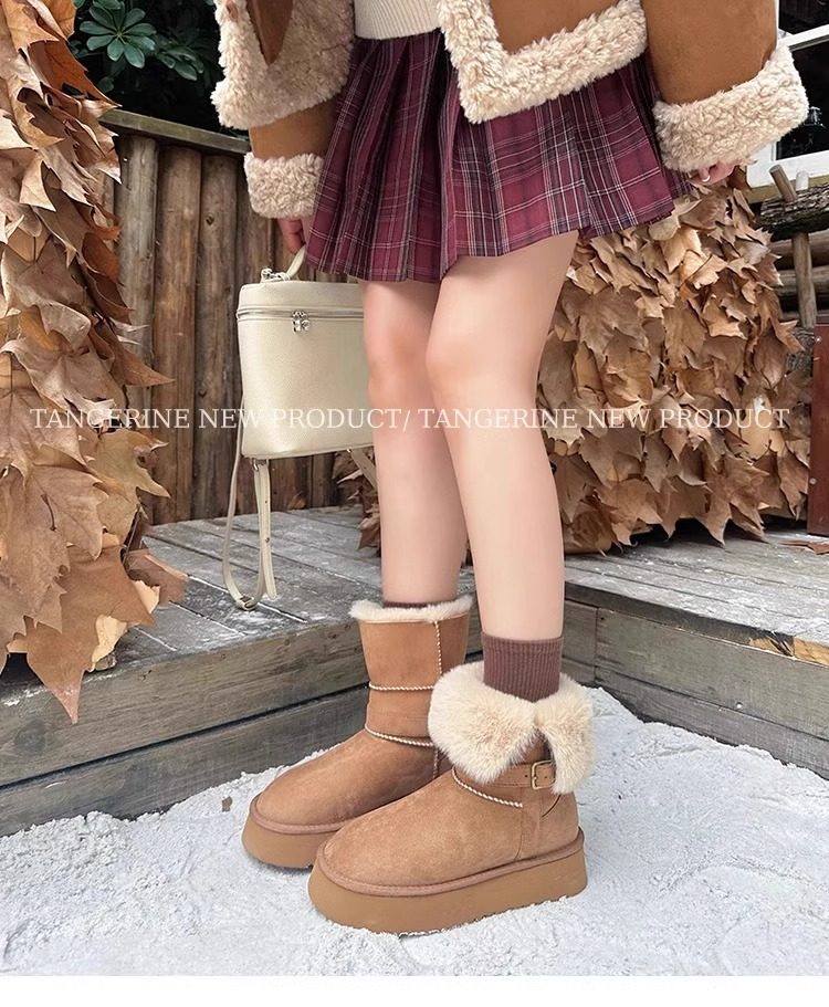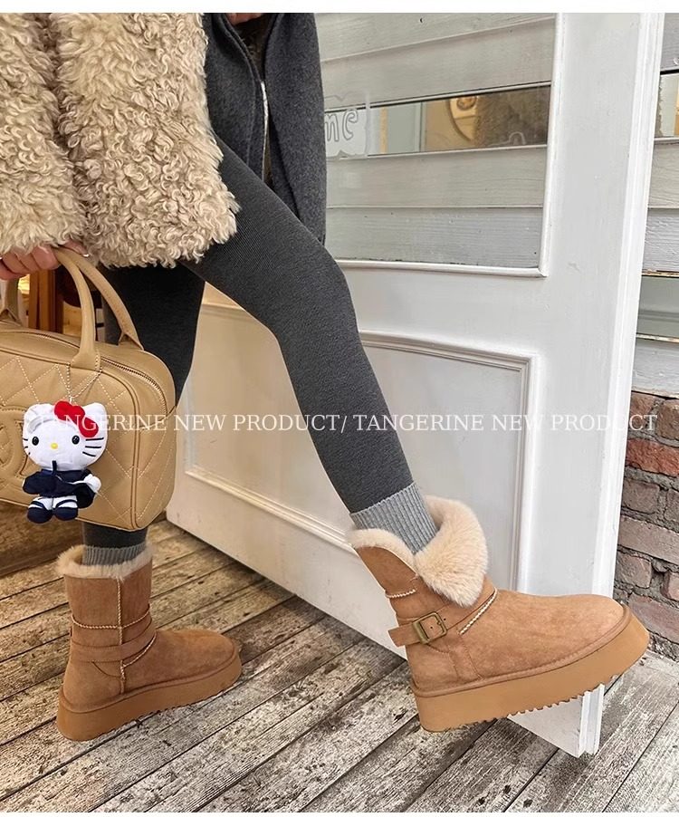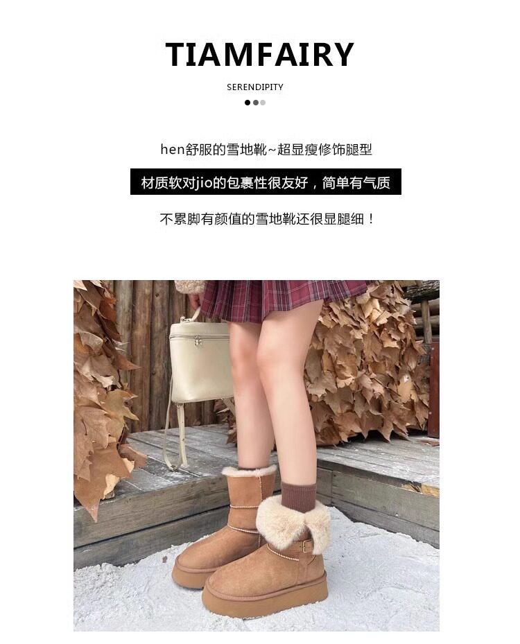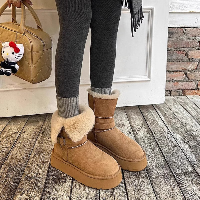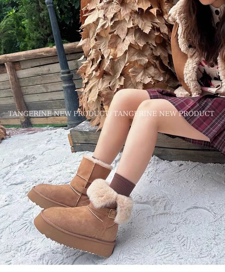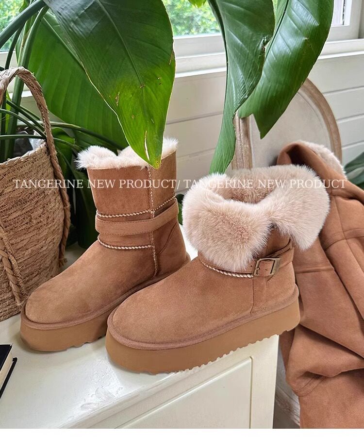 皮毛一體厚底中筒雪地靴女2026新款冬季兩穿加絨加厚東北雪地棉鞋