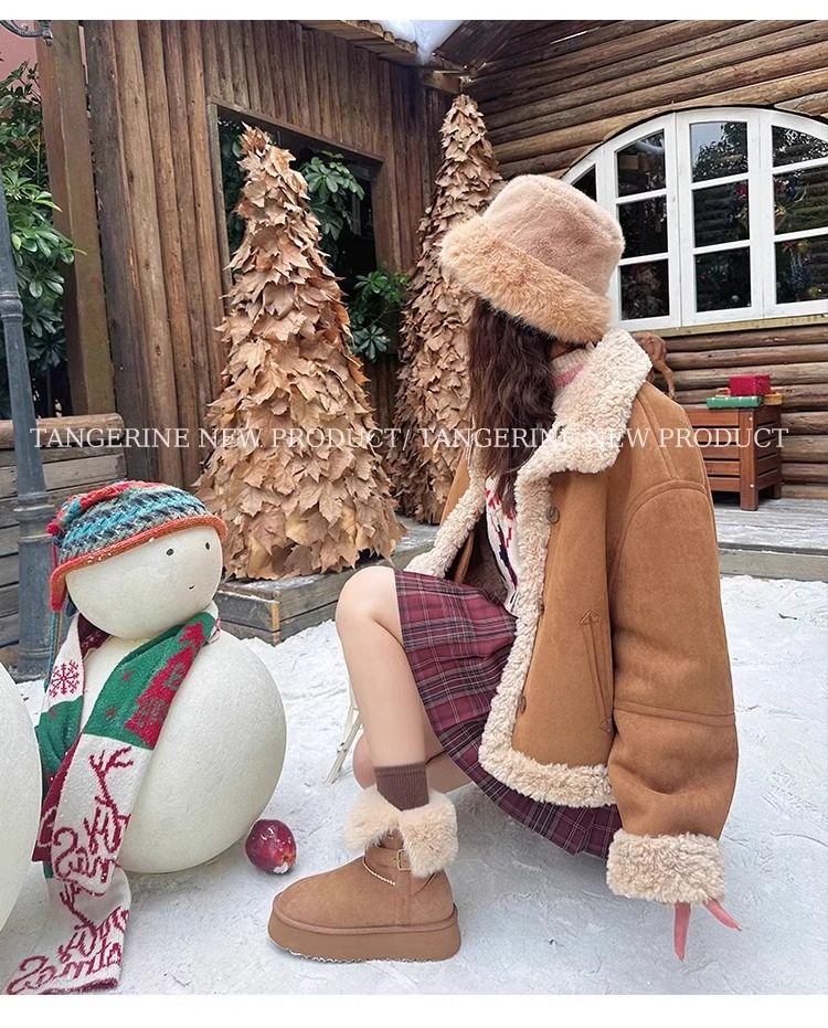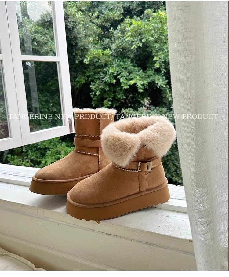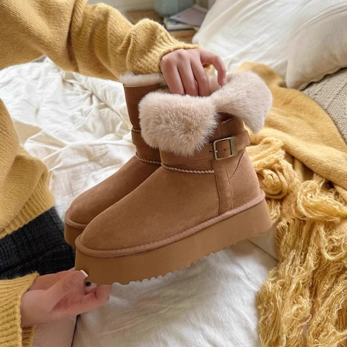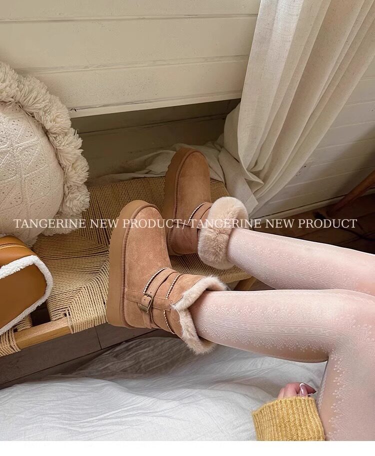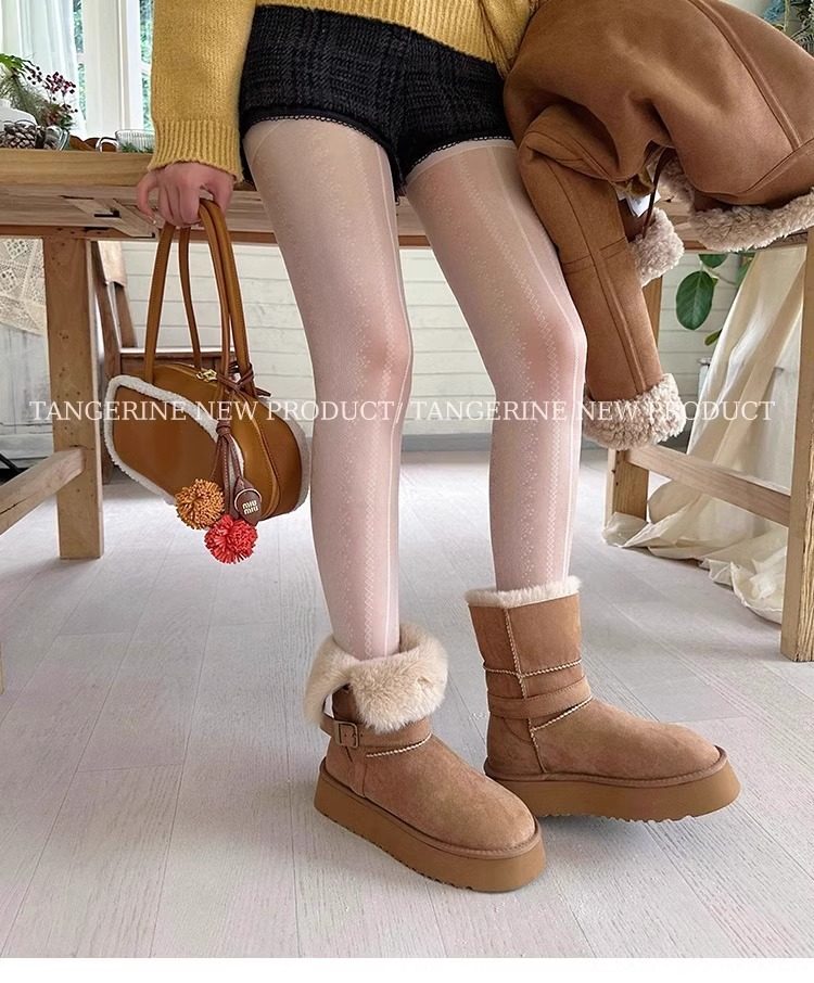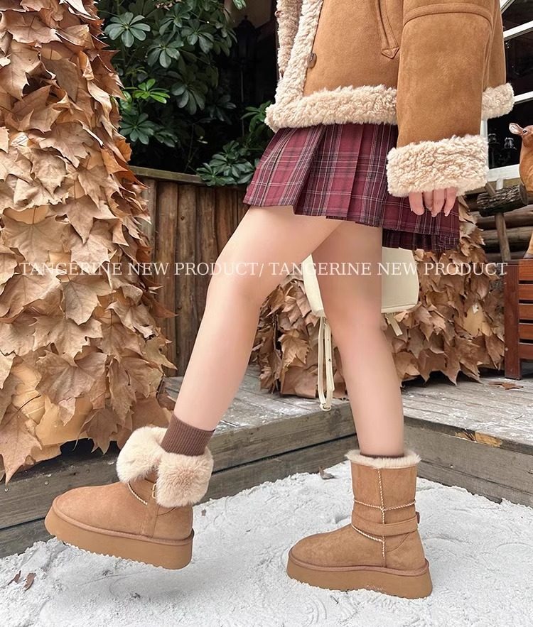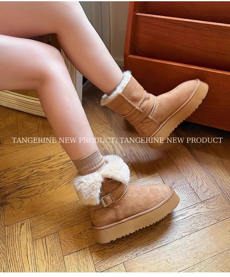皮毛一體厚底中筒雪地靴女2026新款冬季兩穿加絨加厚東北雪地棉鞋