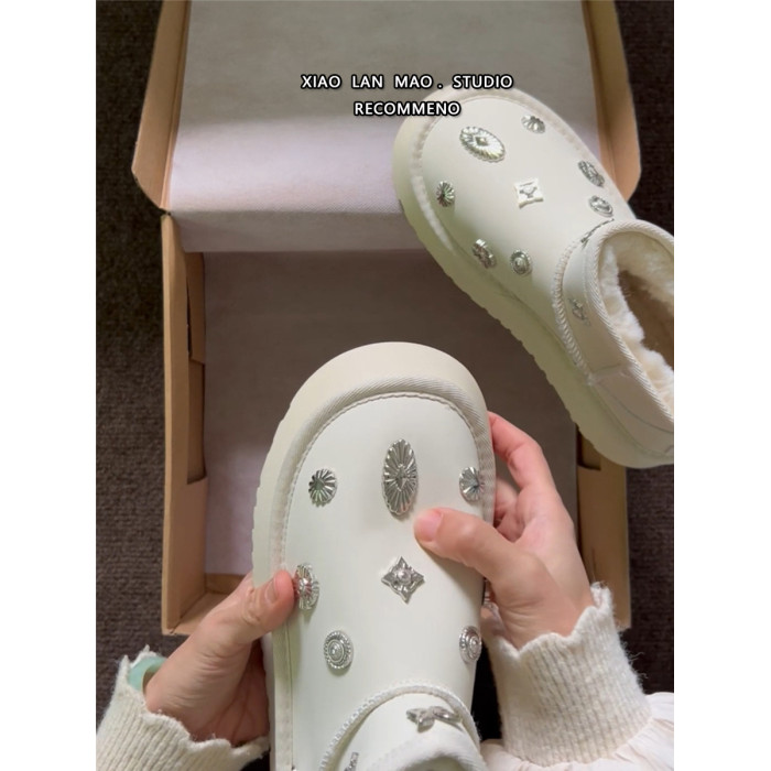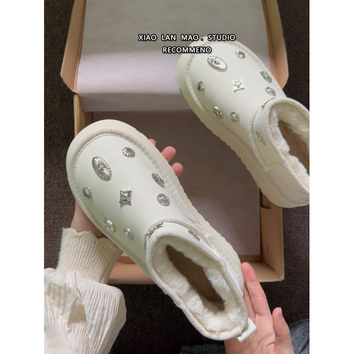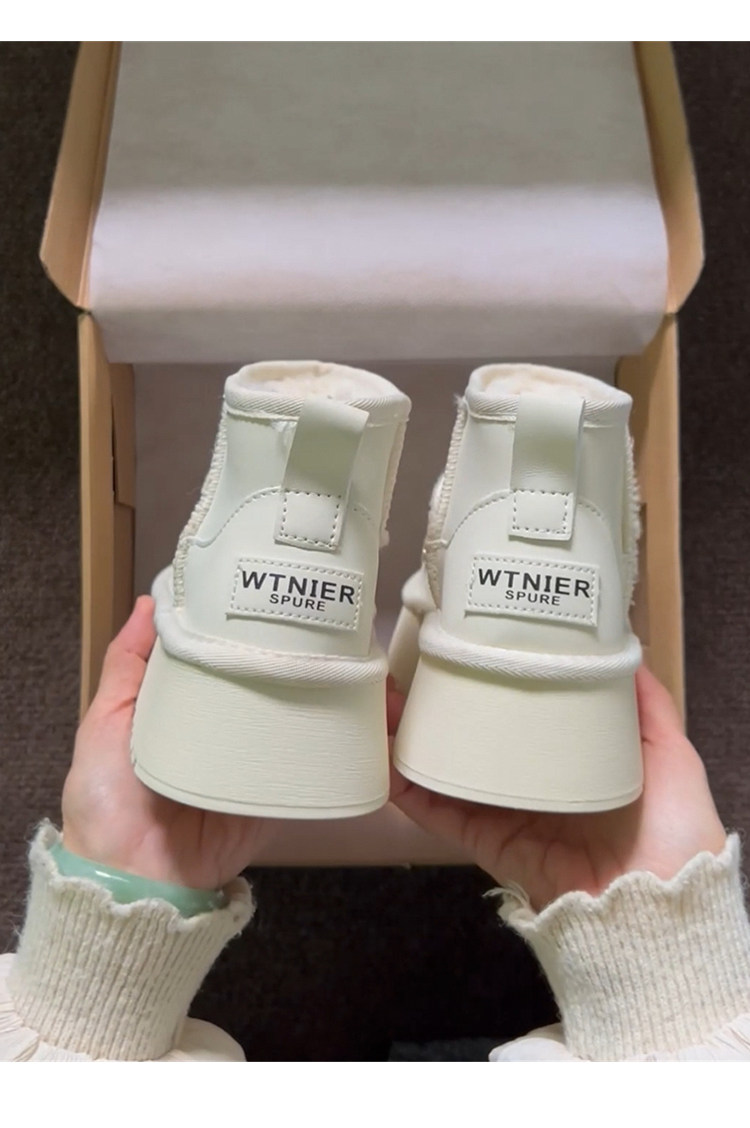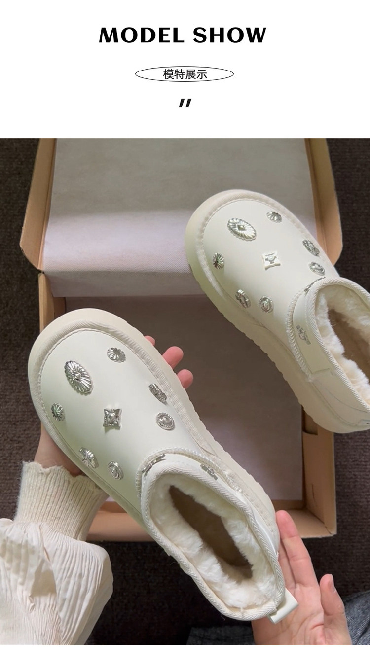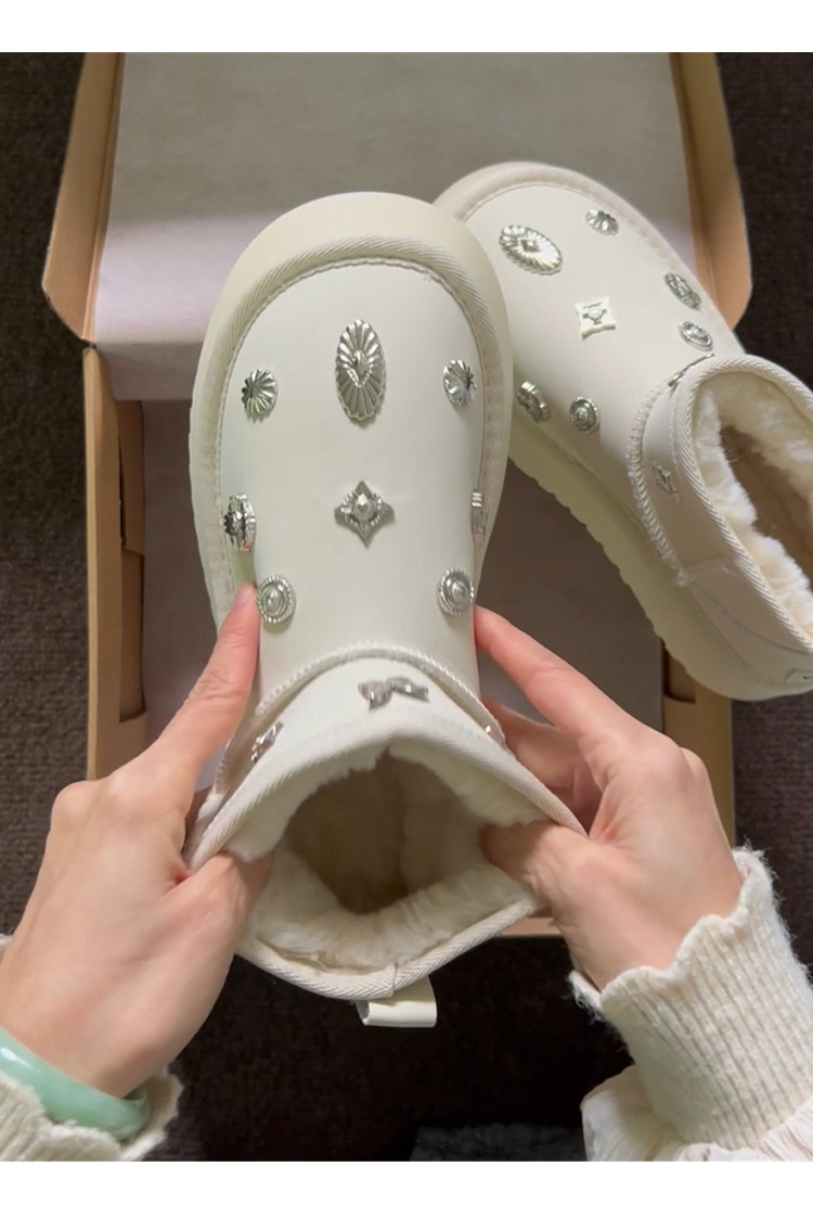 白色水鑽厚底百搭增高雪地靴女2025冬季新款加絨加厚保暖短筒棉鞋
