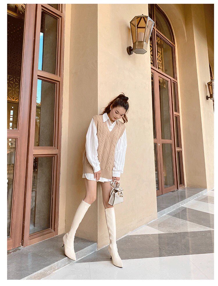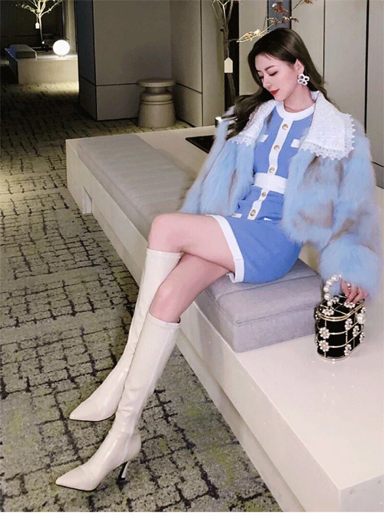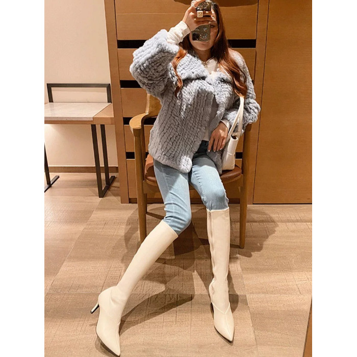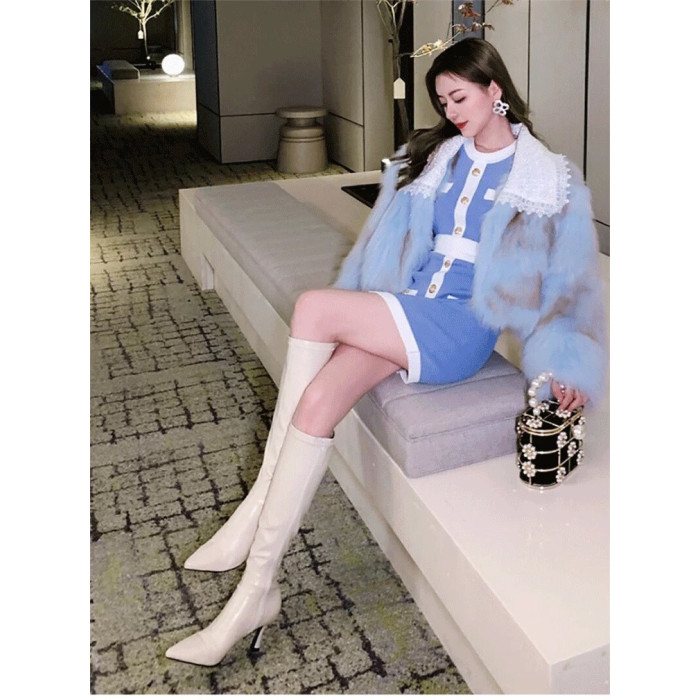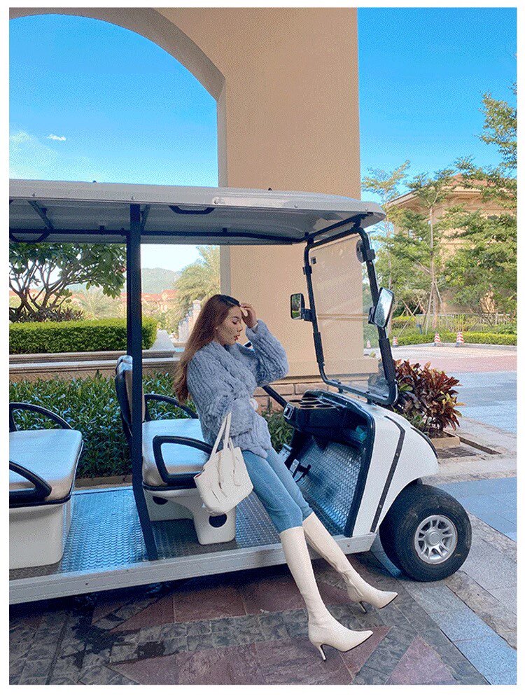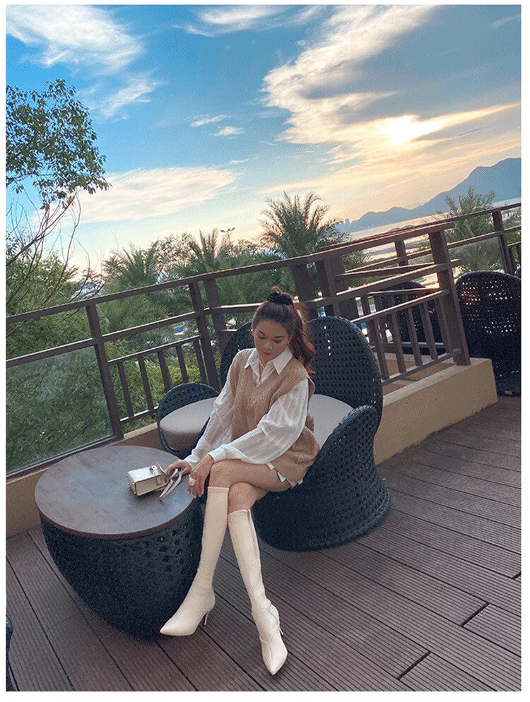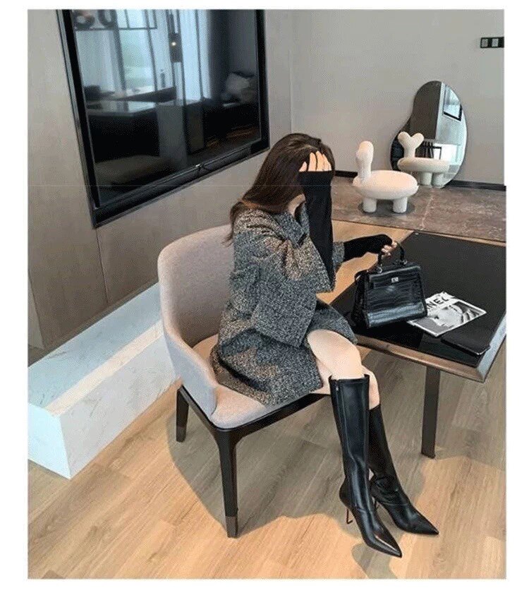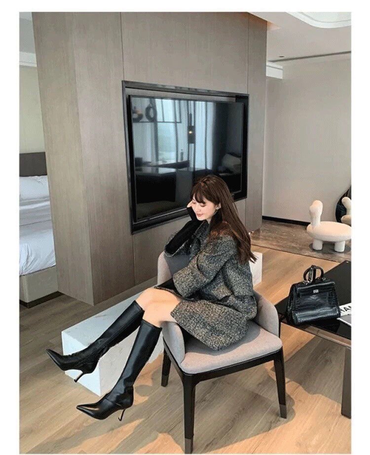 泫雅同款白色長靴女2025秋冬新款高跟瘦瘦靴百搭性感側拉鍊彈力靴
