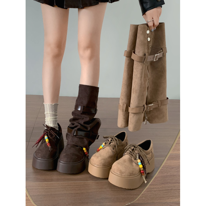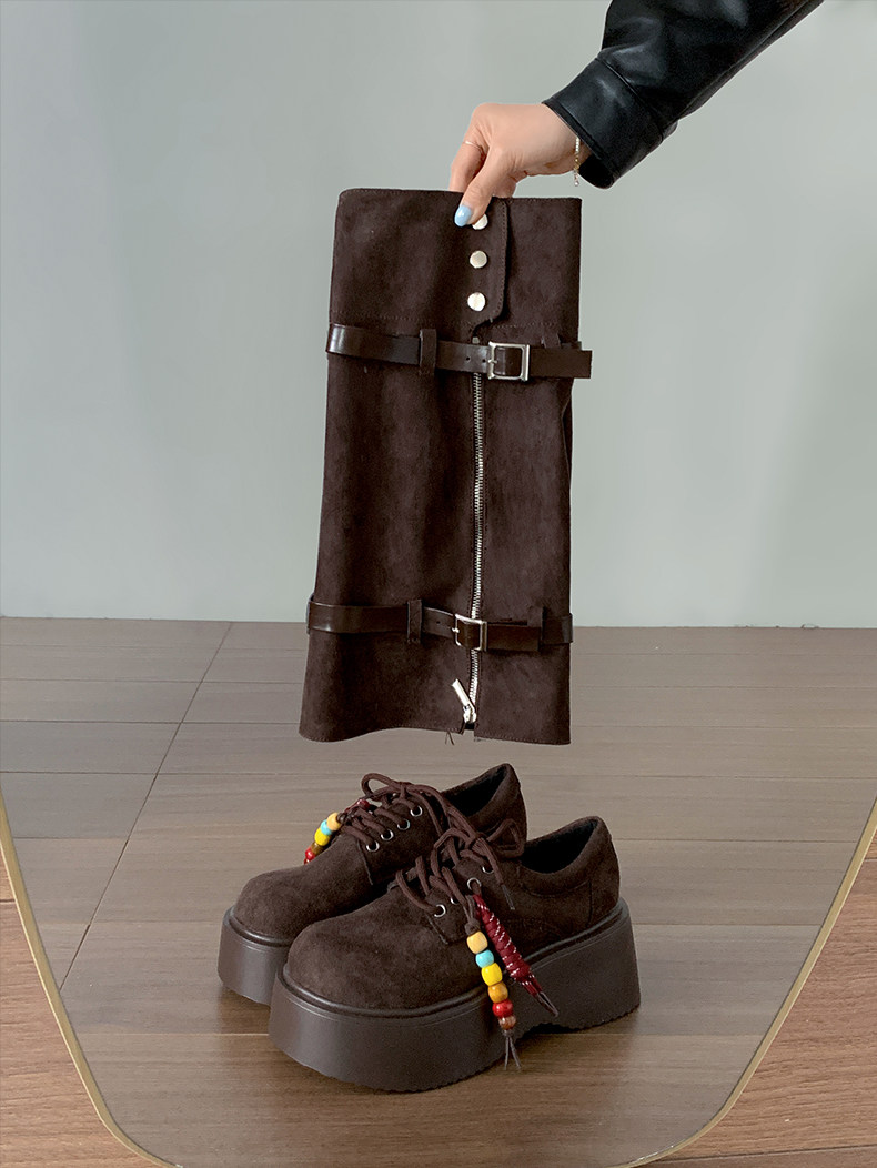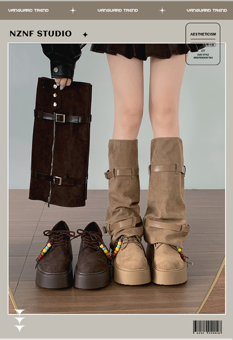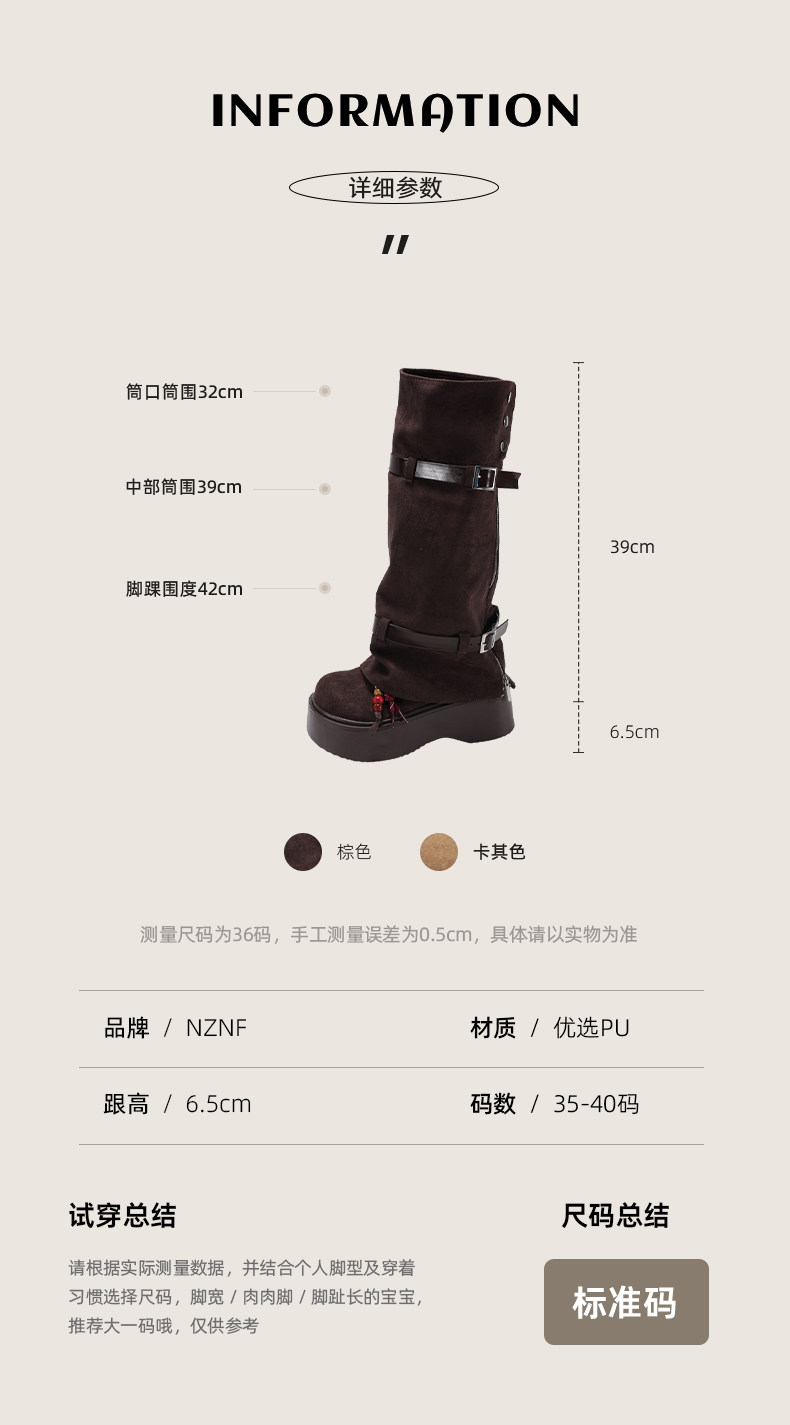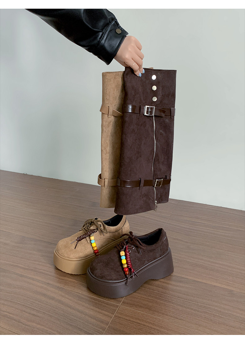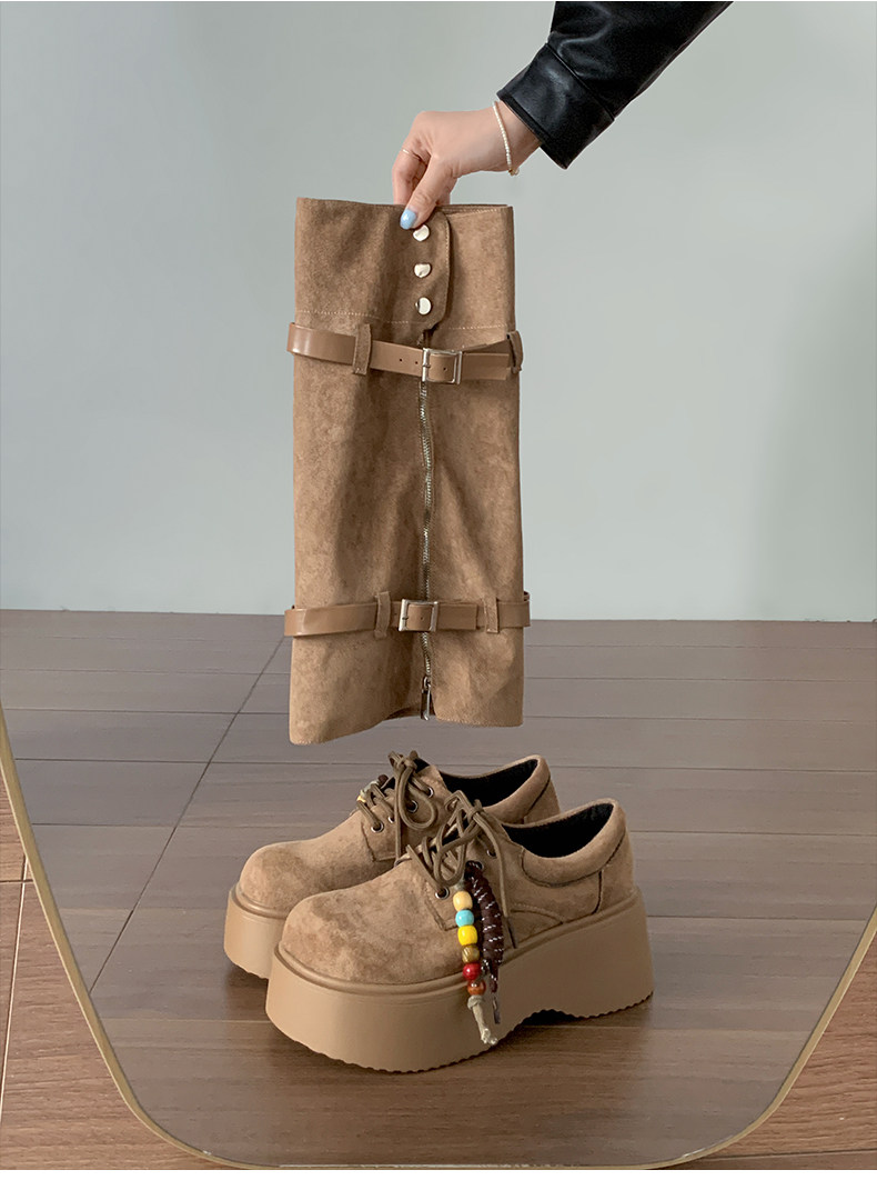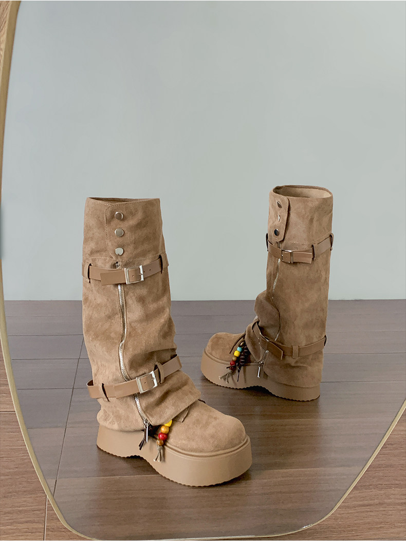 美拉德棕色復古厚底增高靴子女2025新款秋冬配裙子兩穿褲琯中筒靴
