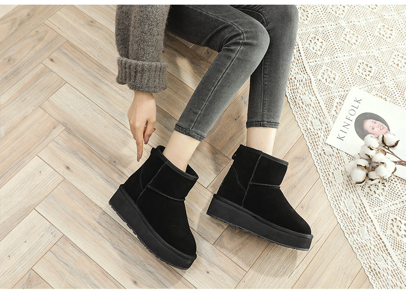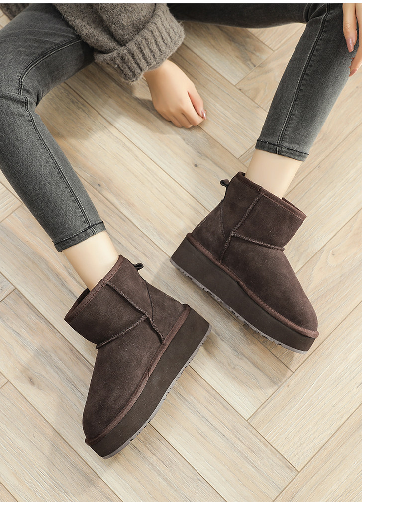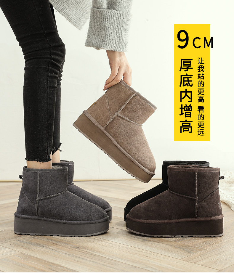 松糕厚底雪地靴女短靴2024洋氣短款內增高棉鞋冬保暖特厚加絨靴子