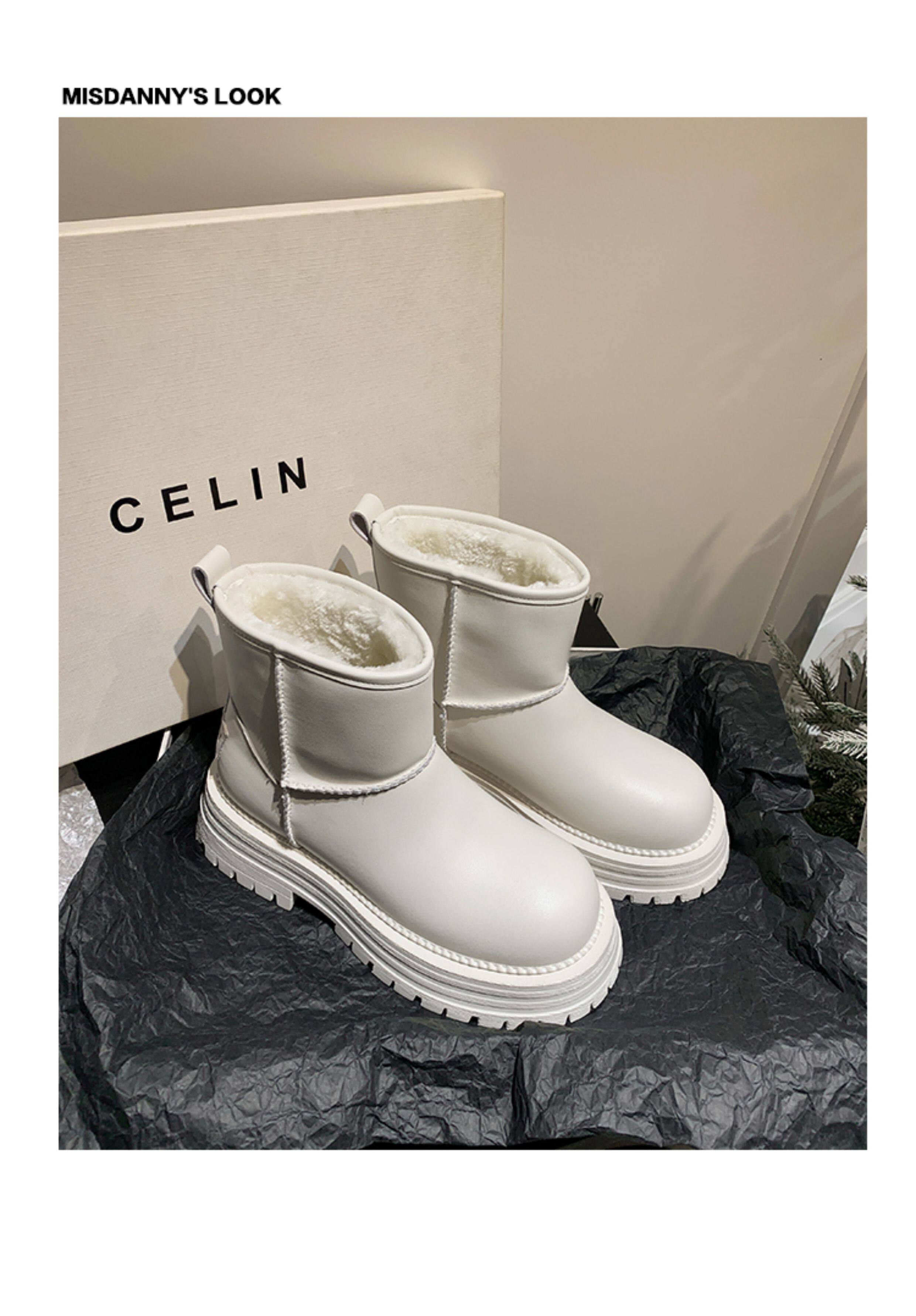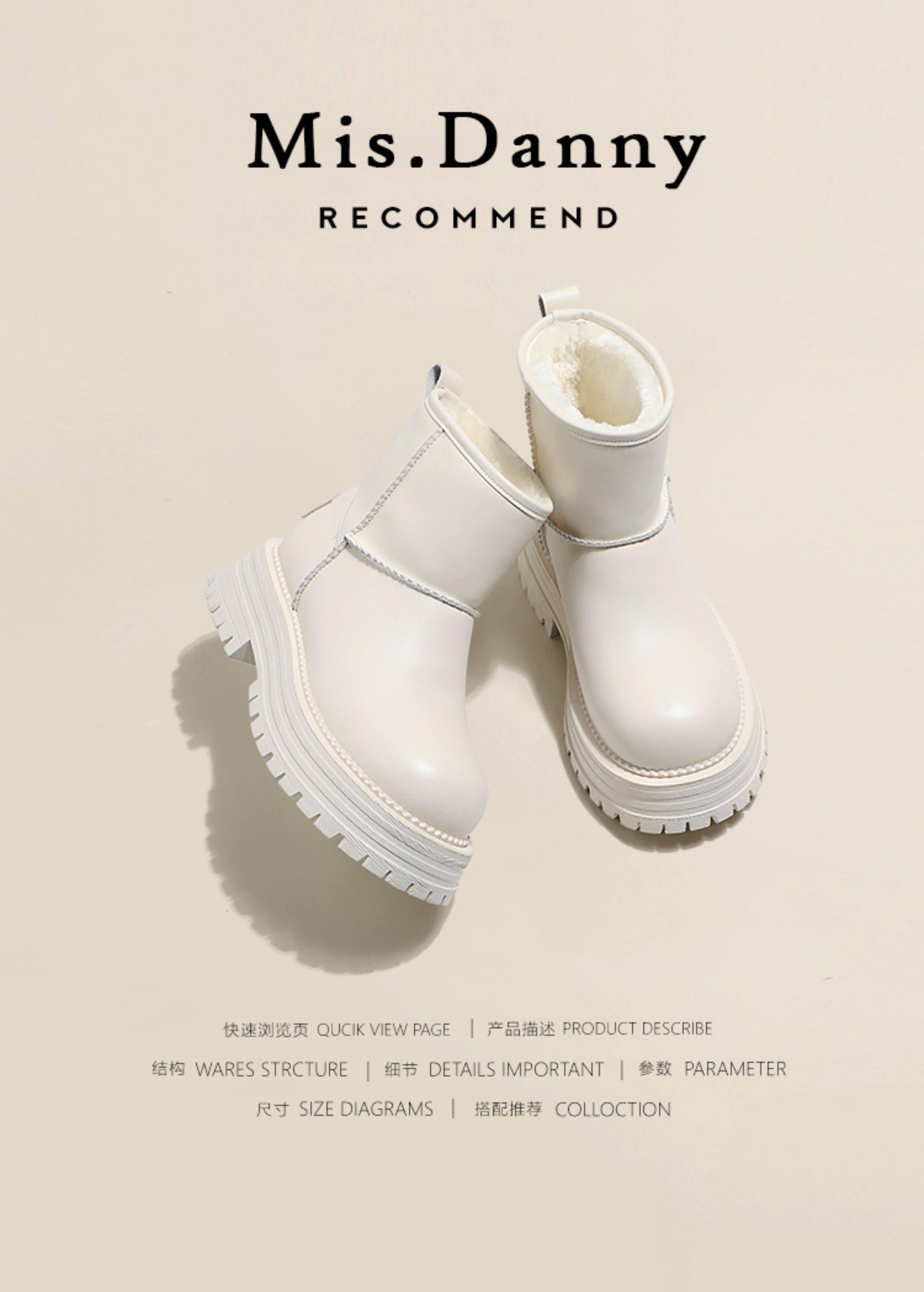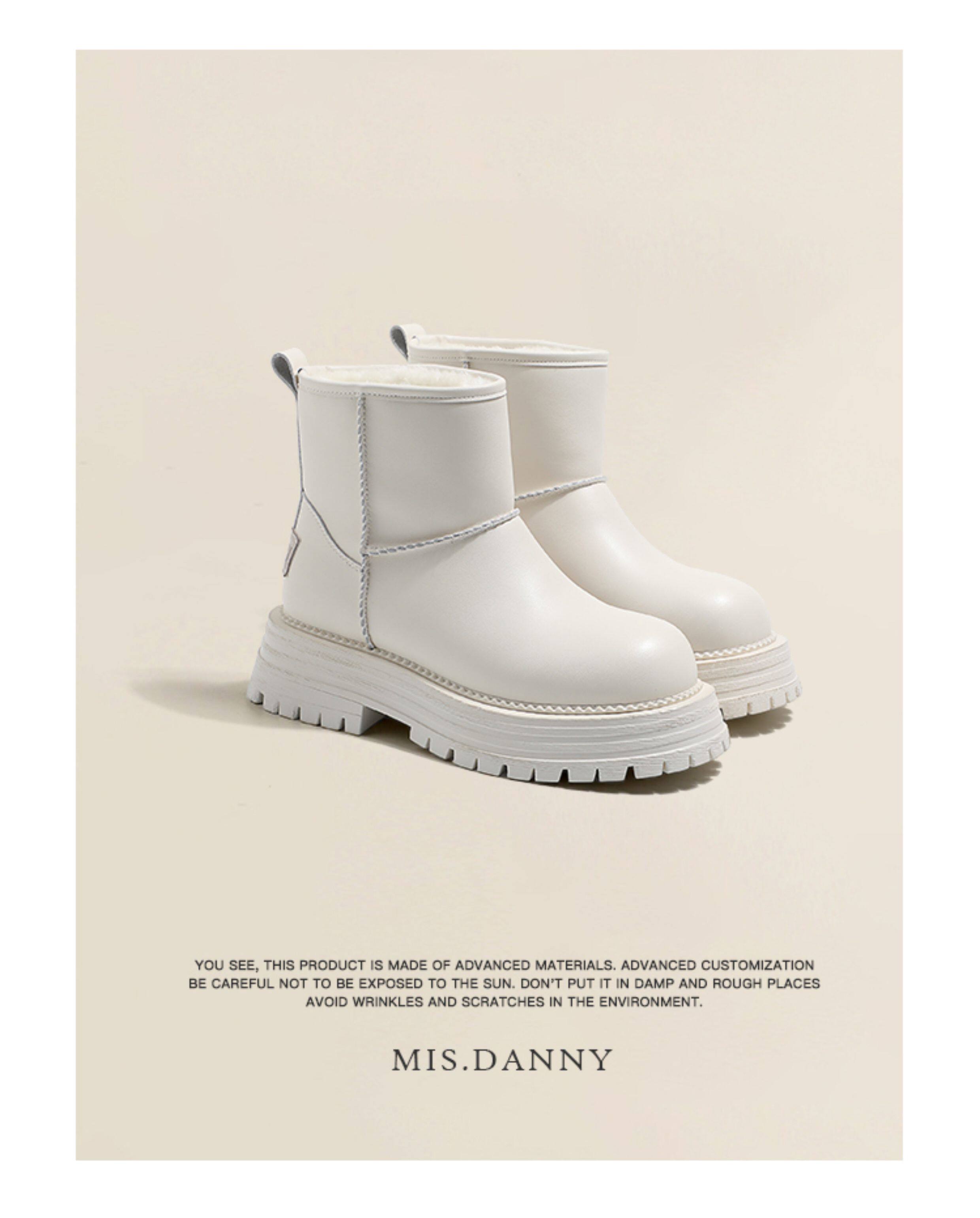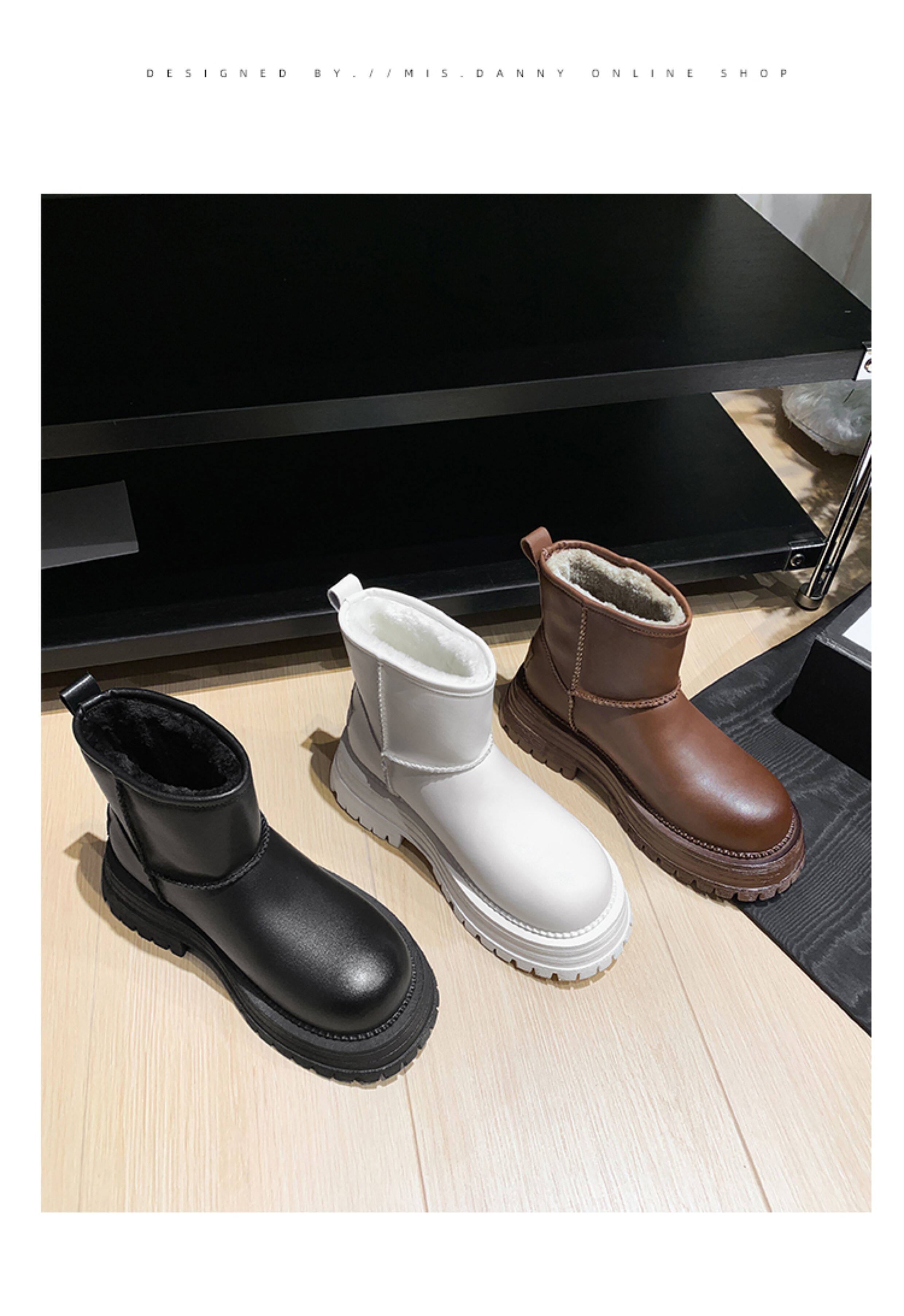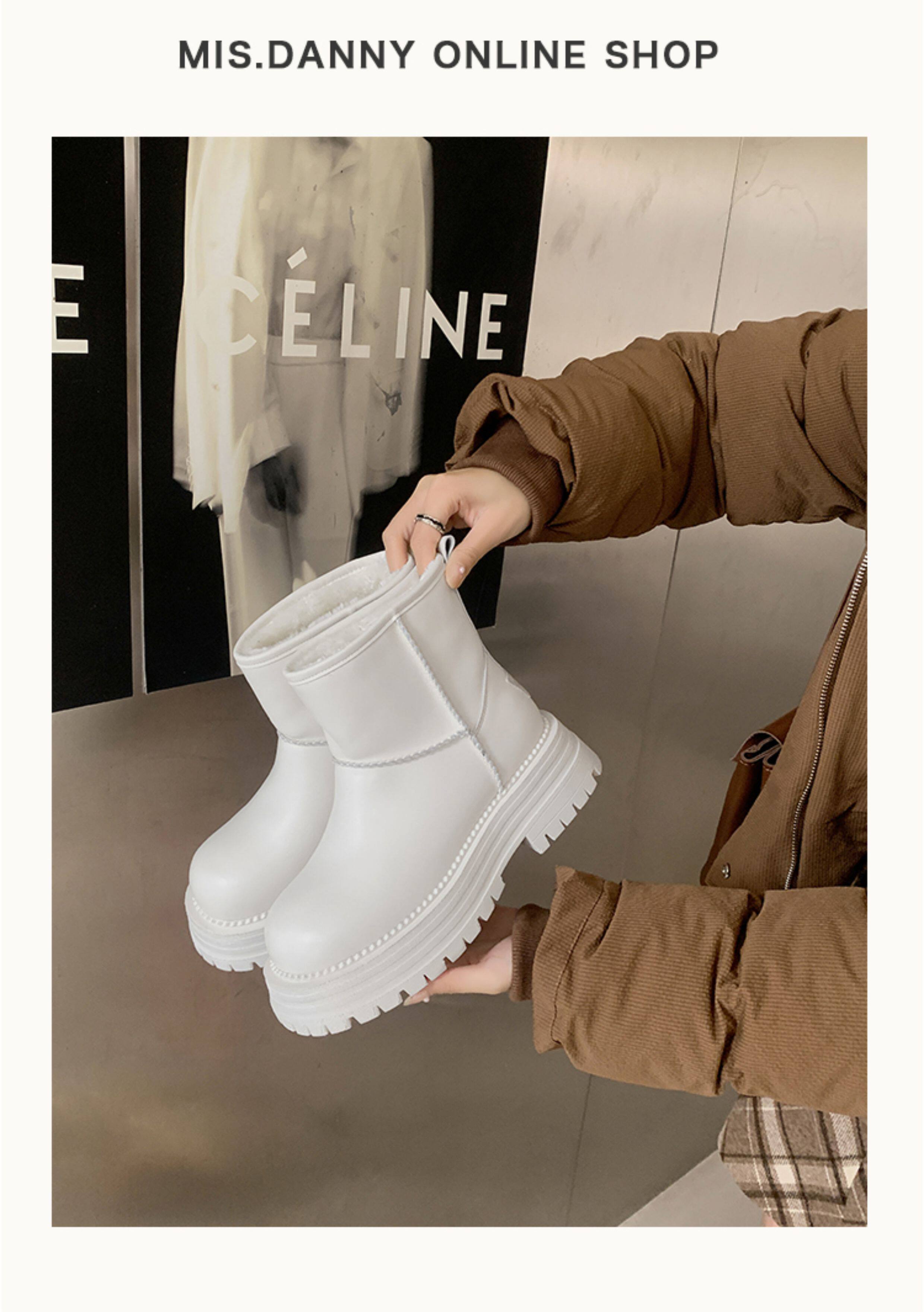 防水防滑厚底時尚保暖雪地靴女2025新款白色短靴加絨加厚大棉鞋冬