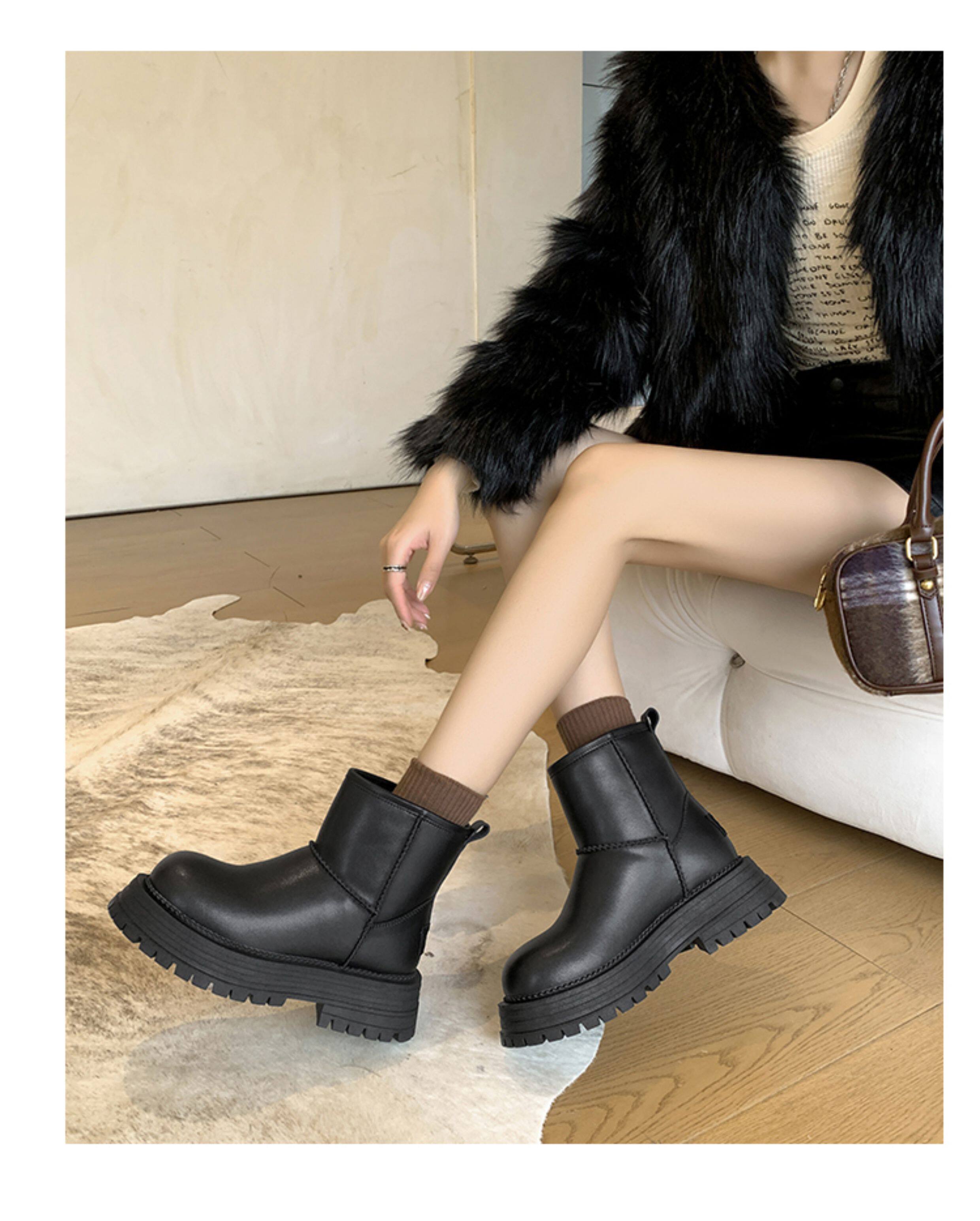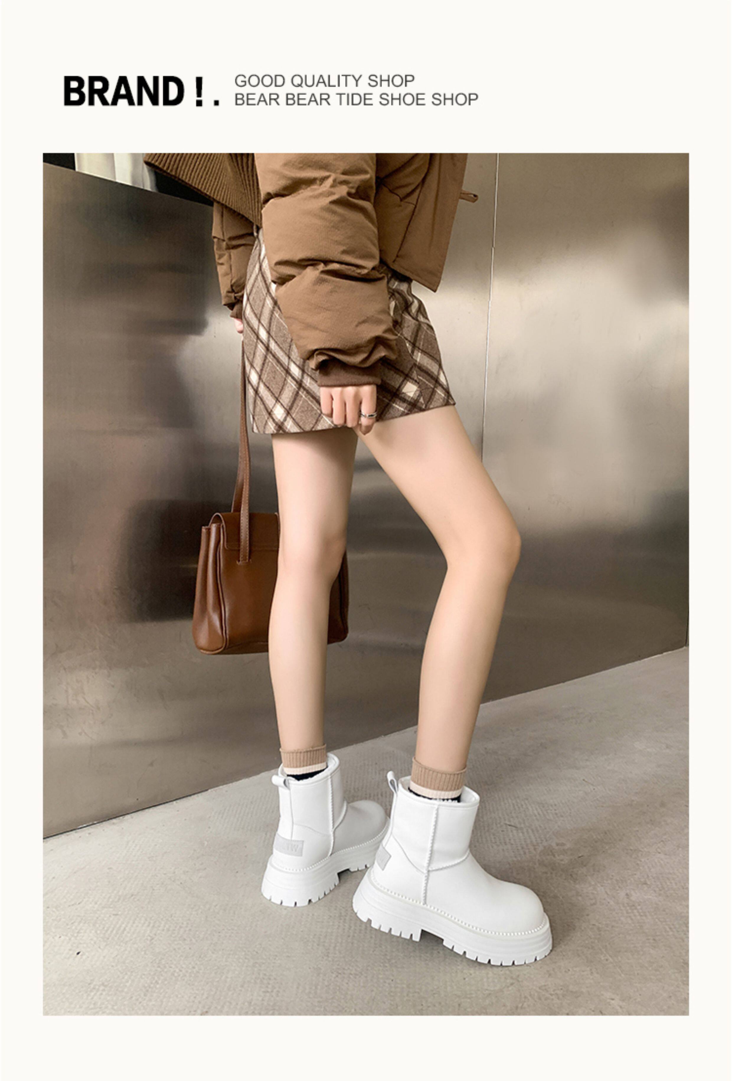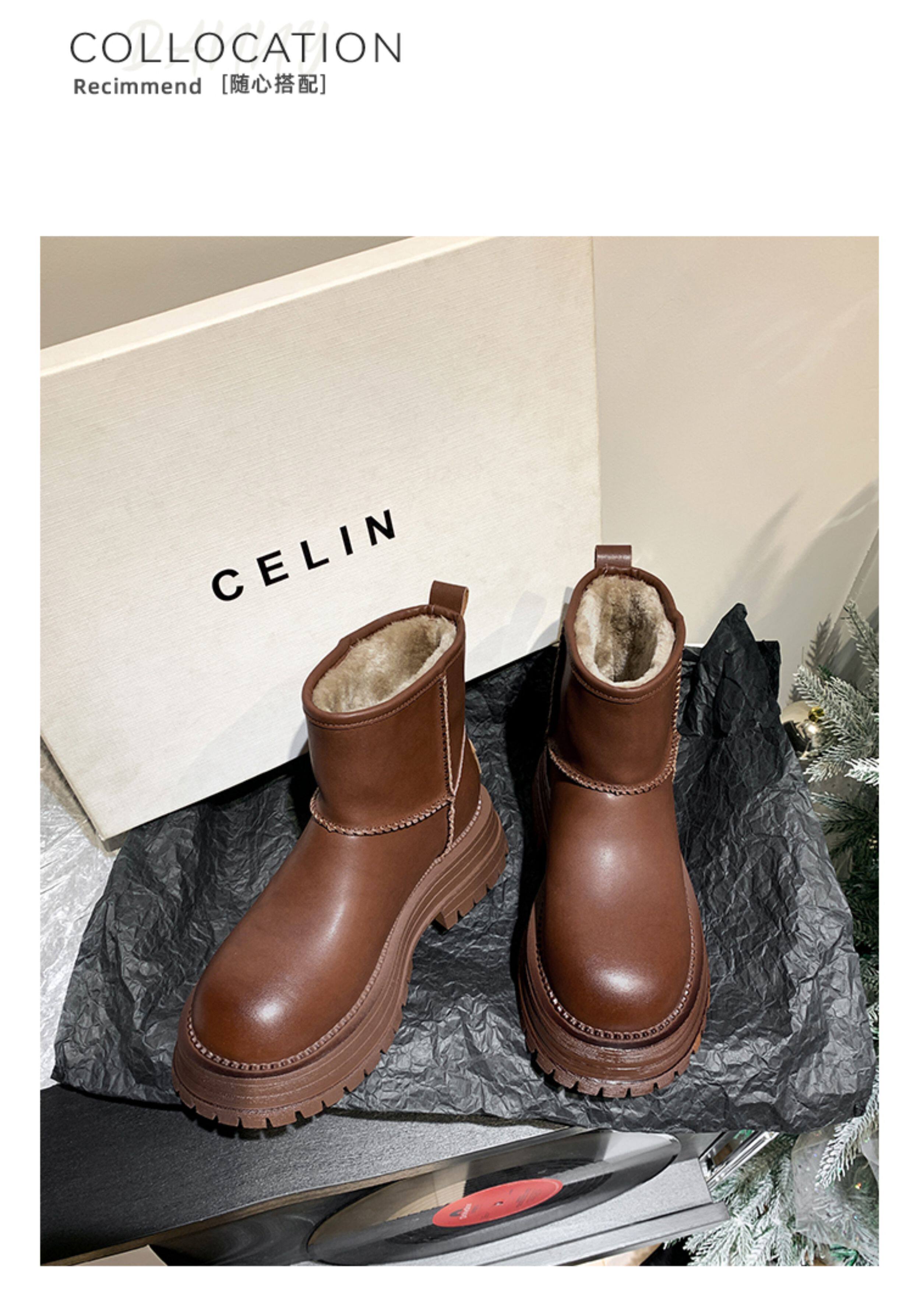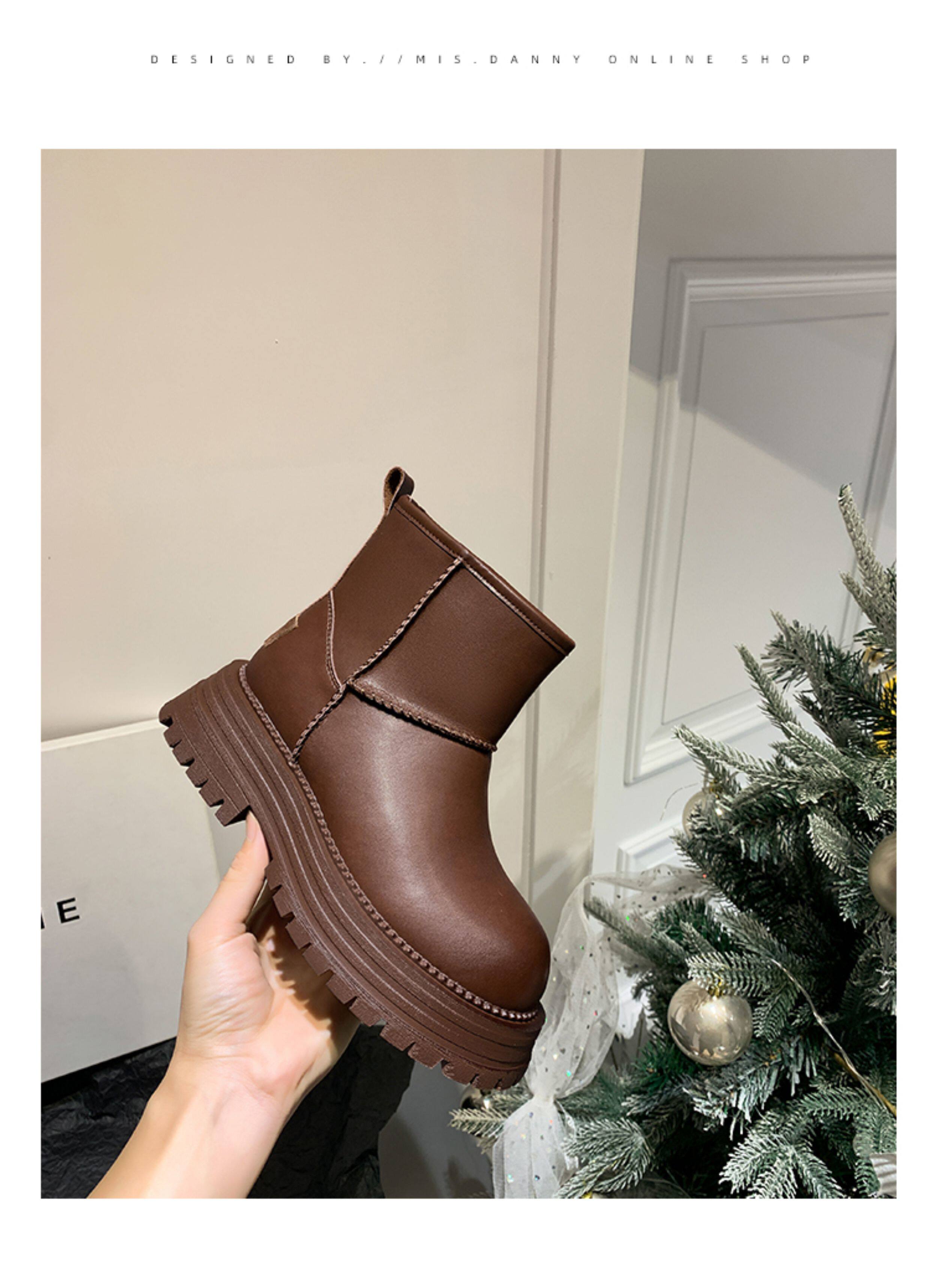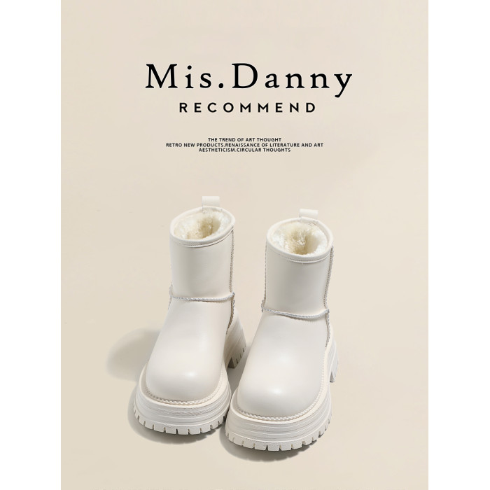 防水防滑厚底時尚保暖雪地靴女2025新款白色短靴加絨加厚大棉鞋冬