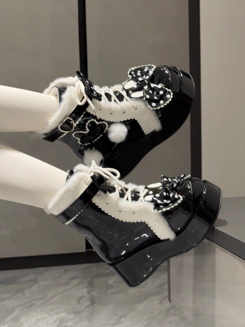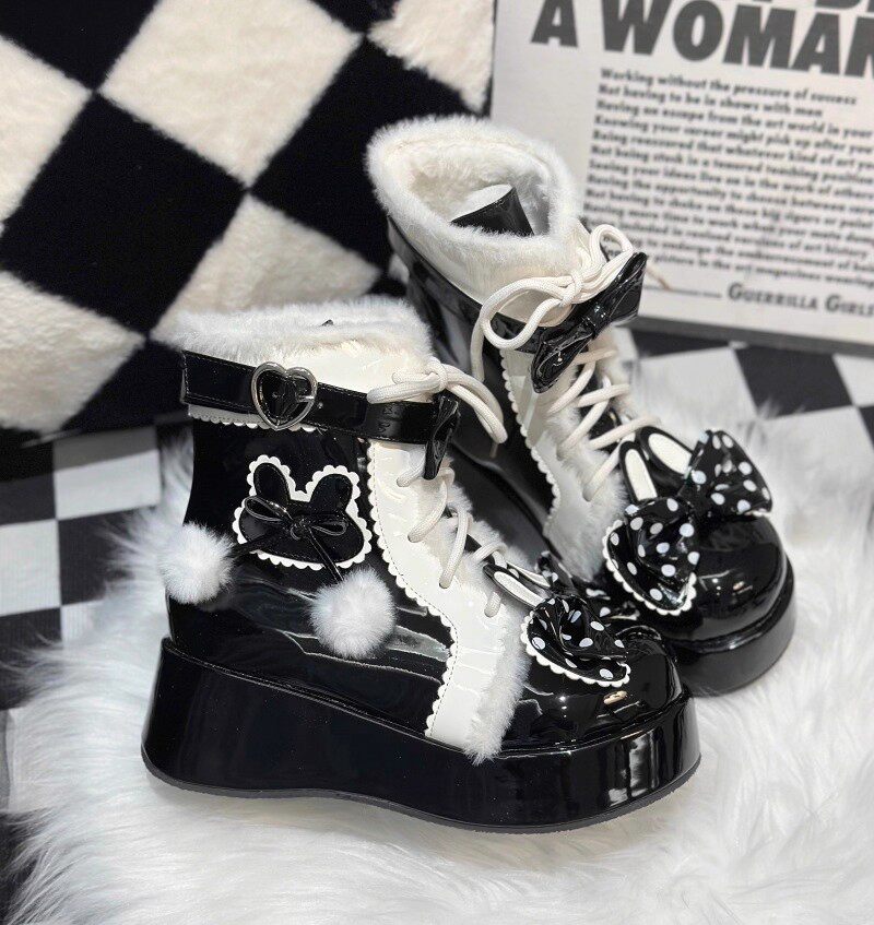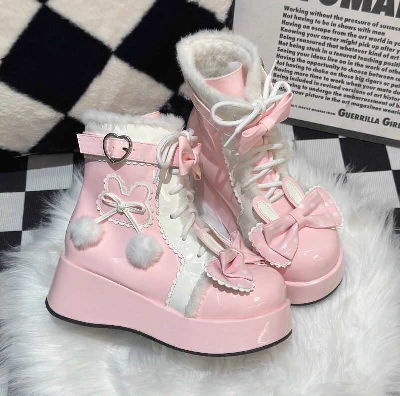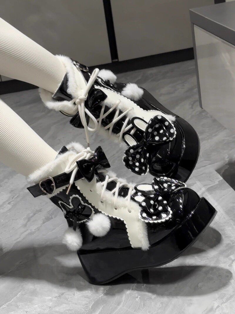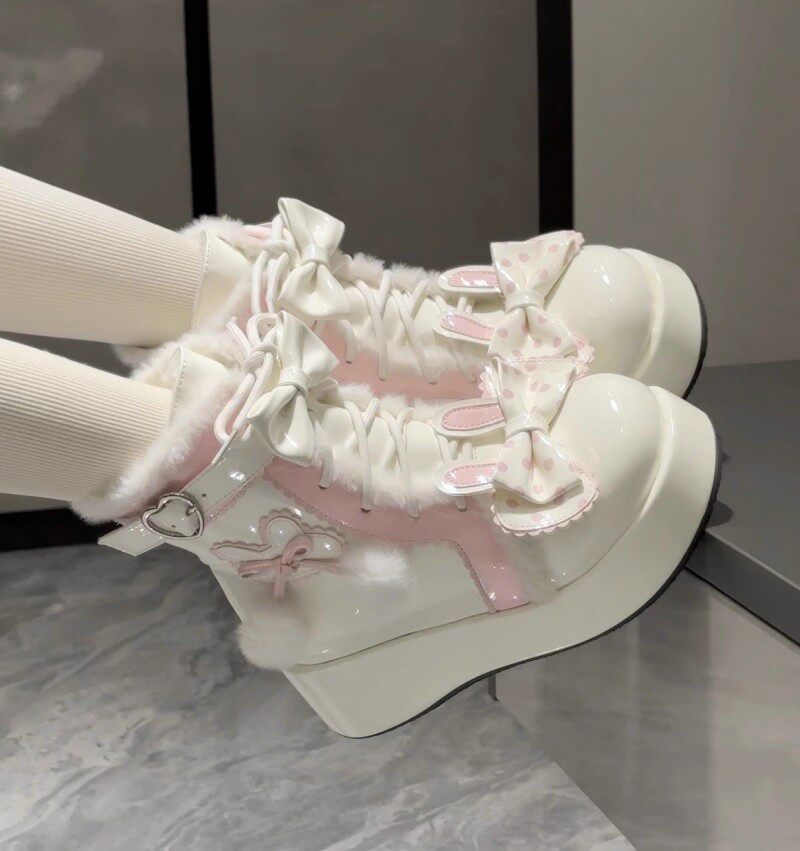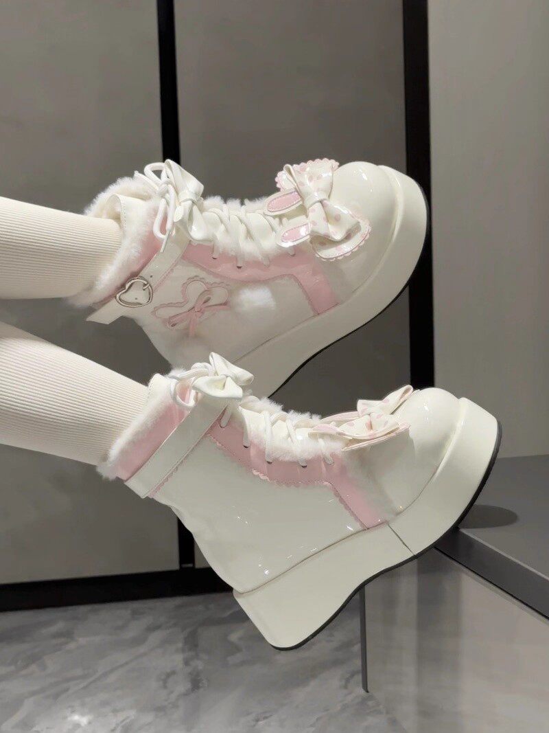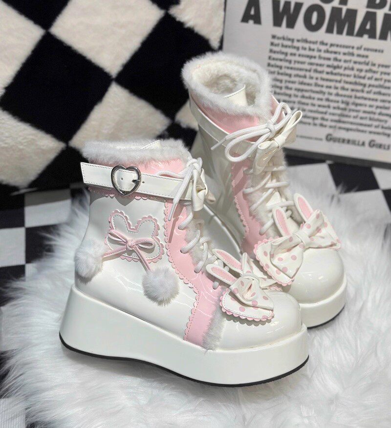 冬季原創lolita甜美短靴可愛雪地靴子女厚底洛麗塔保暖加絨馬丁靴
