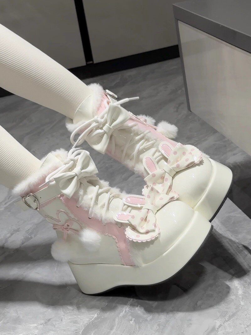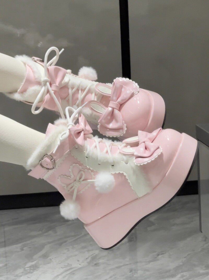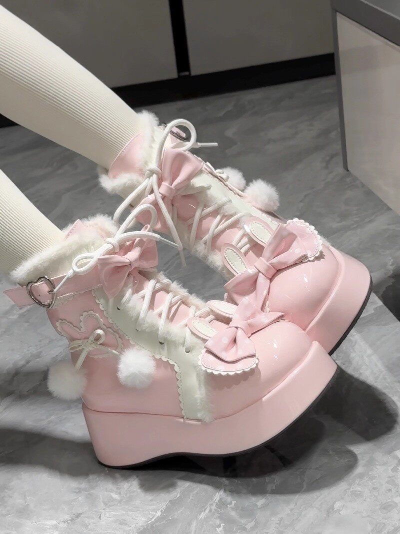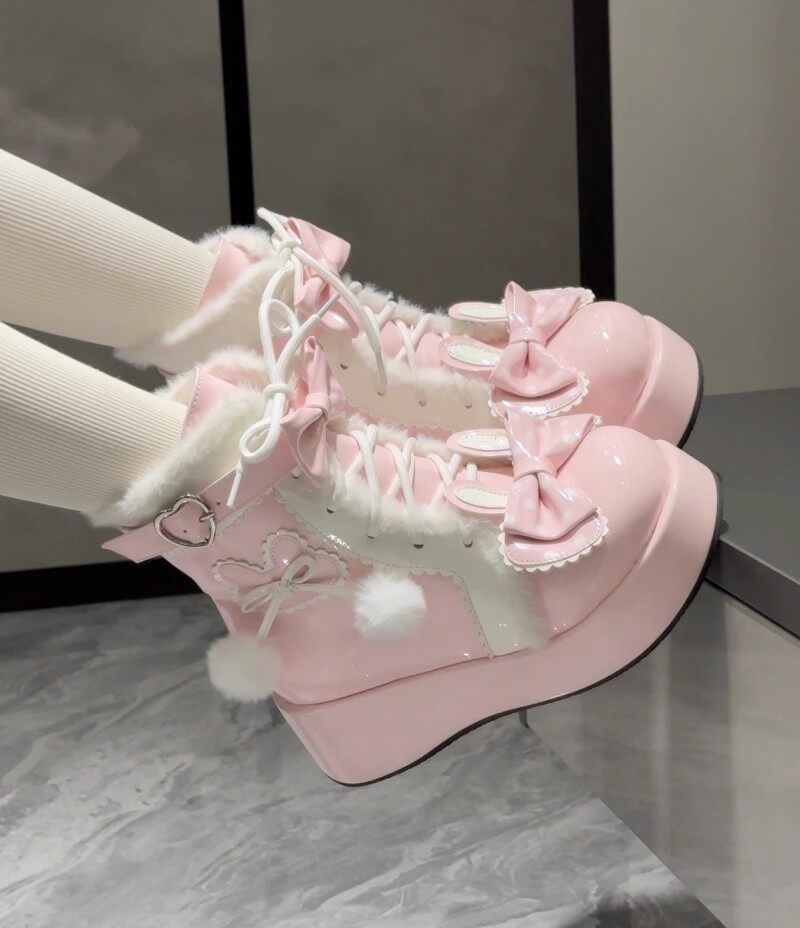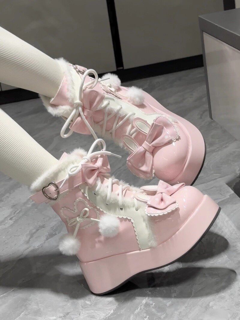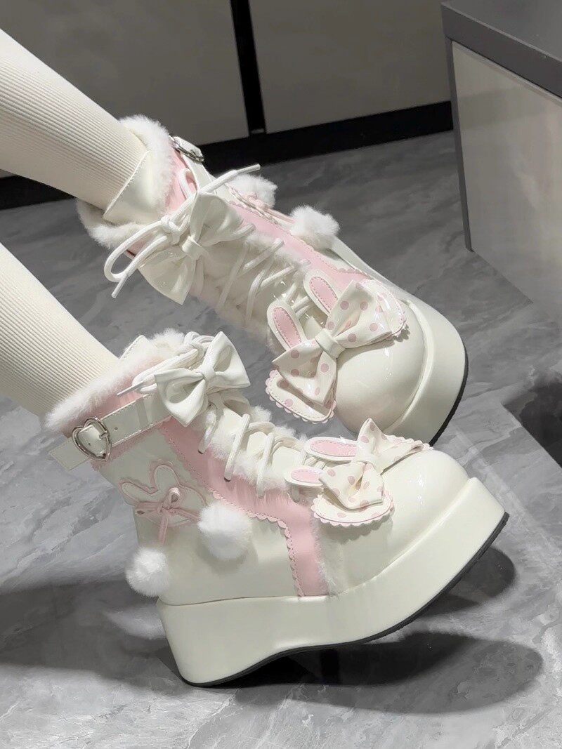冬季原創lolita甜美短靴可愛雪地靴子女厚底洛麗塔保暖加絨馬丁靴