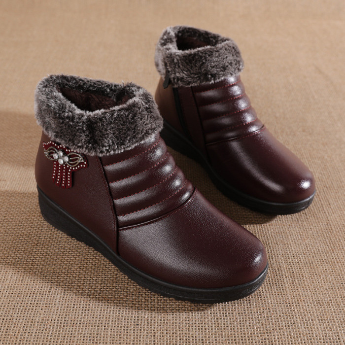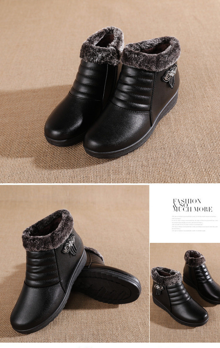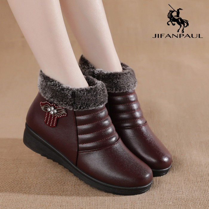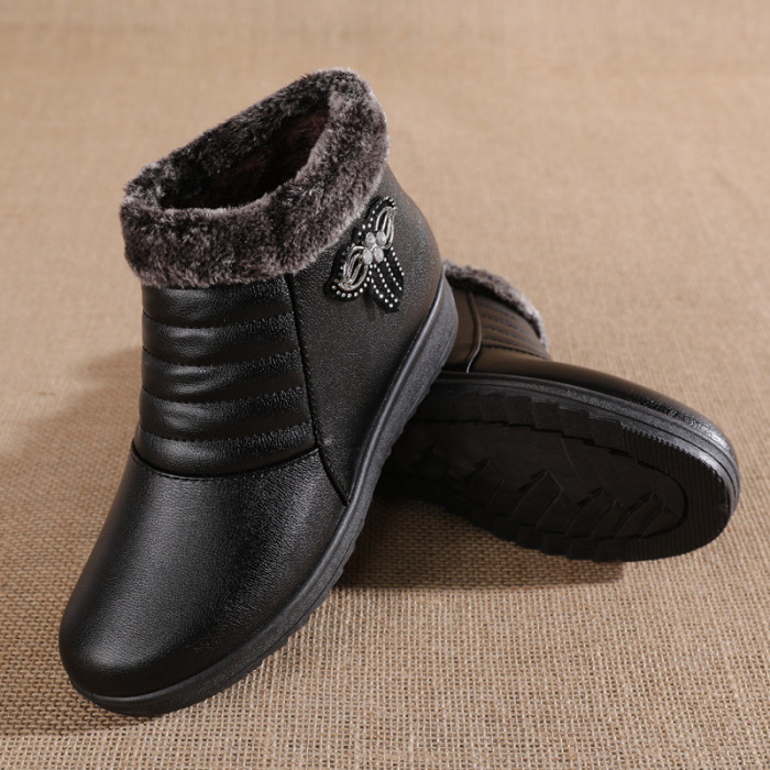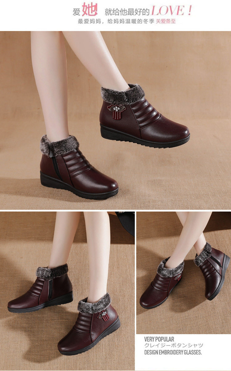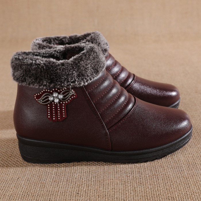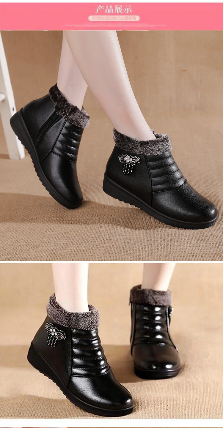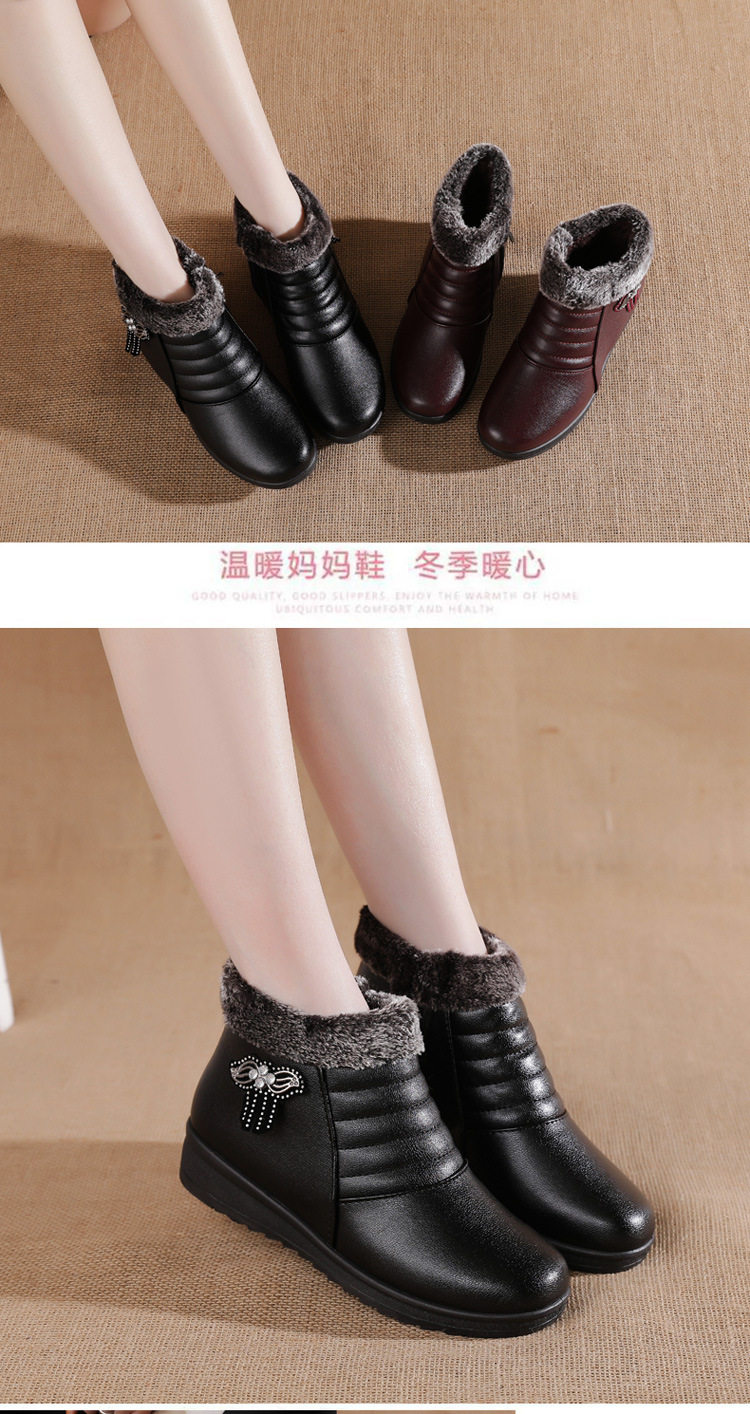 冬季媽媽棉鞋加絨保暖中老年皮鞋中年女鞋老人奶奶防滑短靴雪地靴