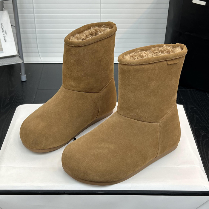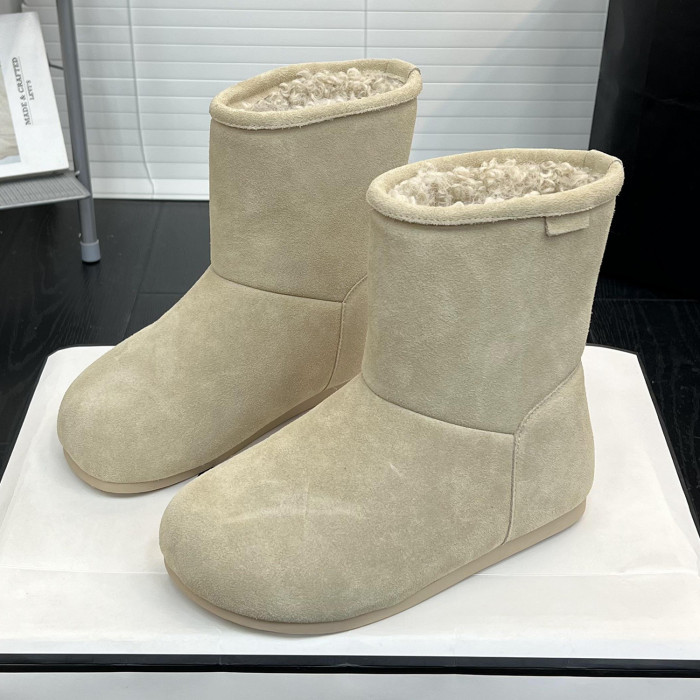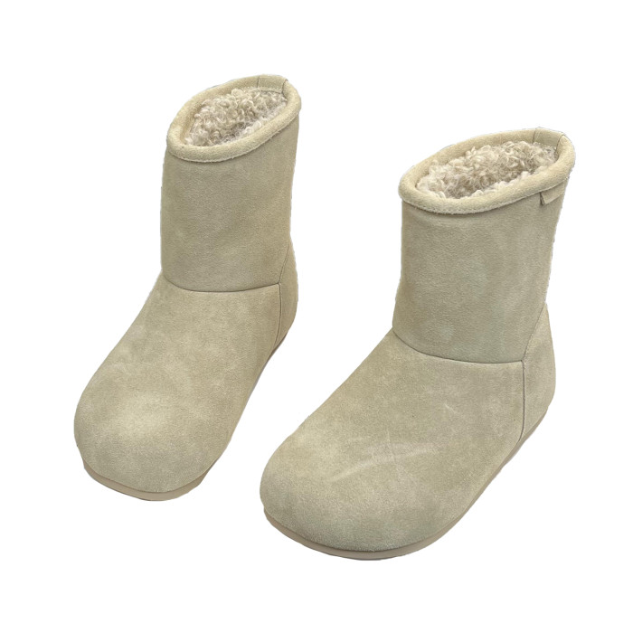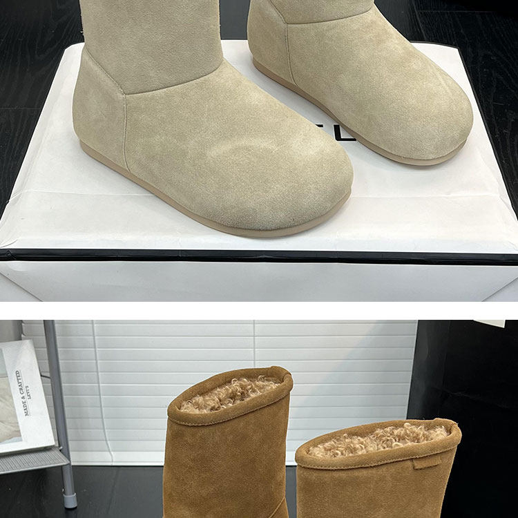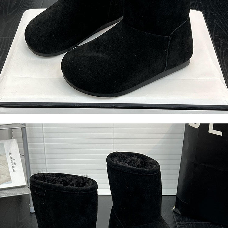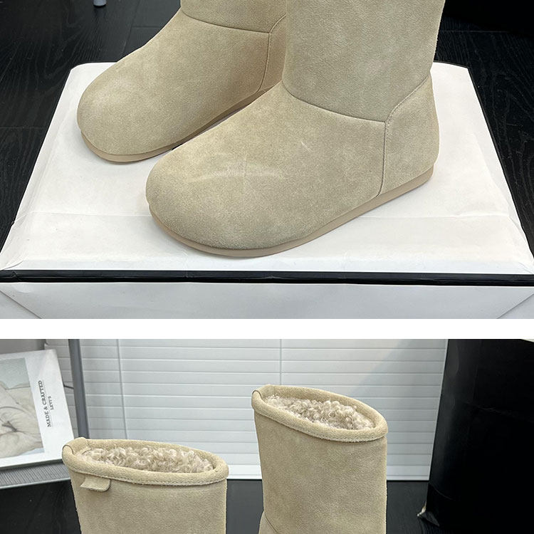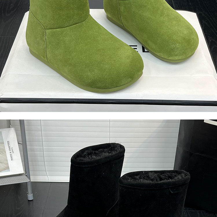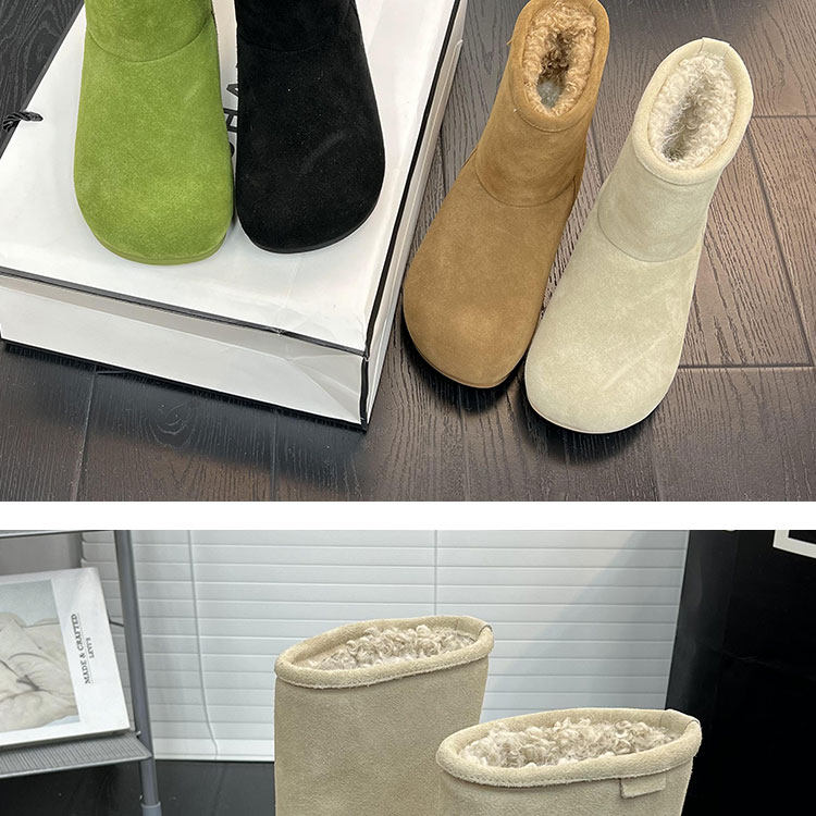 英倫風真皮厚底增高雪地靴女2025冬季新款圓頭套筒純色加絨短筒靴