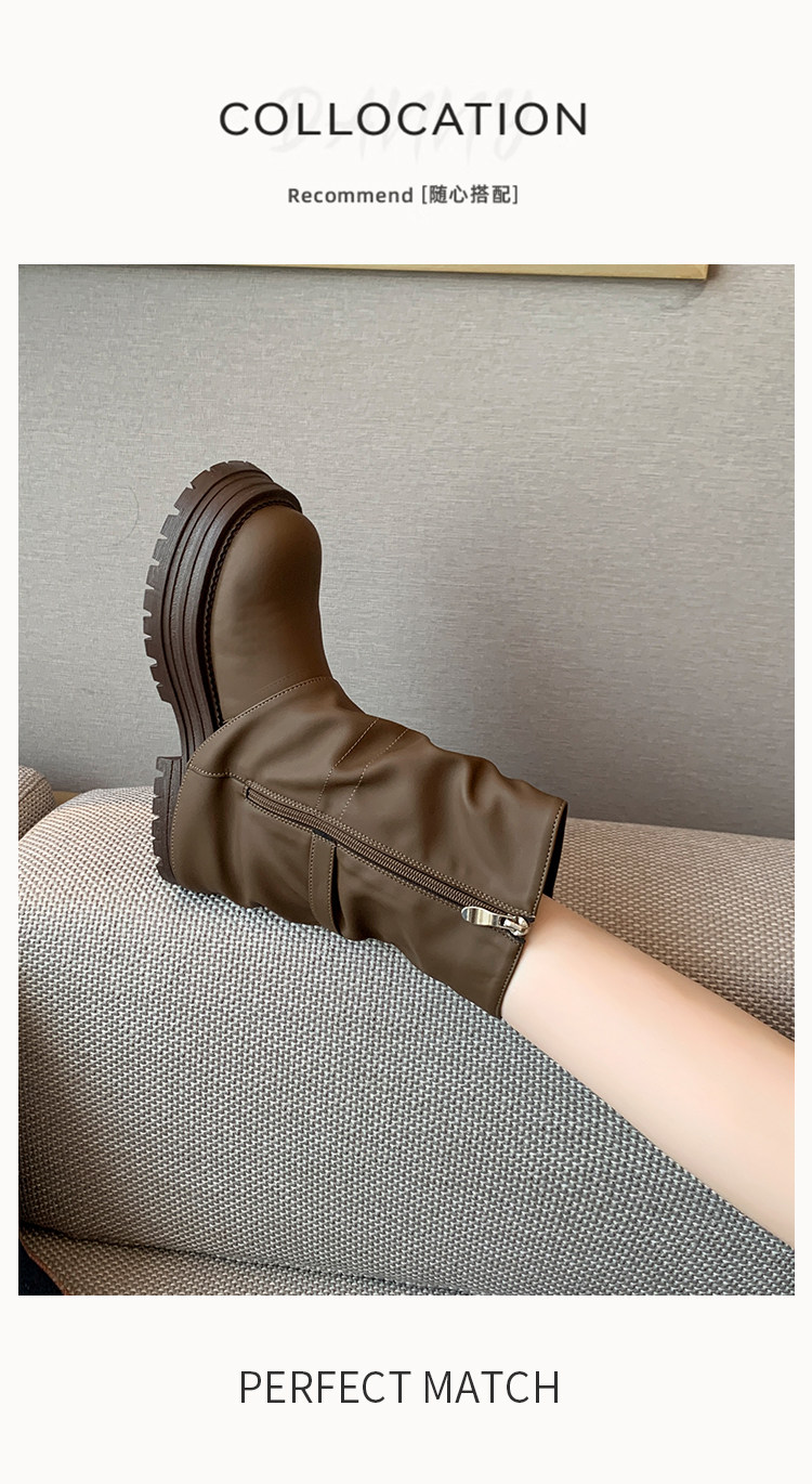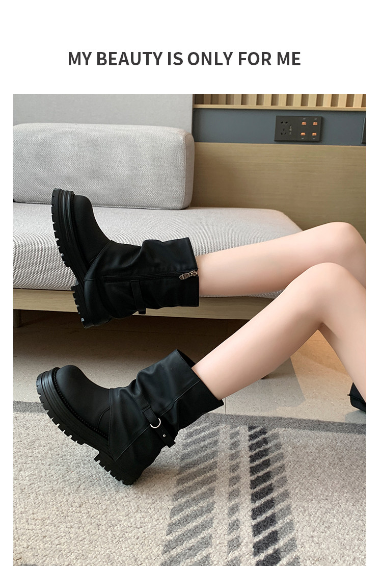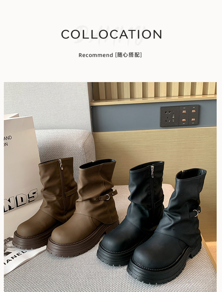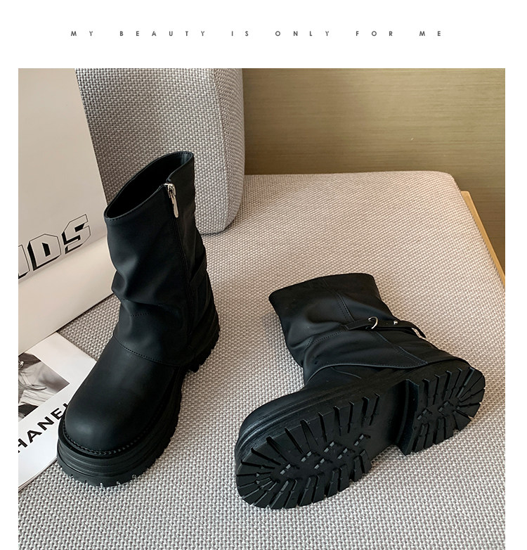 胖mm厚底粗腿短靴復秋冬新款古馬丁靴大筒圍褲琯靴大碼女靴41到44