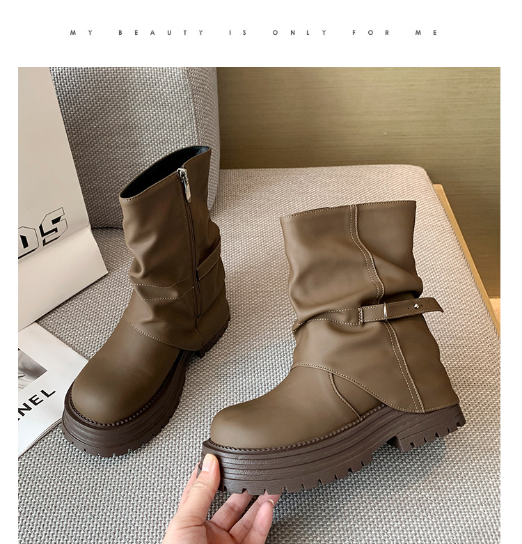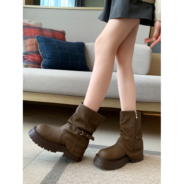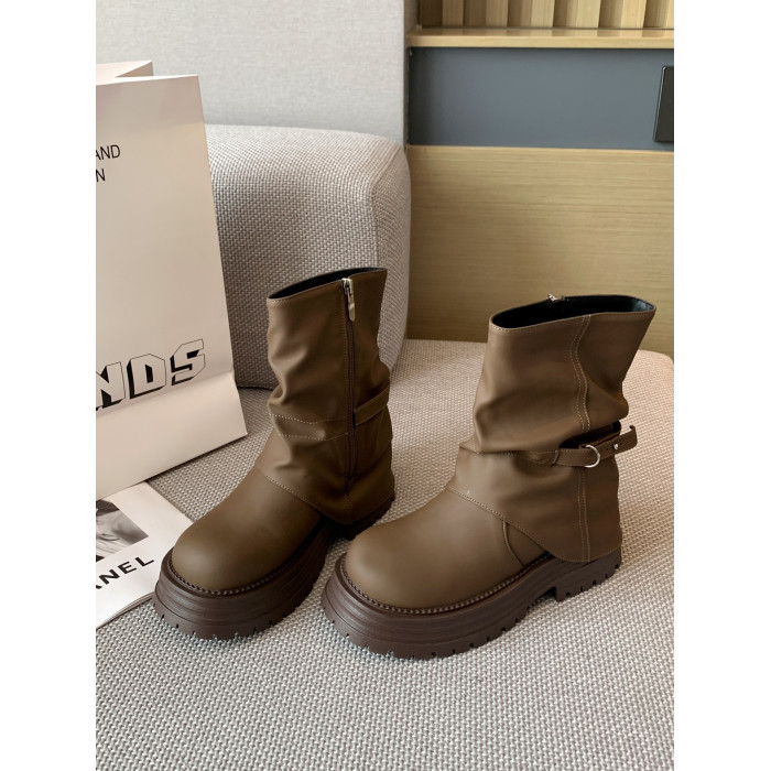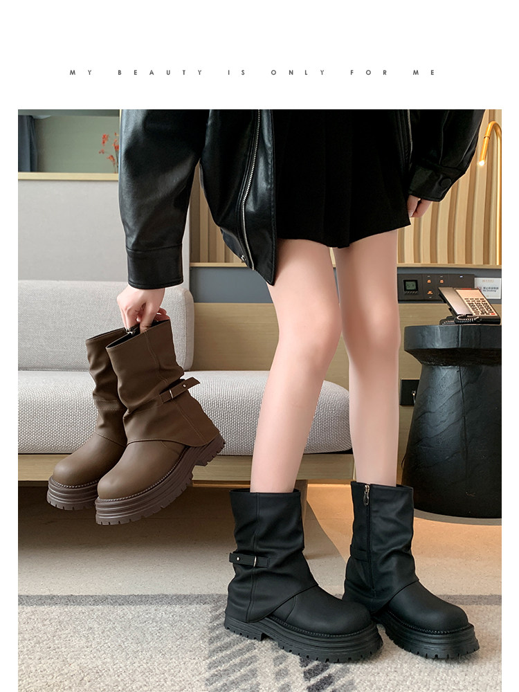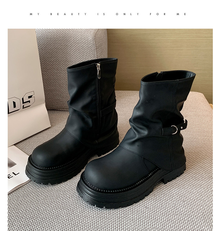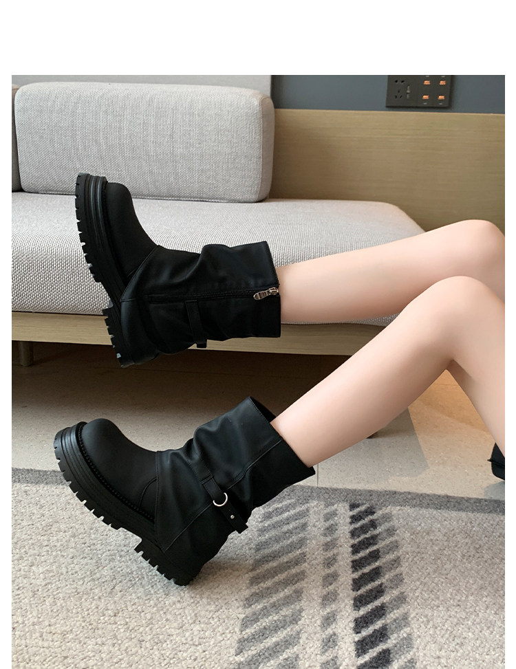 胖mm厚底粗腿短靴復秋冬新款古馬丁靴大筒圍褲琯靴大碼女靴41到44