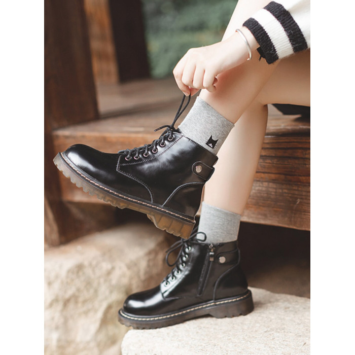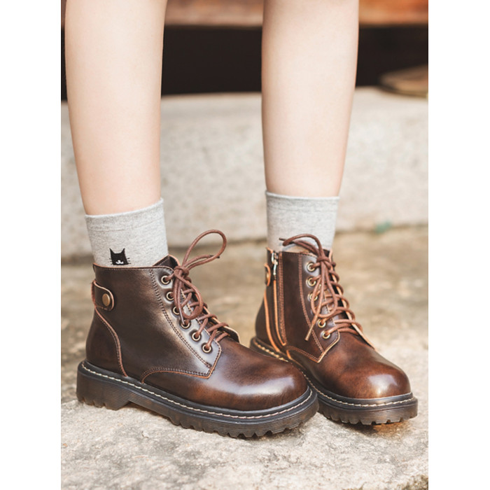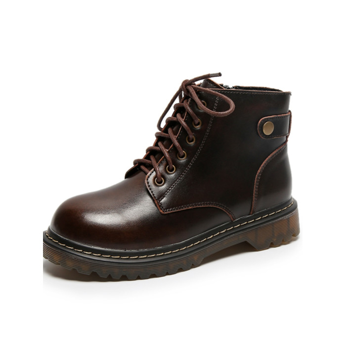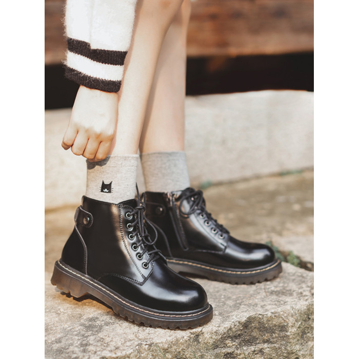 半島鞋屋真皮新款靴子六孔低跟復古馬丁靴女秋冬加絨短靴英倫風