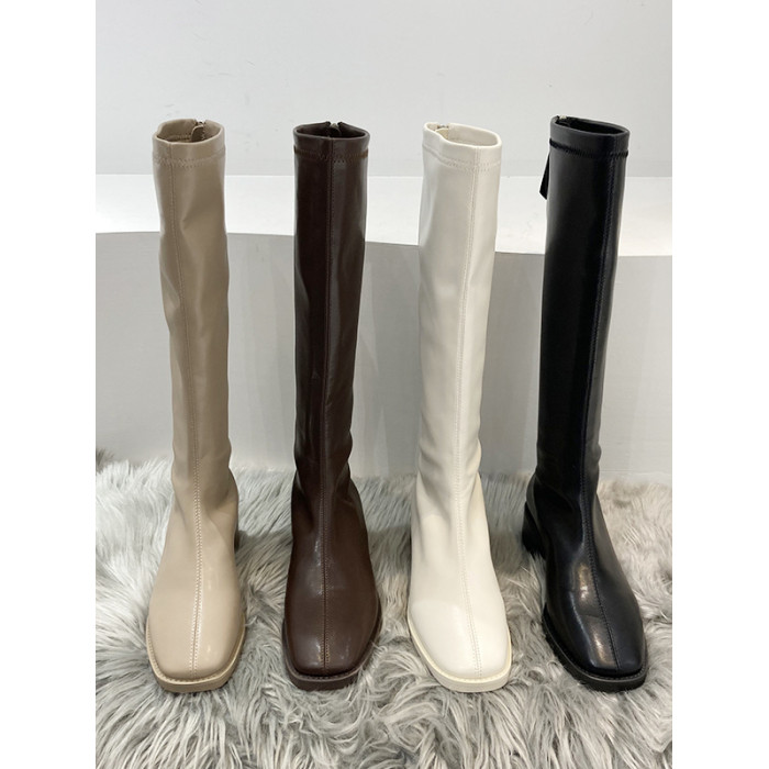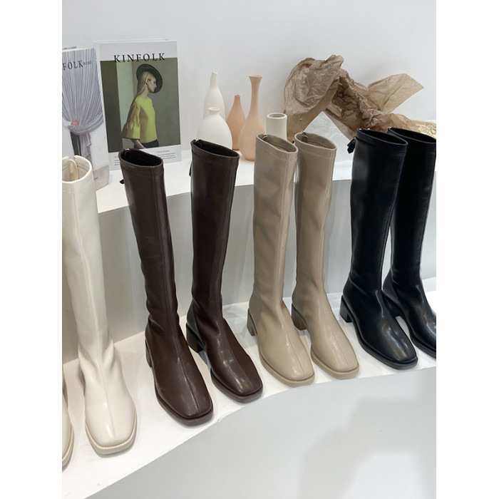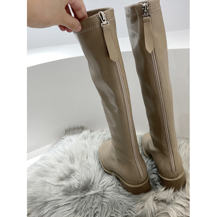 米色靴子長筒靴2026春秋新款女行靴不過膝長靴高筒靴2025時裝靴子