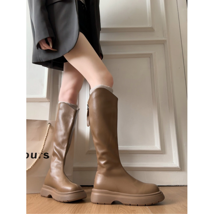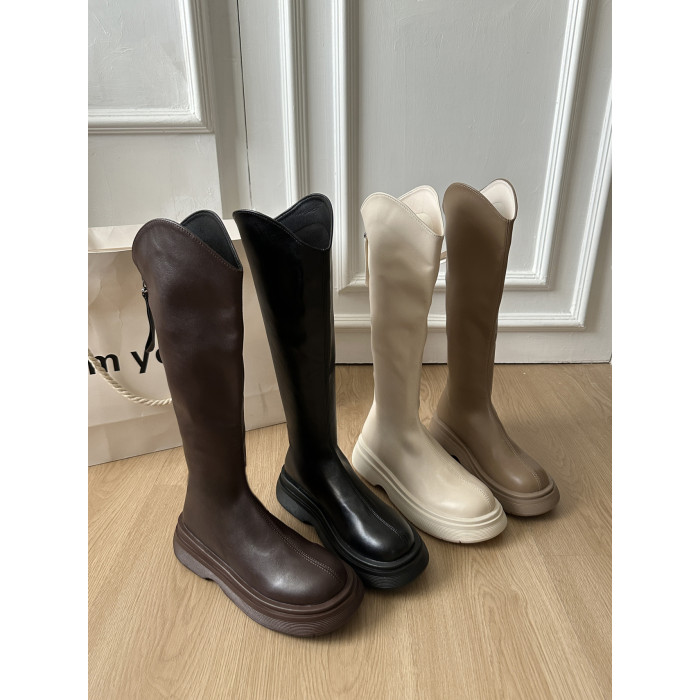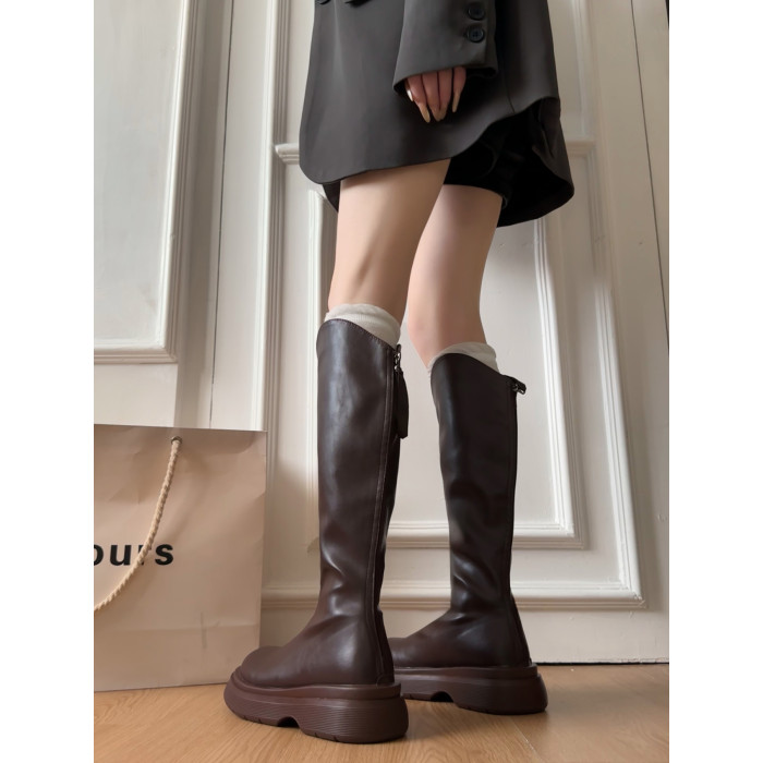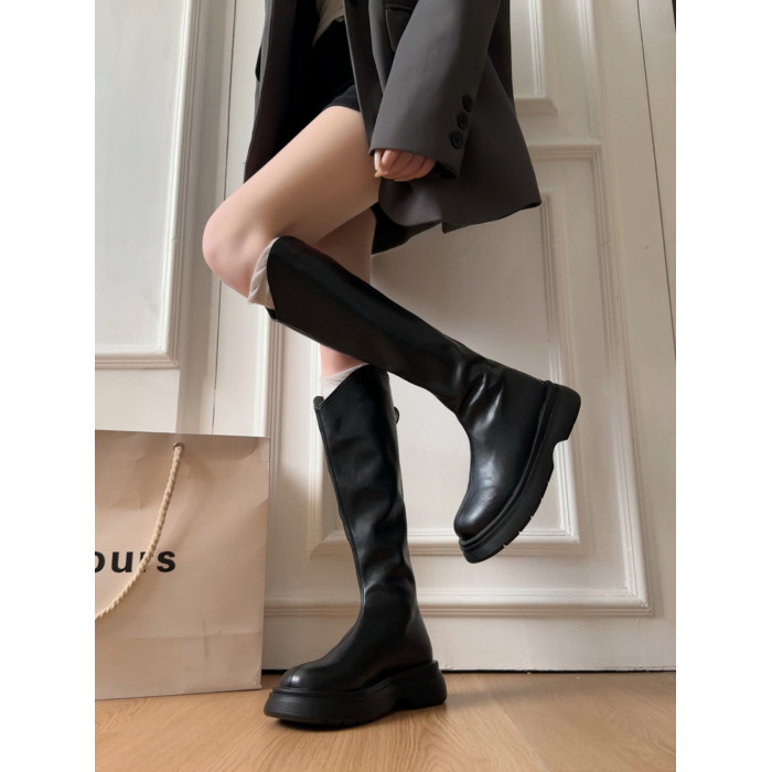 黑色不過膝厚底靴子女長筒靴2026新款春季配裙子增高顯瘦騎士長靴